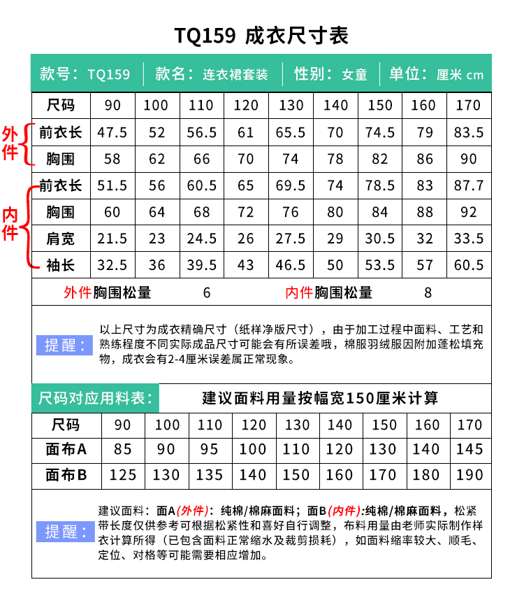 裁缝学苑TQ159女童公主裙纸样儿童新款童装蓬松纯棉连衣裙样板