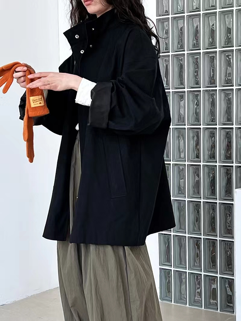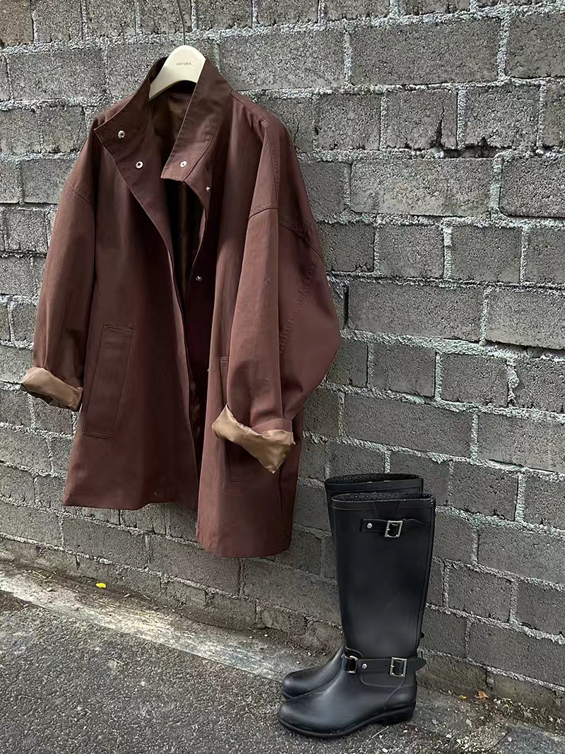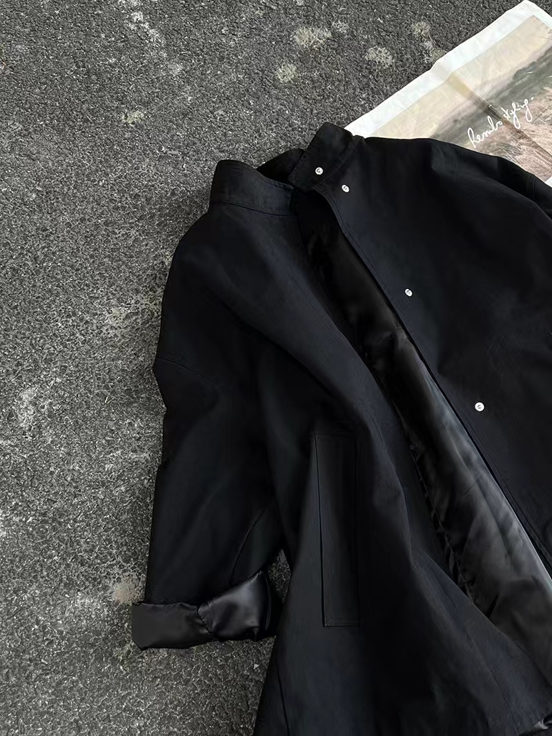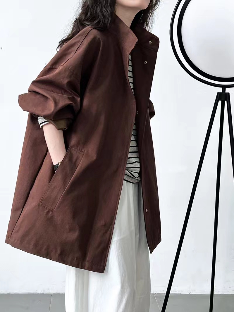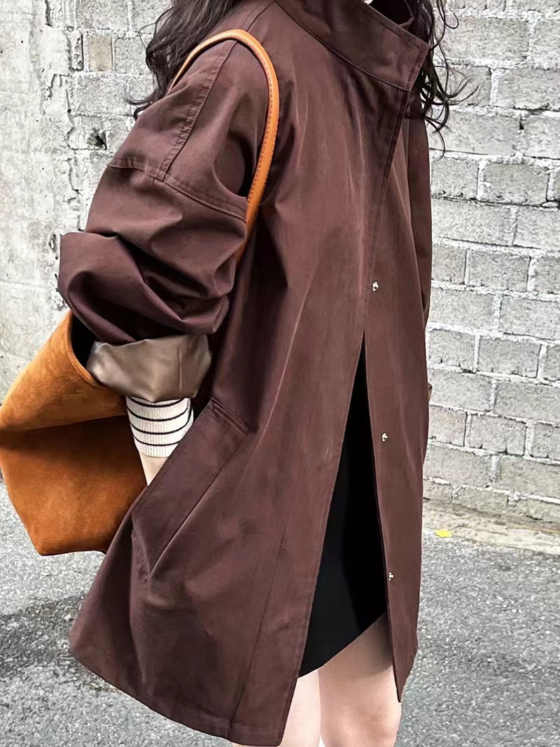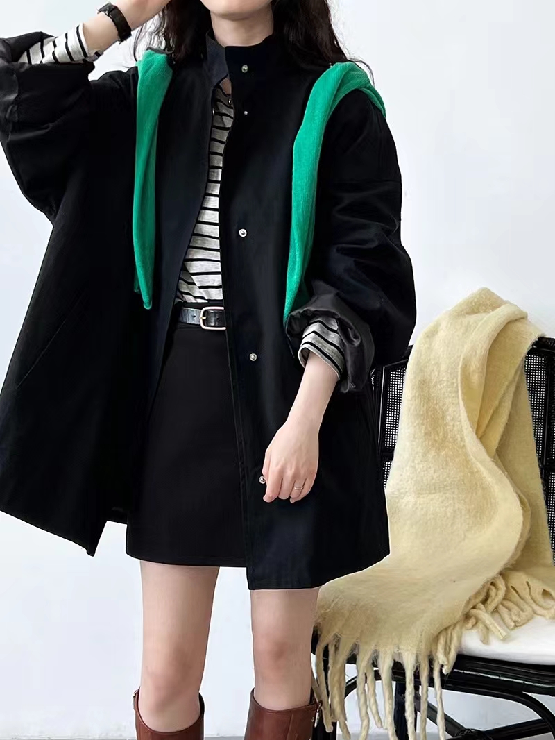 春秋太适合了~这款复古休闲的宽松设计感风衣,绝对是你的zui佳选择。立领的设计帅气十足,不仅能防风,还增添了一份时尚感。纯色的夹克外套简约而大气,无论是搭配牛仔裤、短裙还是连衣裙,都能轻松打造出不同的风格。