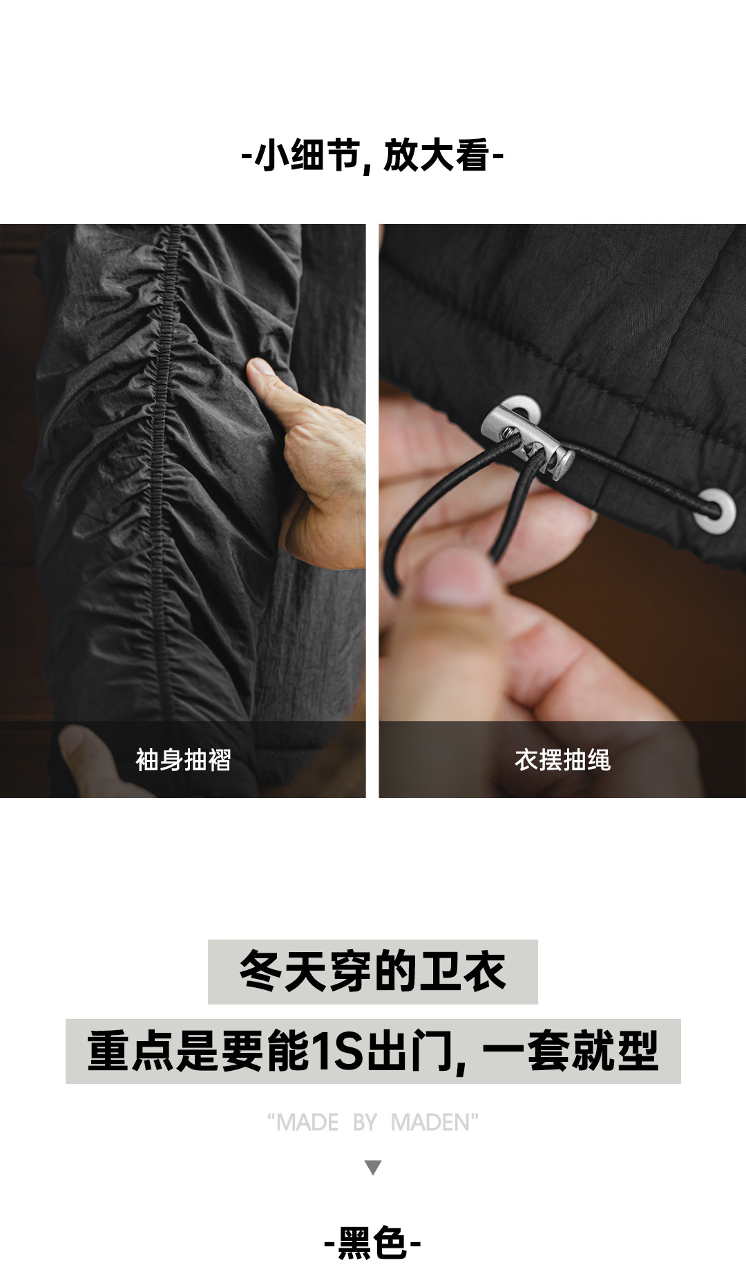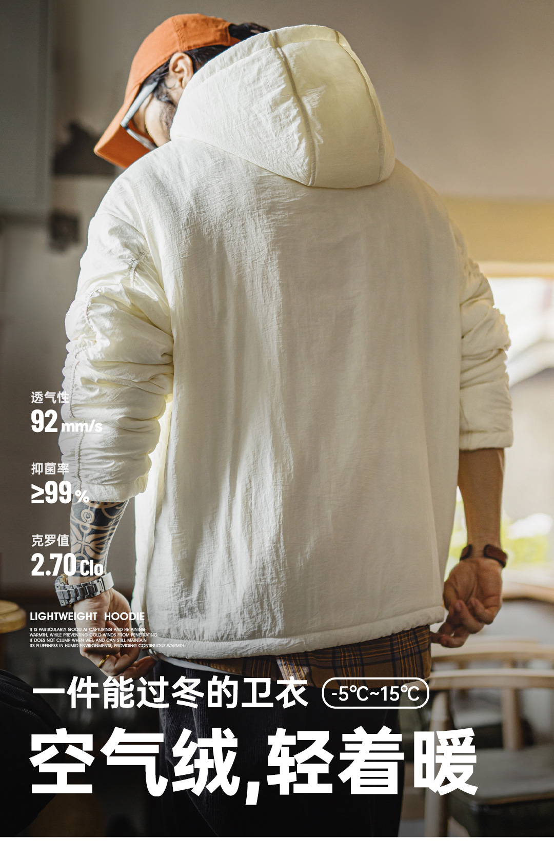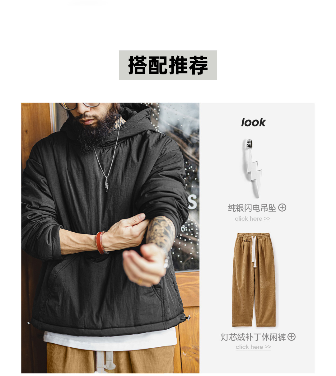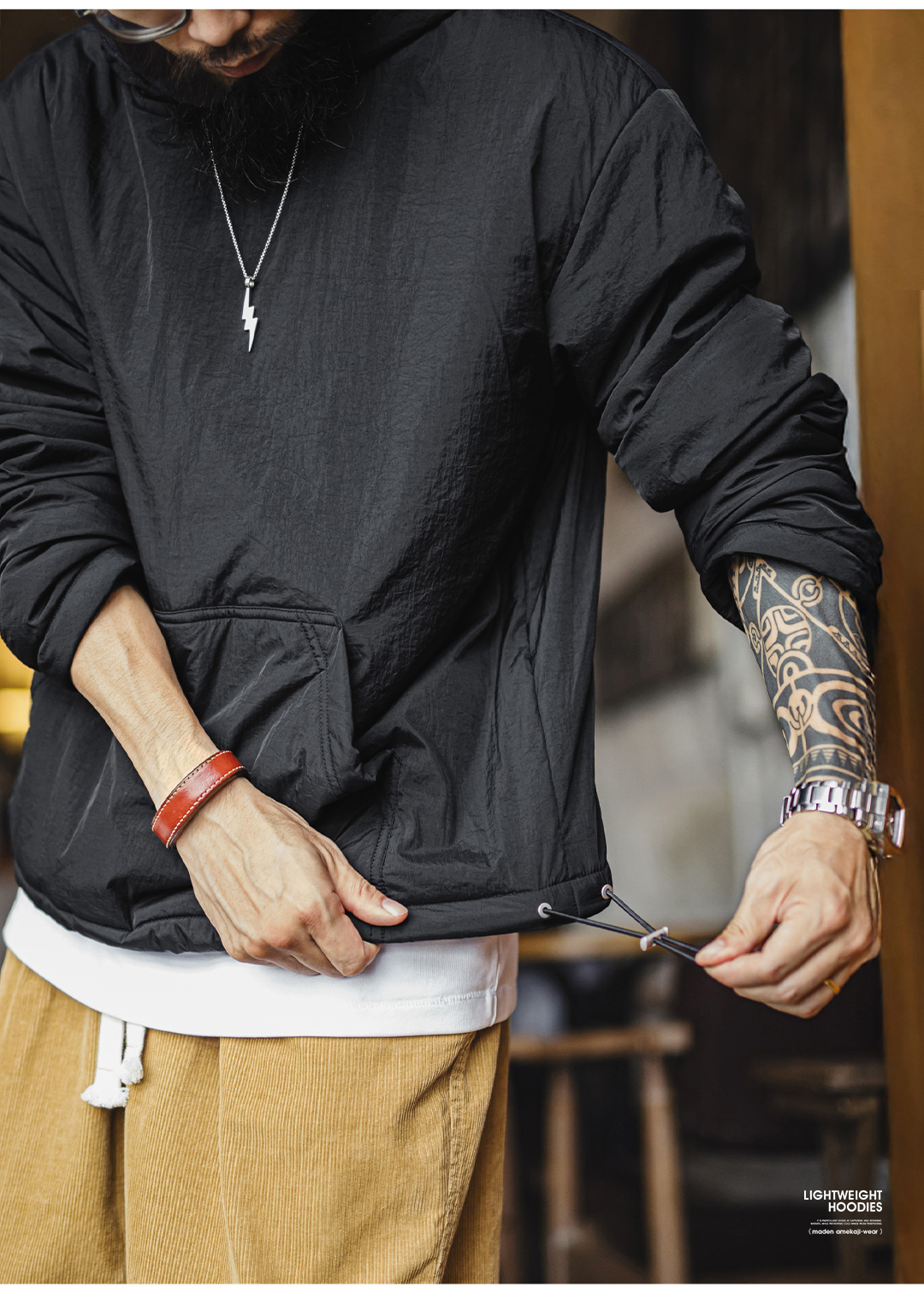 马登工装美式气绒套头口袋卫衣圆领连帽通勤加绒保暖廓形外套男冬