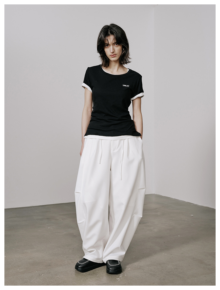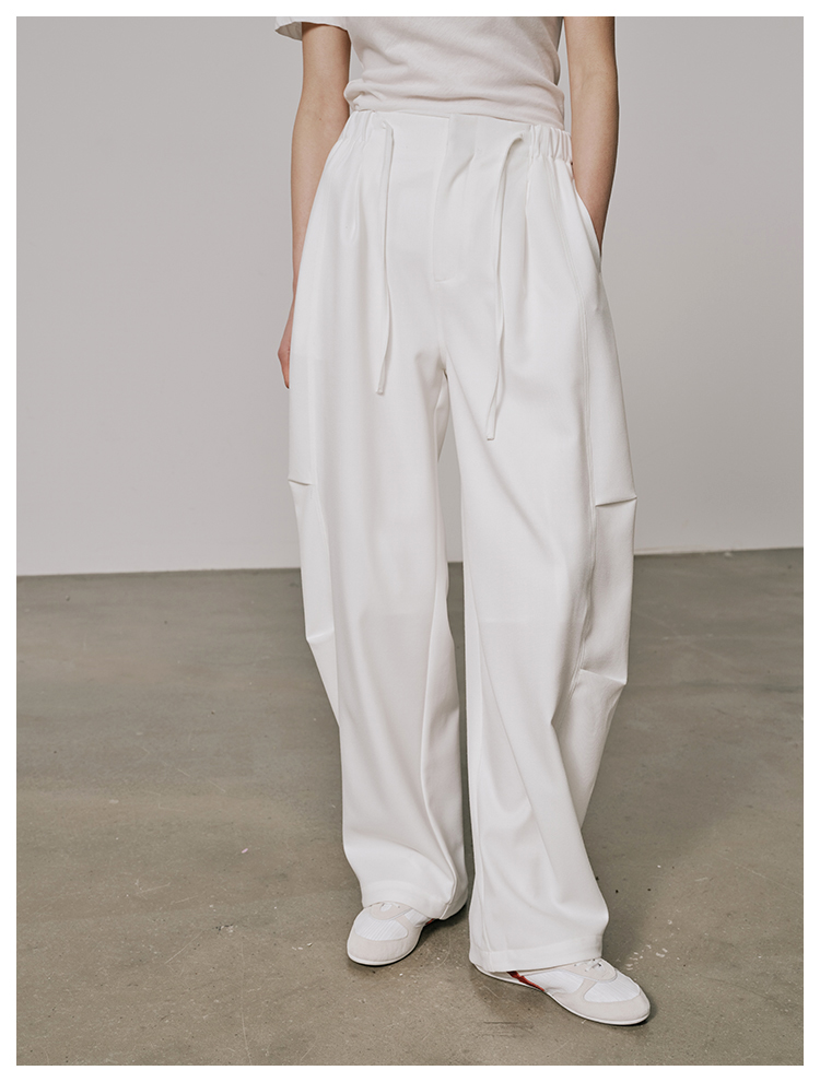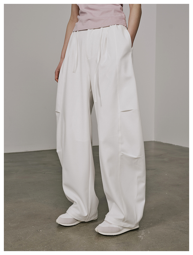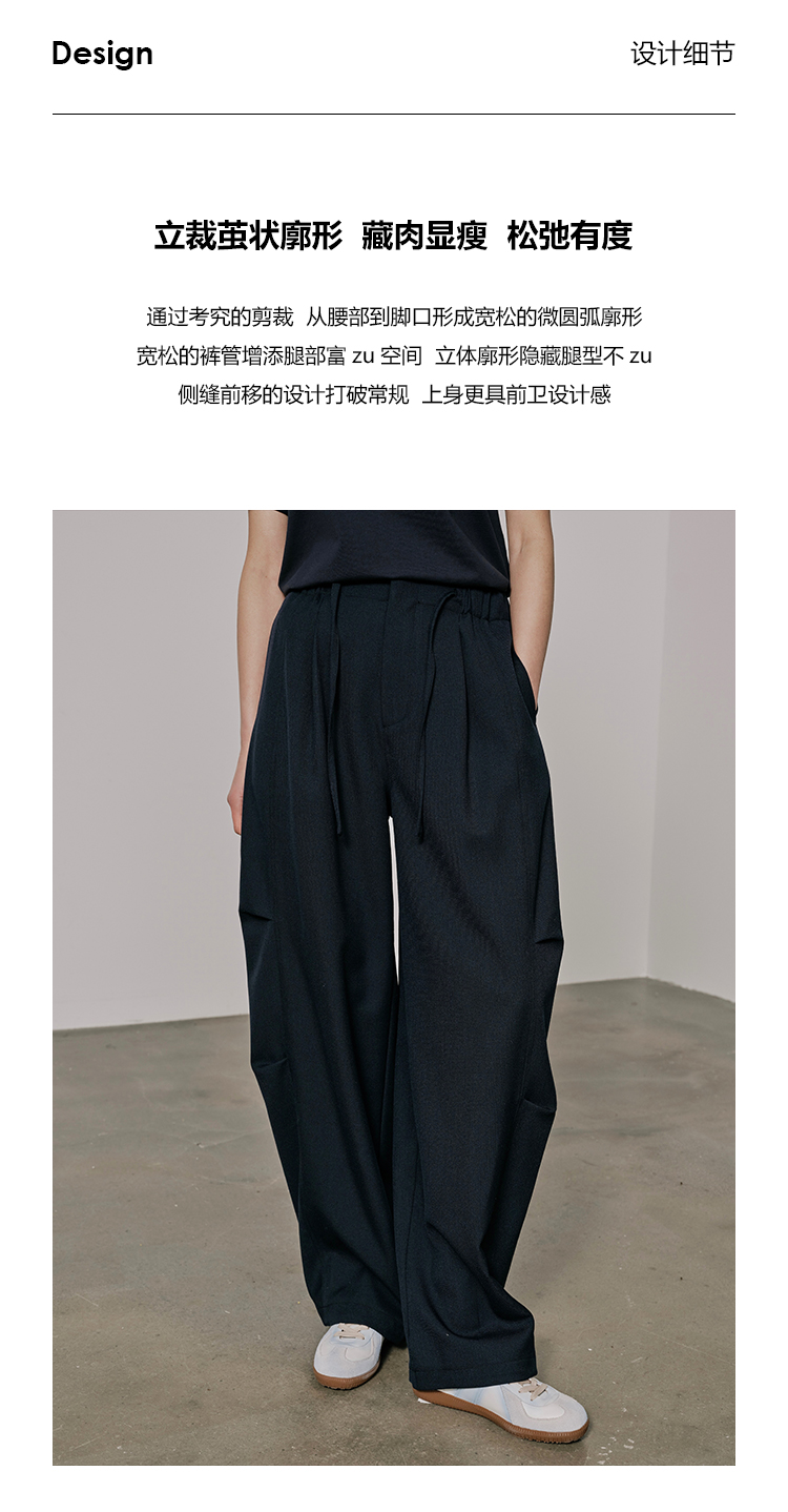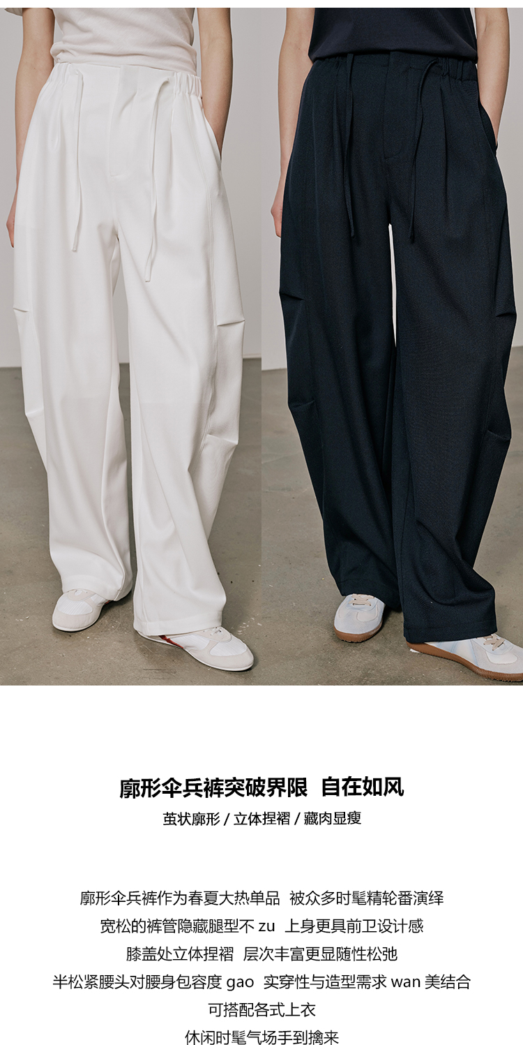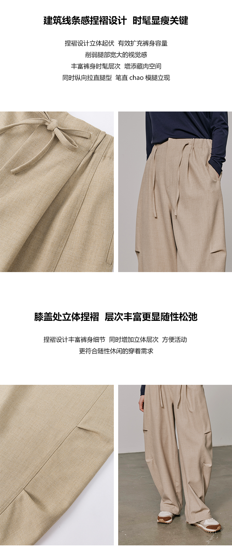 UMILAB【千帆】自在少年感半松紧腰立体捏褶K皱藏肉茧型裤P1225H