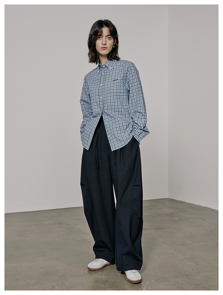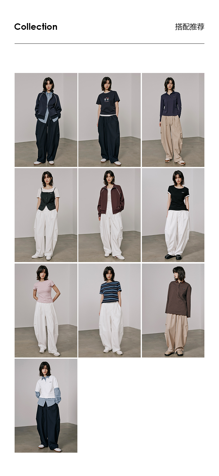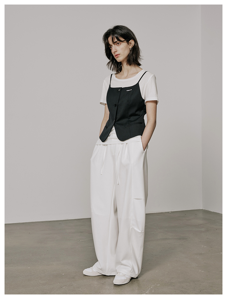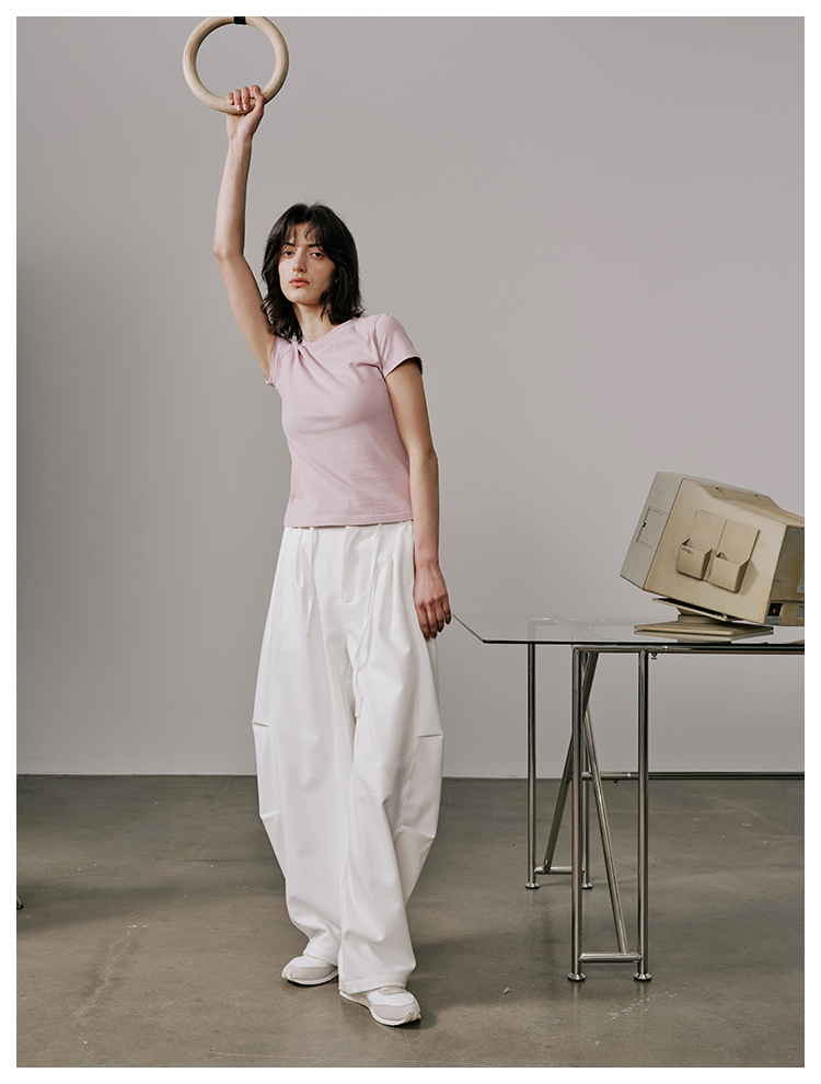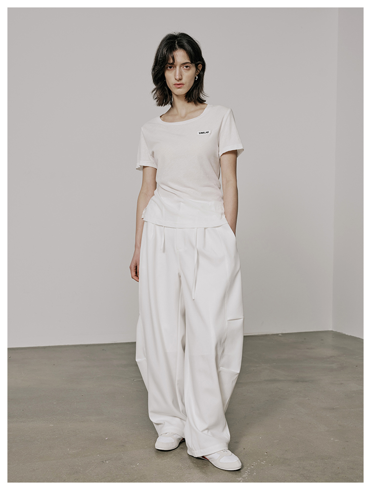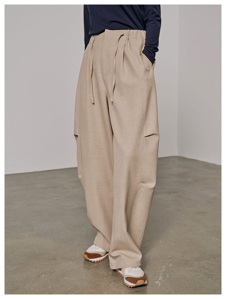 UMILAB【千帆】自在少年感半松紧腰立体捏褶K皱藏肉茧型裤P1225H