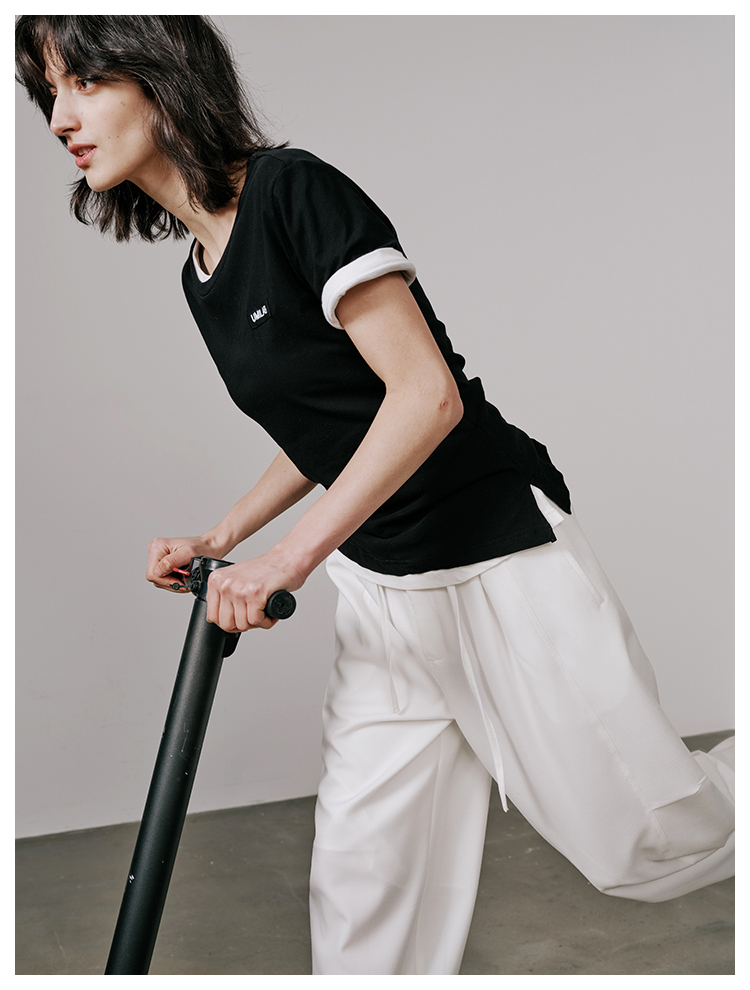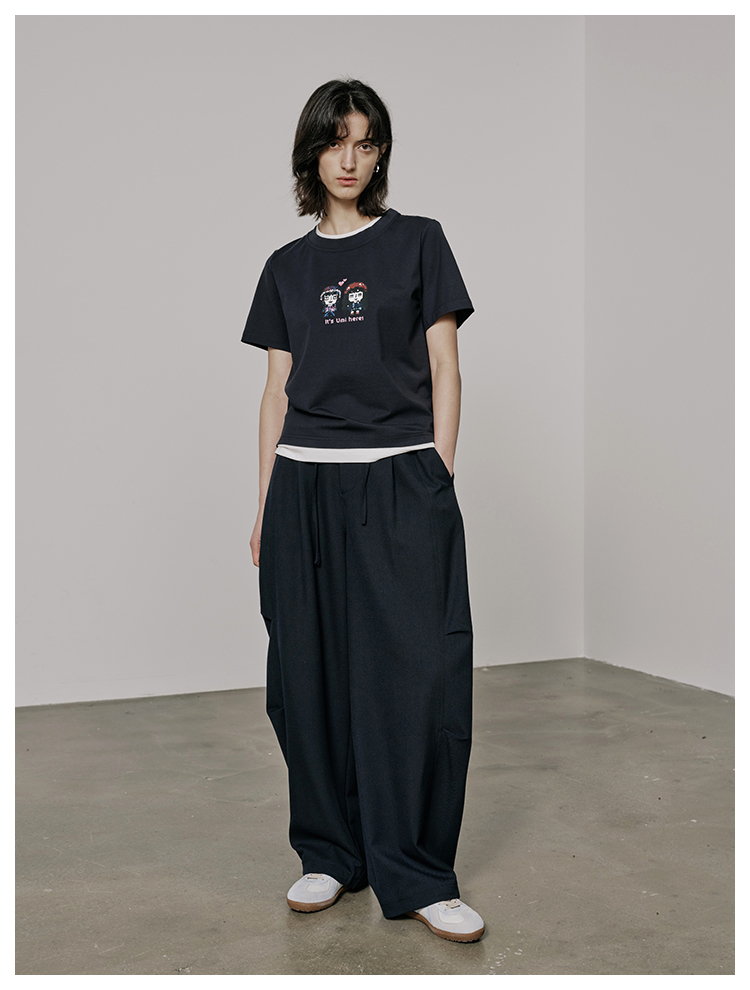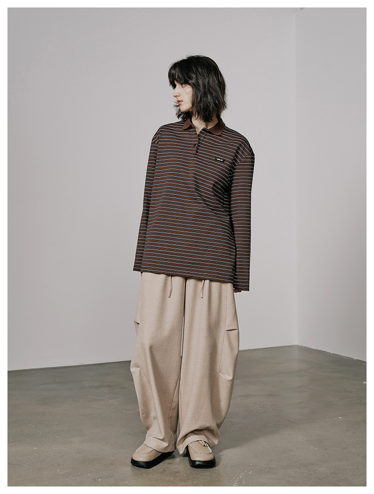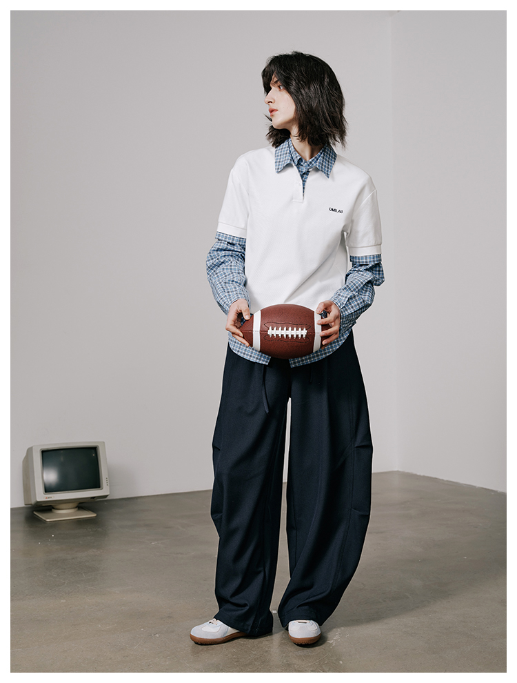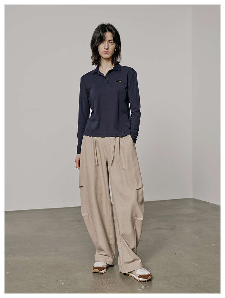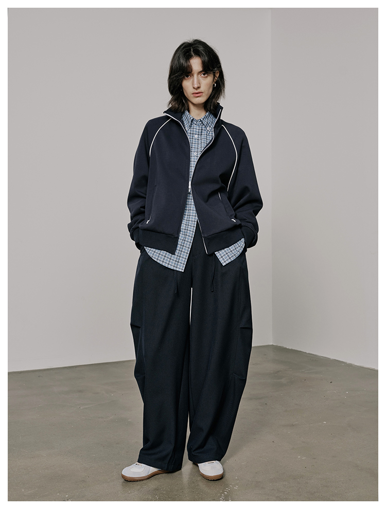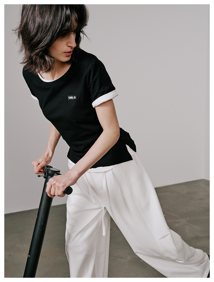 UMILAB【千帆】自在少年感半松紧腰立体捏褶K皱藏肉茧型裤P1225H