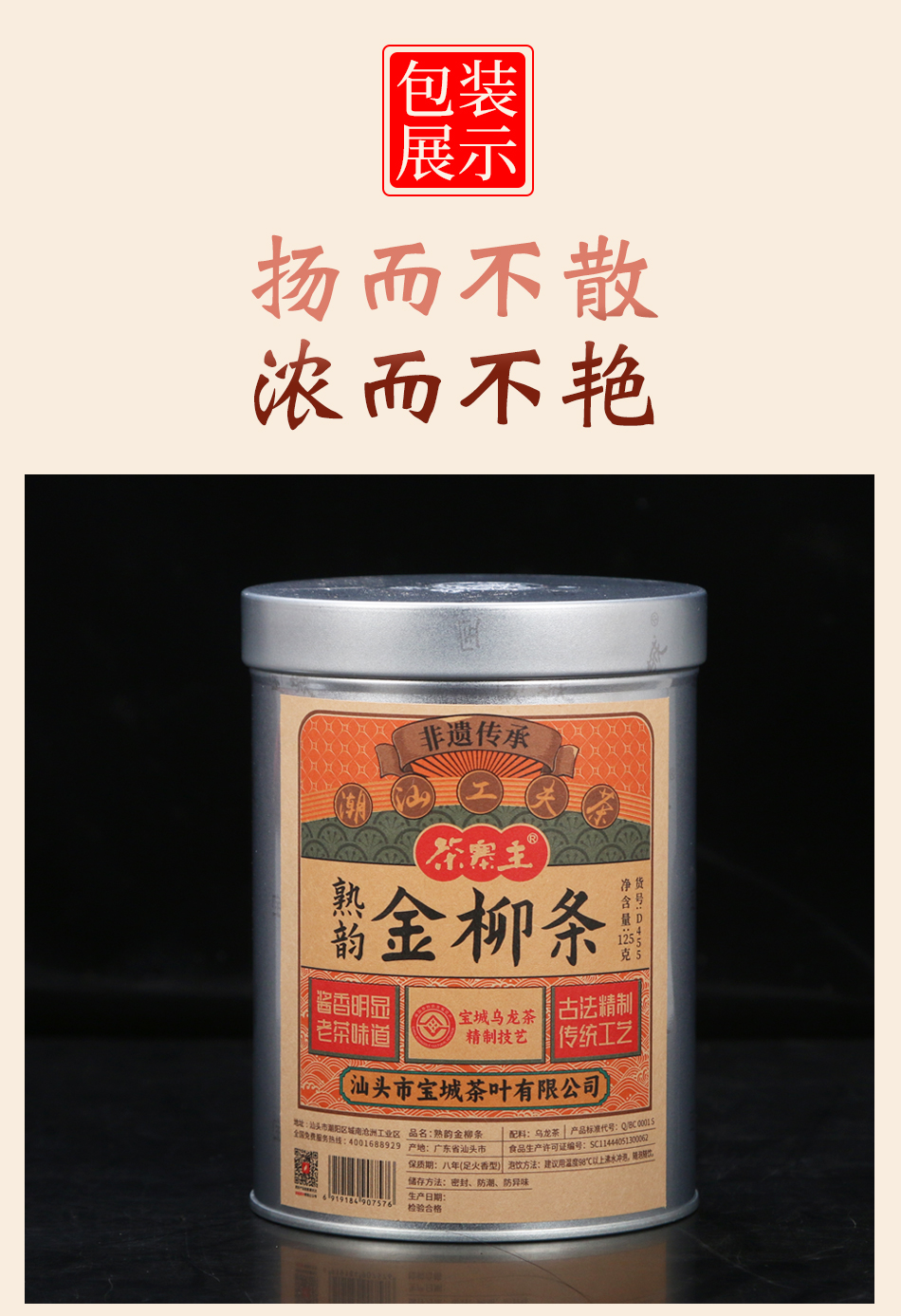 宝城熟韵金柳条岩茶4罐装散装共500克乌龙茶礼盒装D455