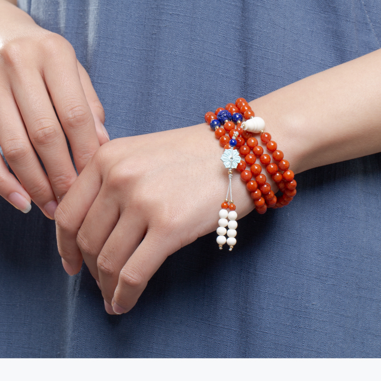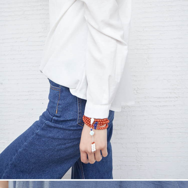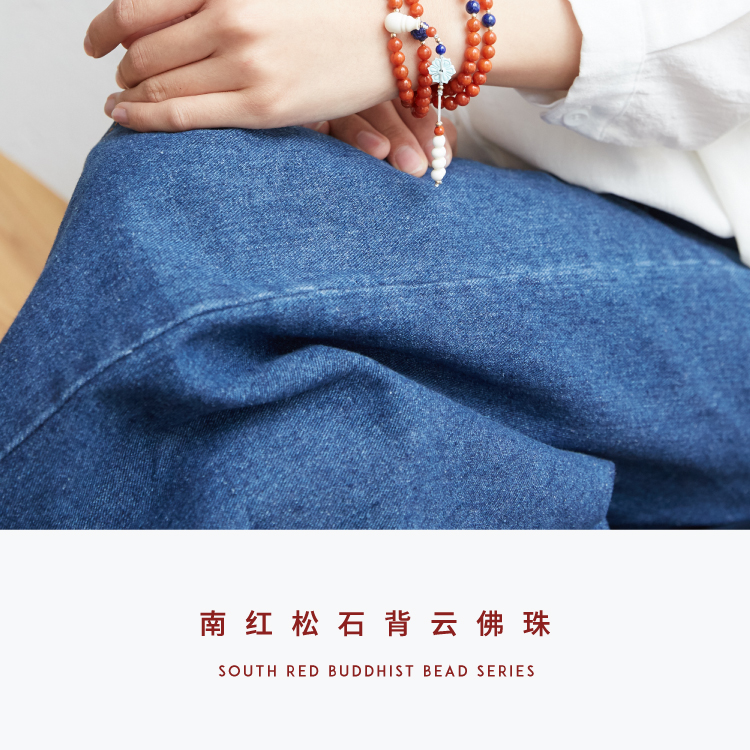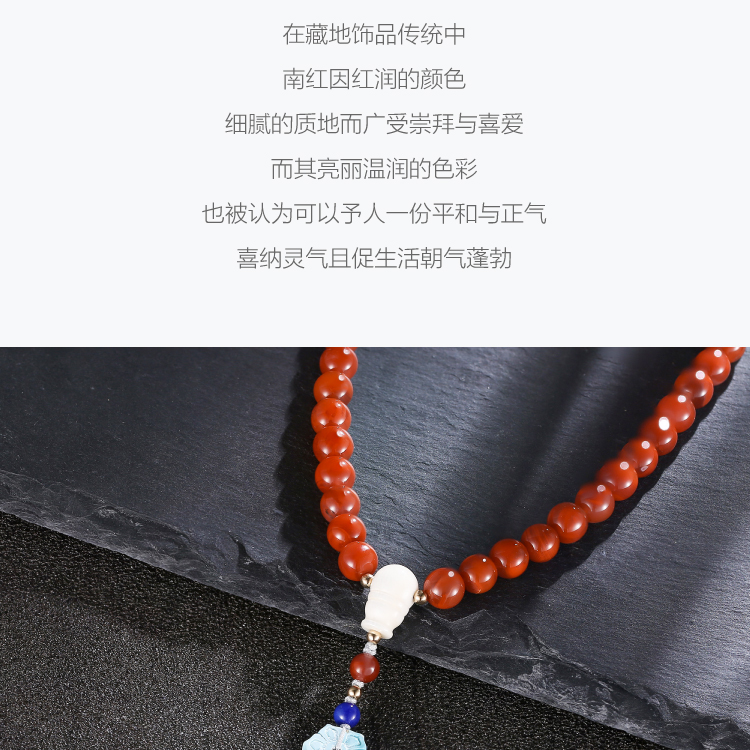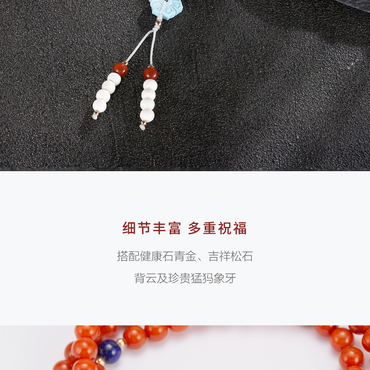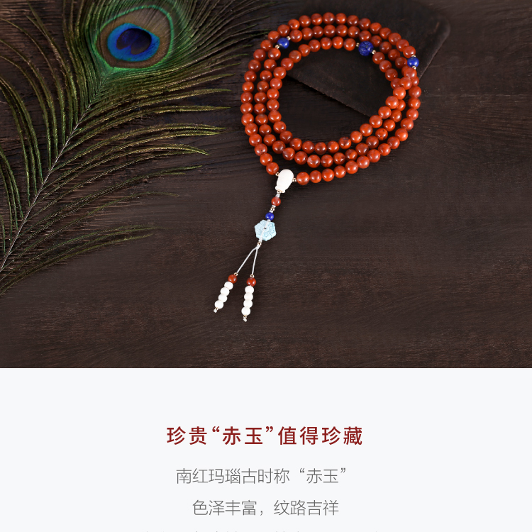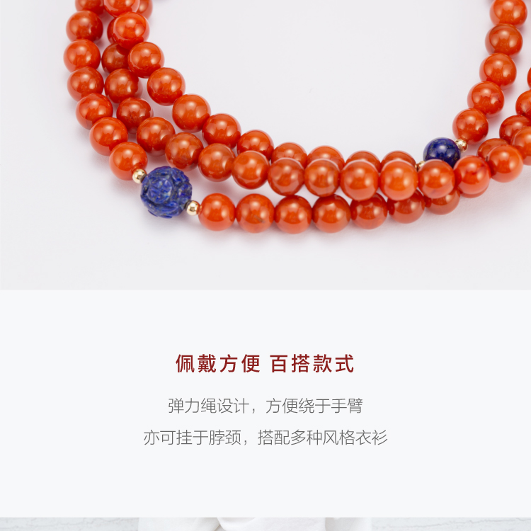 天然南红配猛犸象牙松石青金石108颗佛珠毛衣链紅色手链贵气高档礼物