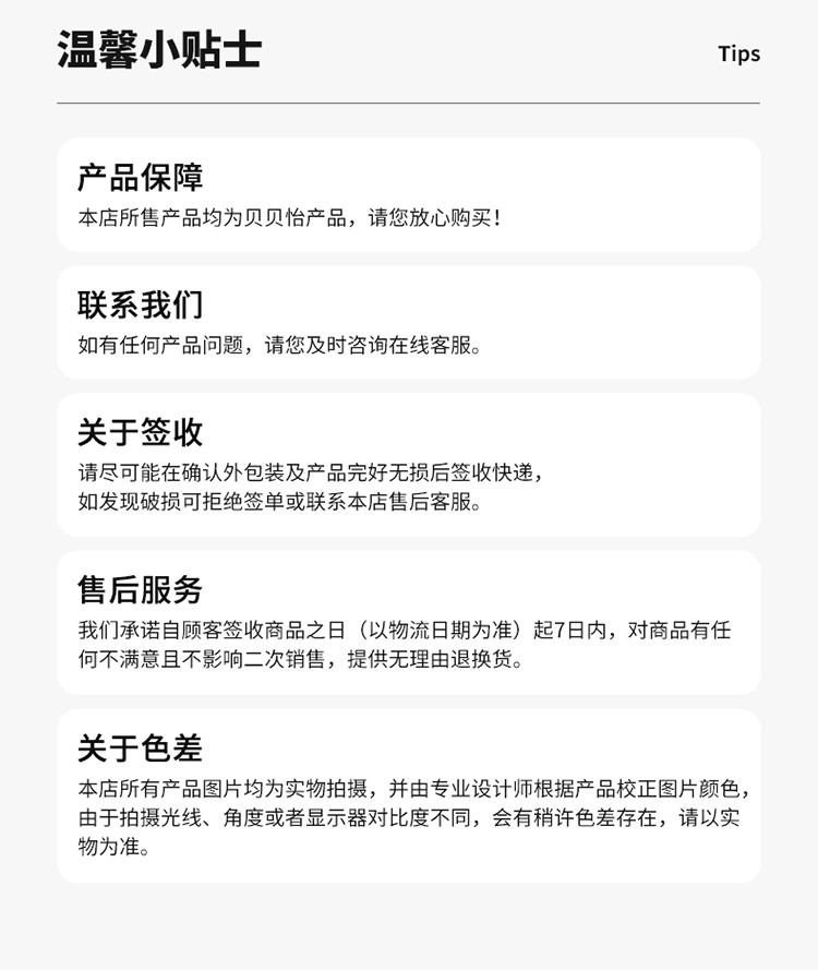 - 贝贝怡专注0-6岁婴幼儿服饰,坚持安全、柔软、舒适的产品理念,为千万中国家庭提供超高品质、安全可靠的婴幼儿服饰产品,妈妈放心,宝宝开心!