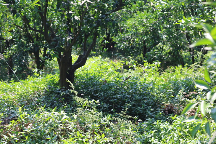 农友刘社洪的柑橘地早在07年就不再使用除草剂,转为生态种植后,多年的养护让土壤松软肥沃,富含有机质,各种杂草生长旺盛,泥土中蚯蚓和各种小昆虫随处可见,整个果园生机勃勃。