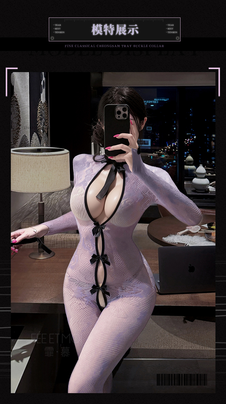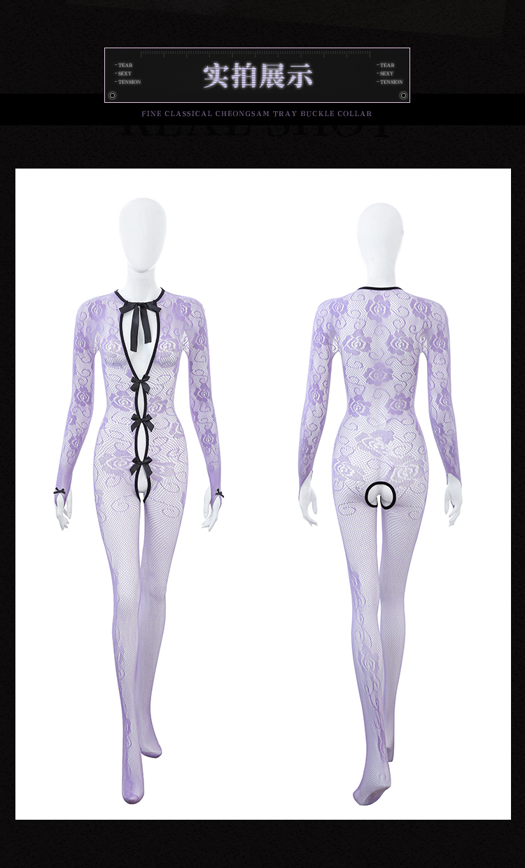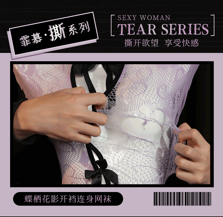 霏慕 蝶栖花影开裆连身网袜ZY186