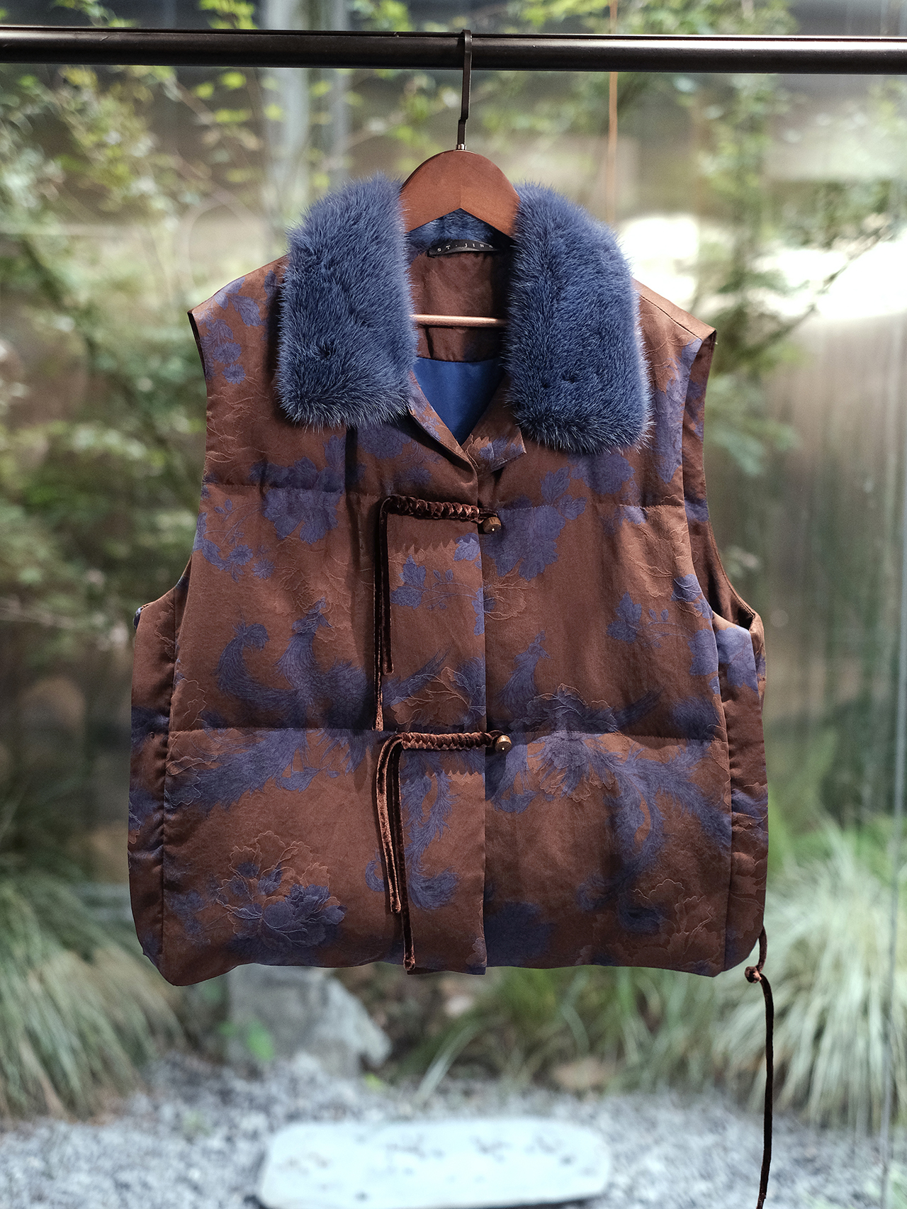 盛唐婧 | 新中式香云纱盘扣拼水貂鹅绒马甲