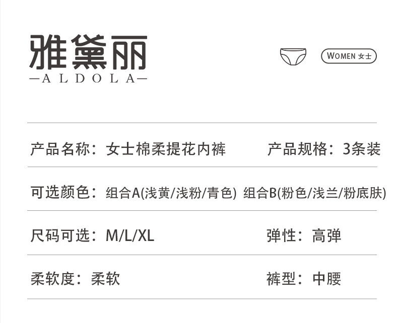 ALDOLA/雅黛俪女士内裤纯棉裆10A抗菌中腰女三角裤防卡裆短裤头薄