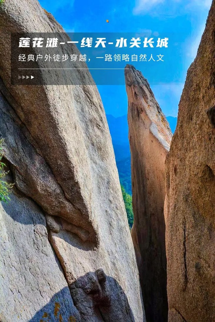 户外徒步线路(非休闲):莲花滩-一线天徒步,全程约11公里,累计爬升约360米,全程耗时约6小时,户外强度等级1.0,适合有一定户外经验的人群参加(18-55周岁身体健康者)。
