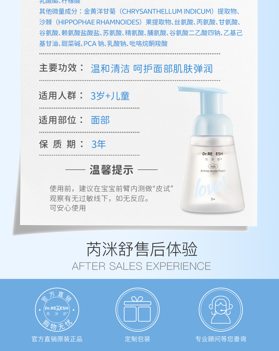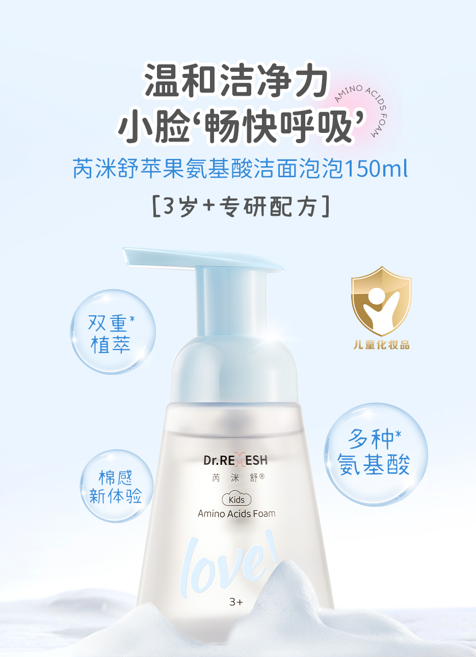 DR.Remesh芮洣舒儿童苹果氨基酸洁面泡泡45ml/150ml 洗面奶去油保湿 3岁及以上|品牌直发