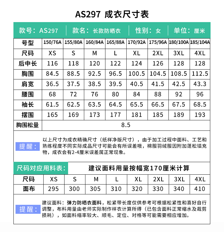裁缝学苑AS297凉感防晒裙纸样女装长款夏季全身防晒衣连帽连衣裙图纸