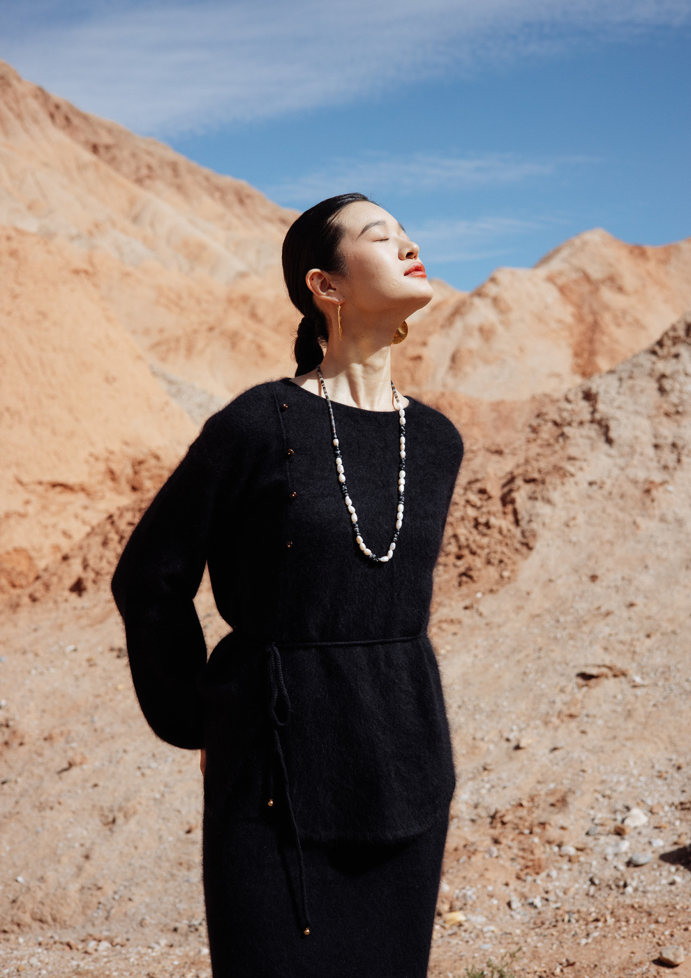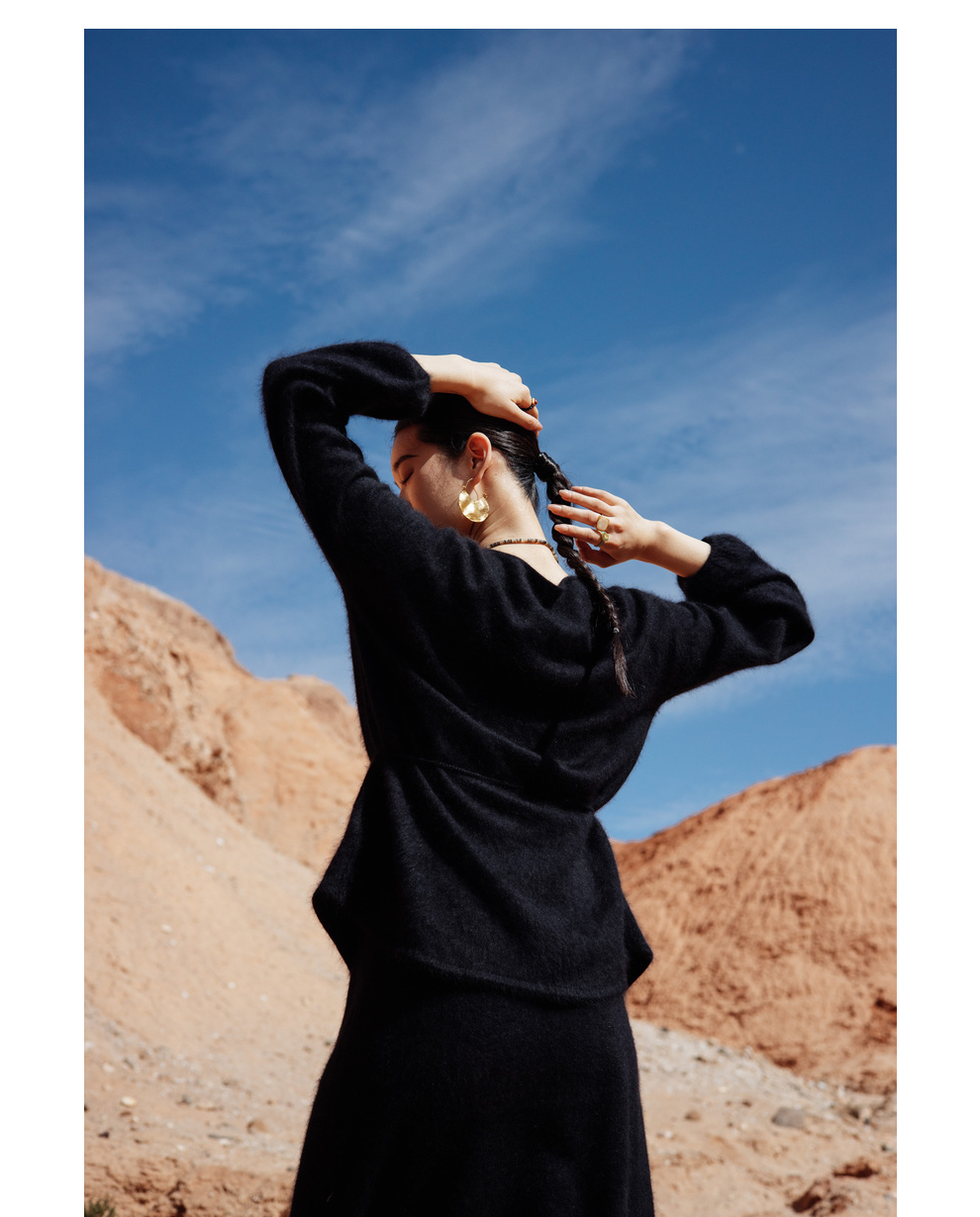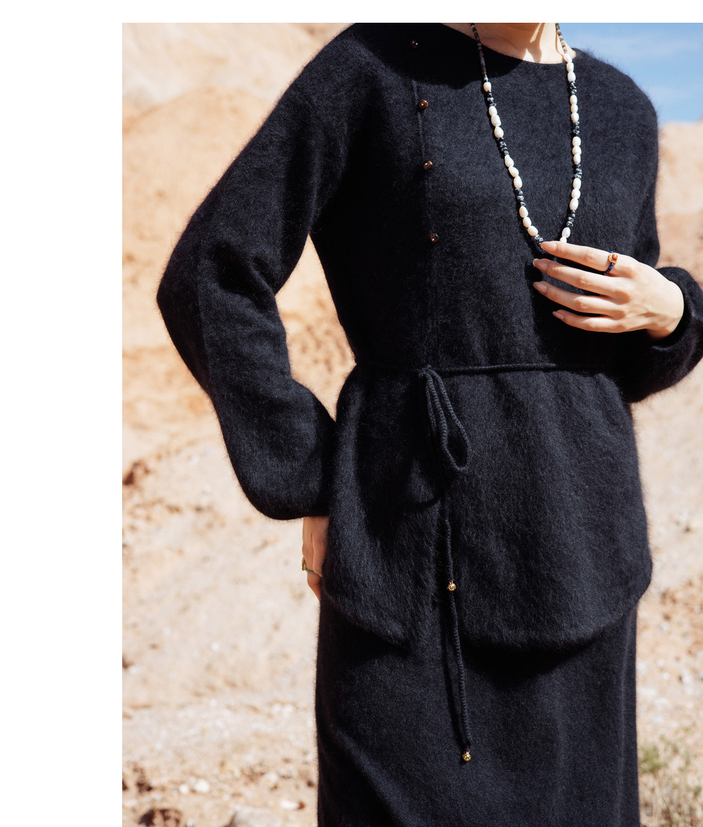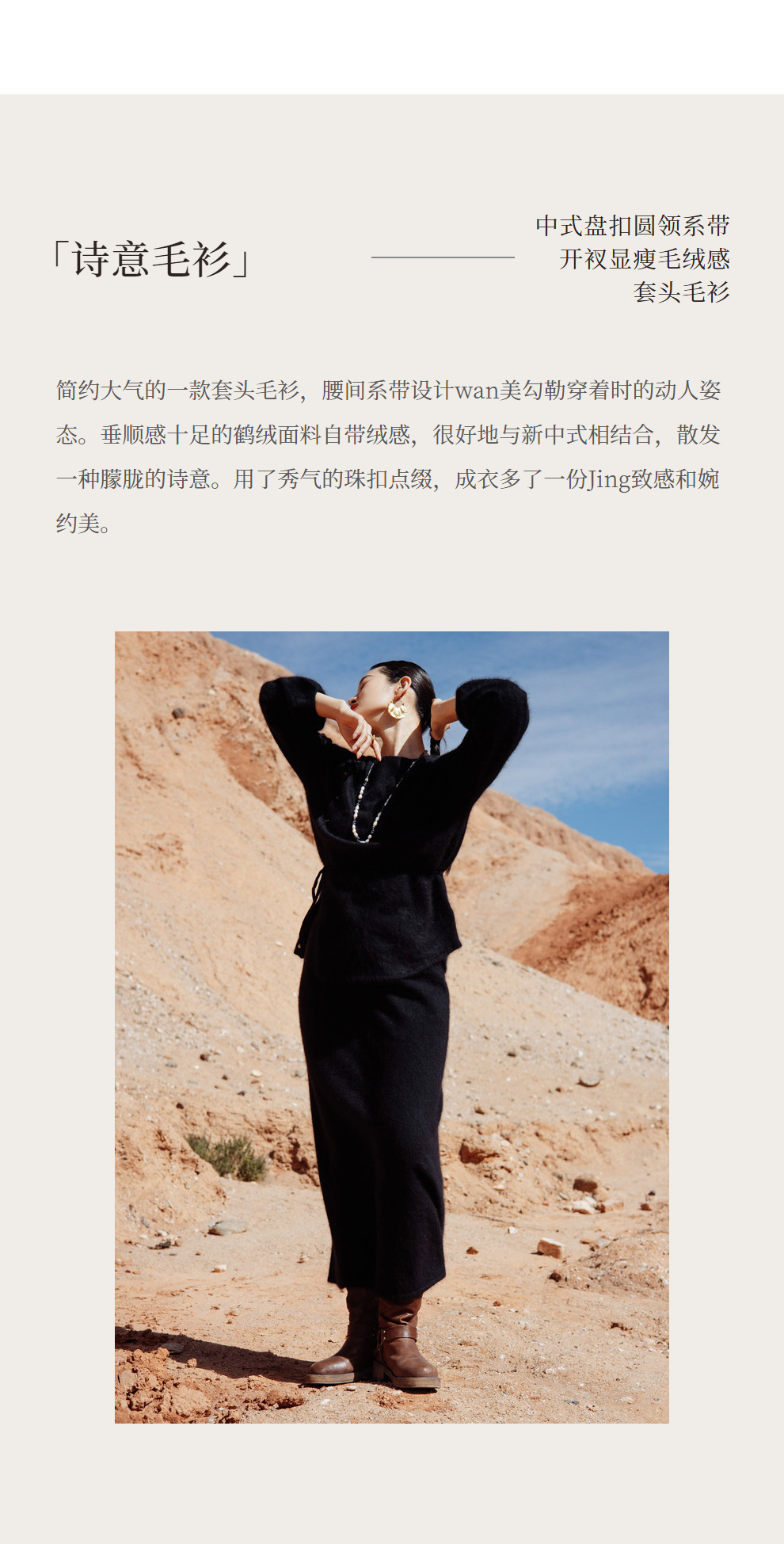 绽放752朵/【鹤绒系列】冬季中式盘扣圆领系带开衩毛绒感套头毛衫