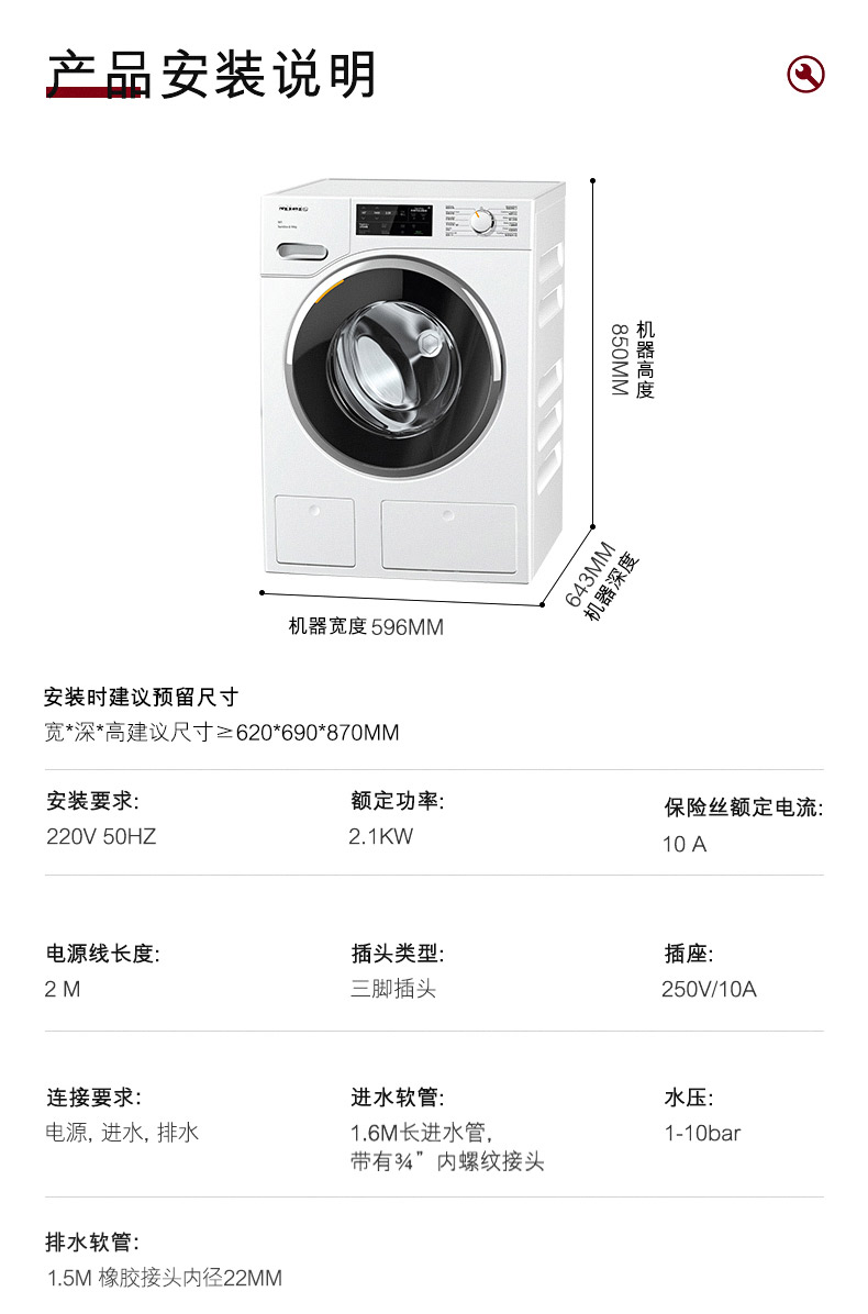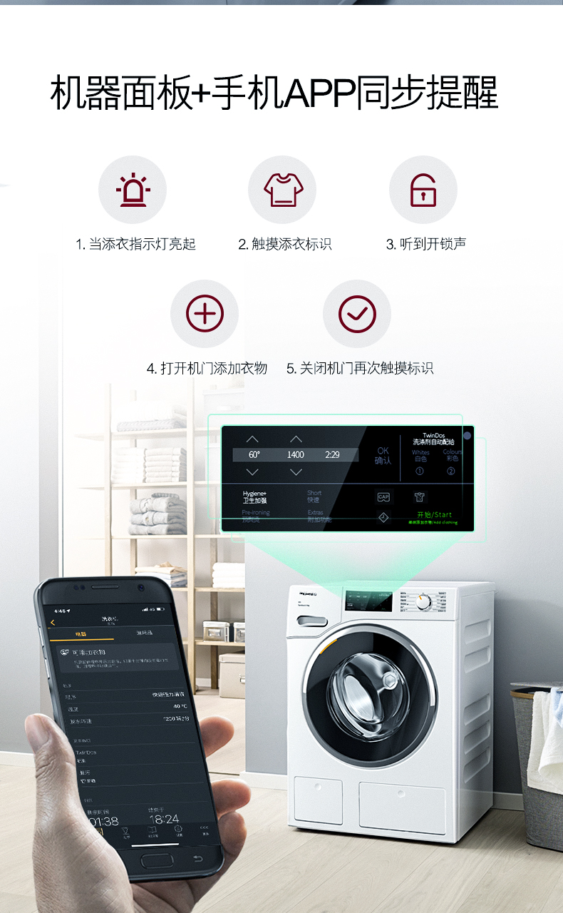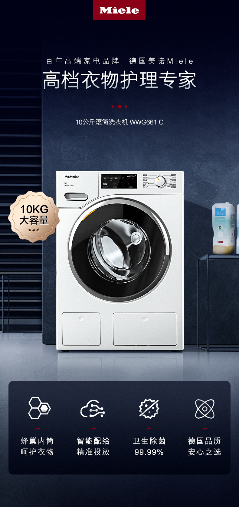 【6F】美诺Miele进口10KG全自动滚筒洗衣机家用大容量呵护款官方WWG661