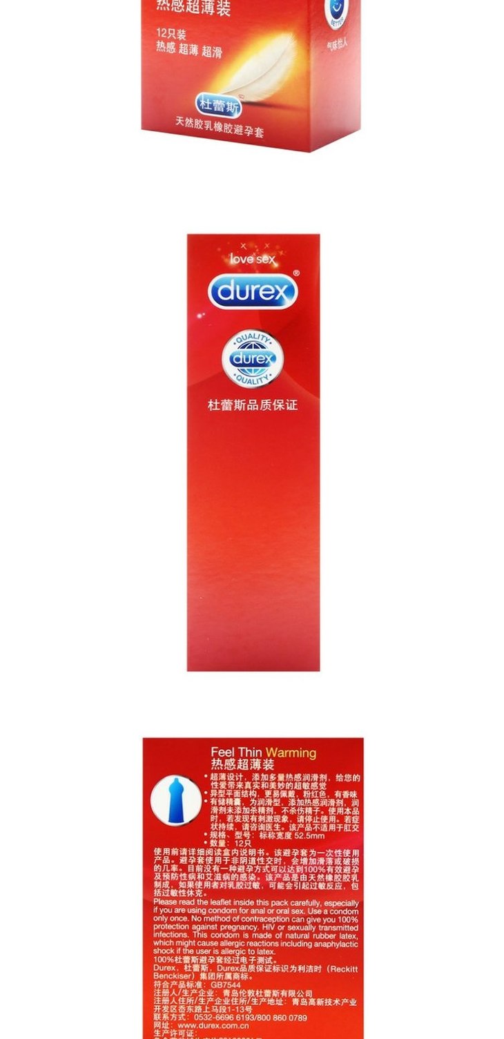 杜蕾斯超薄装天然胶乳橡胶避孕套18只装1盒安全套