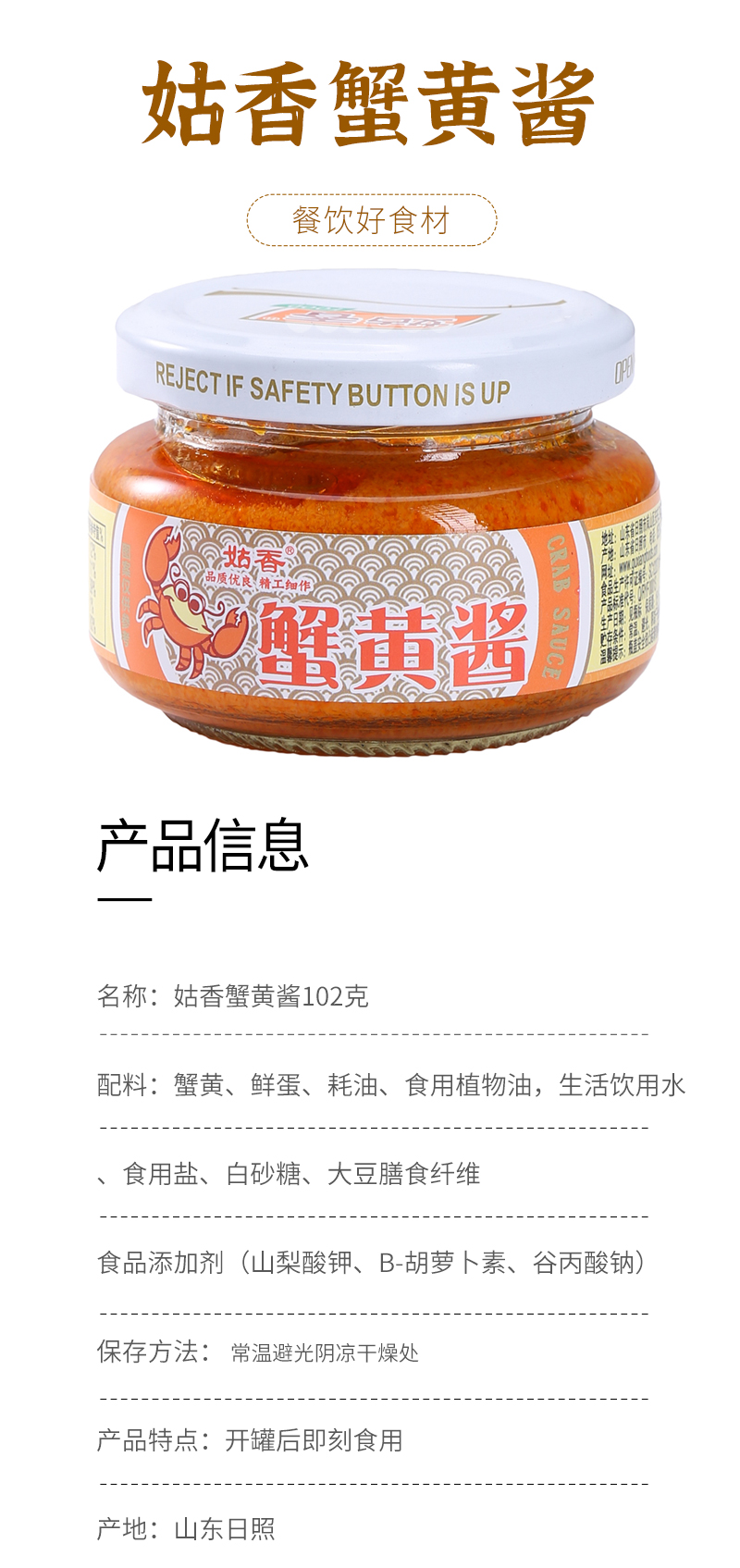 蟹黄酱102g 拌饭拌面蟹黄螃蟹粉蟹海鲜秃黄油蟹黄膏商用炒菜家用原味