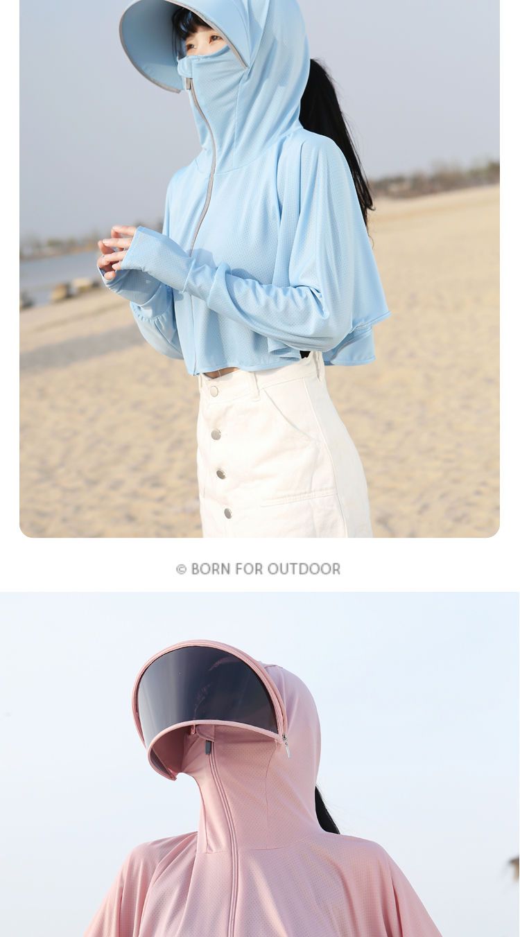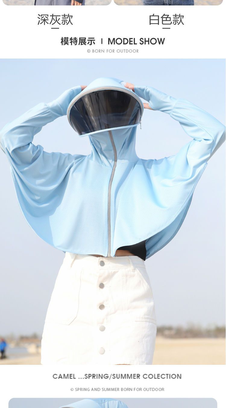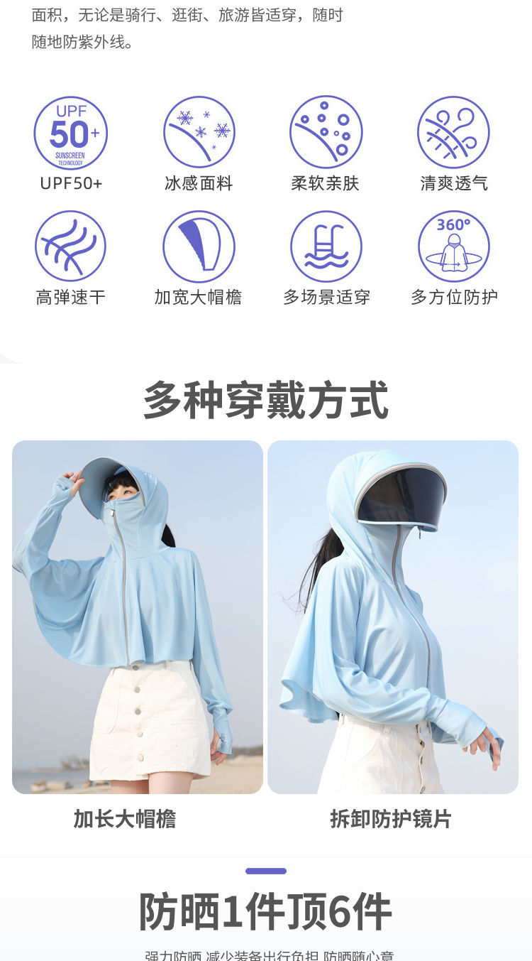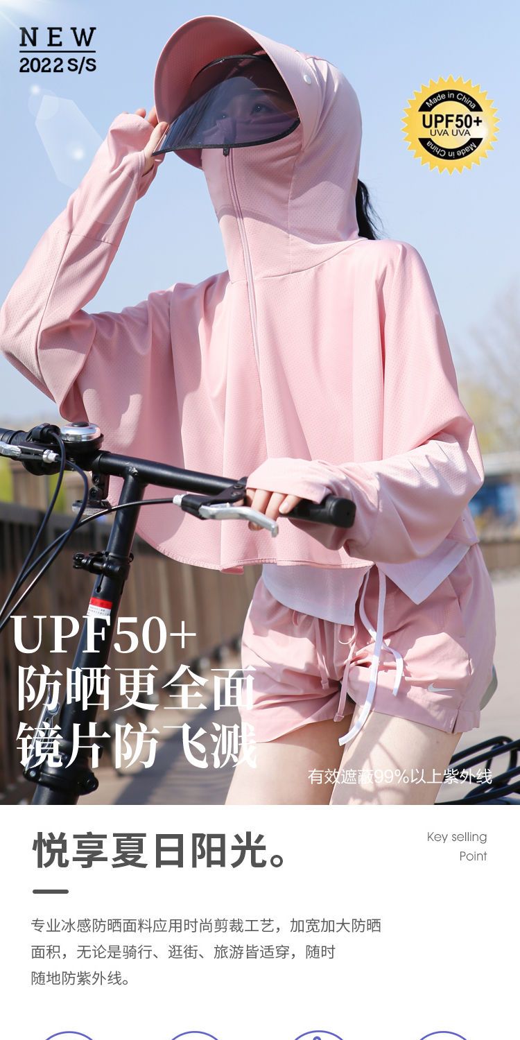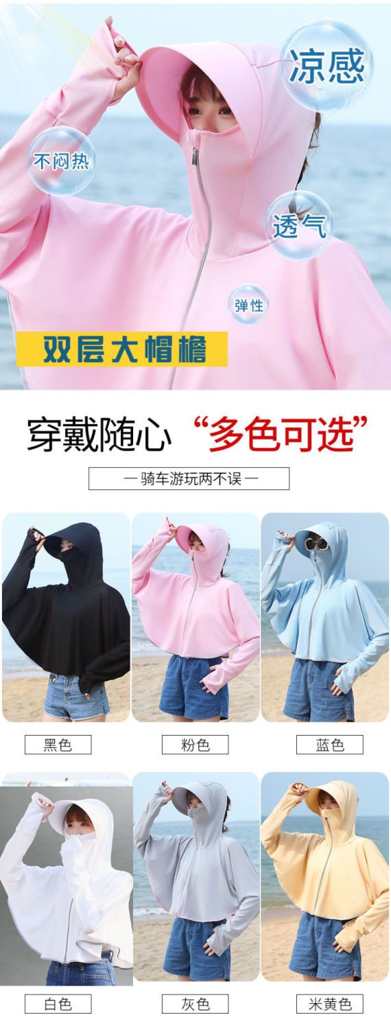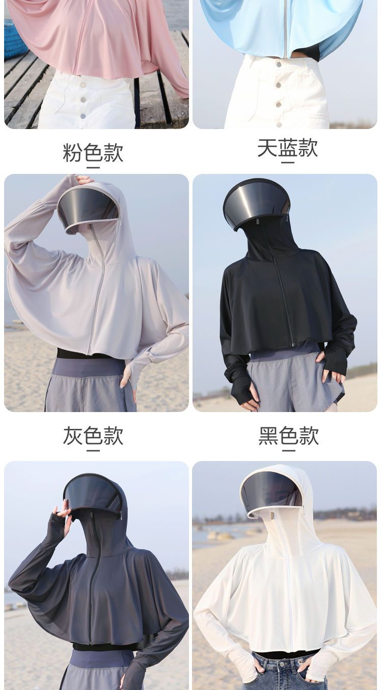 防晒衣女长袖冰丝薄款透气防紫外线防晒面罩可拆卸遮脸护颈骑车短