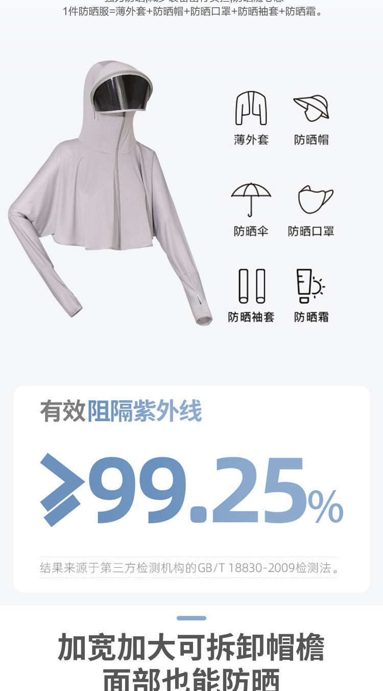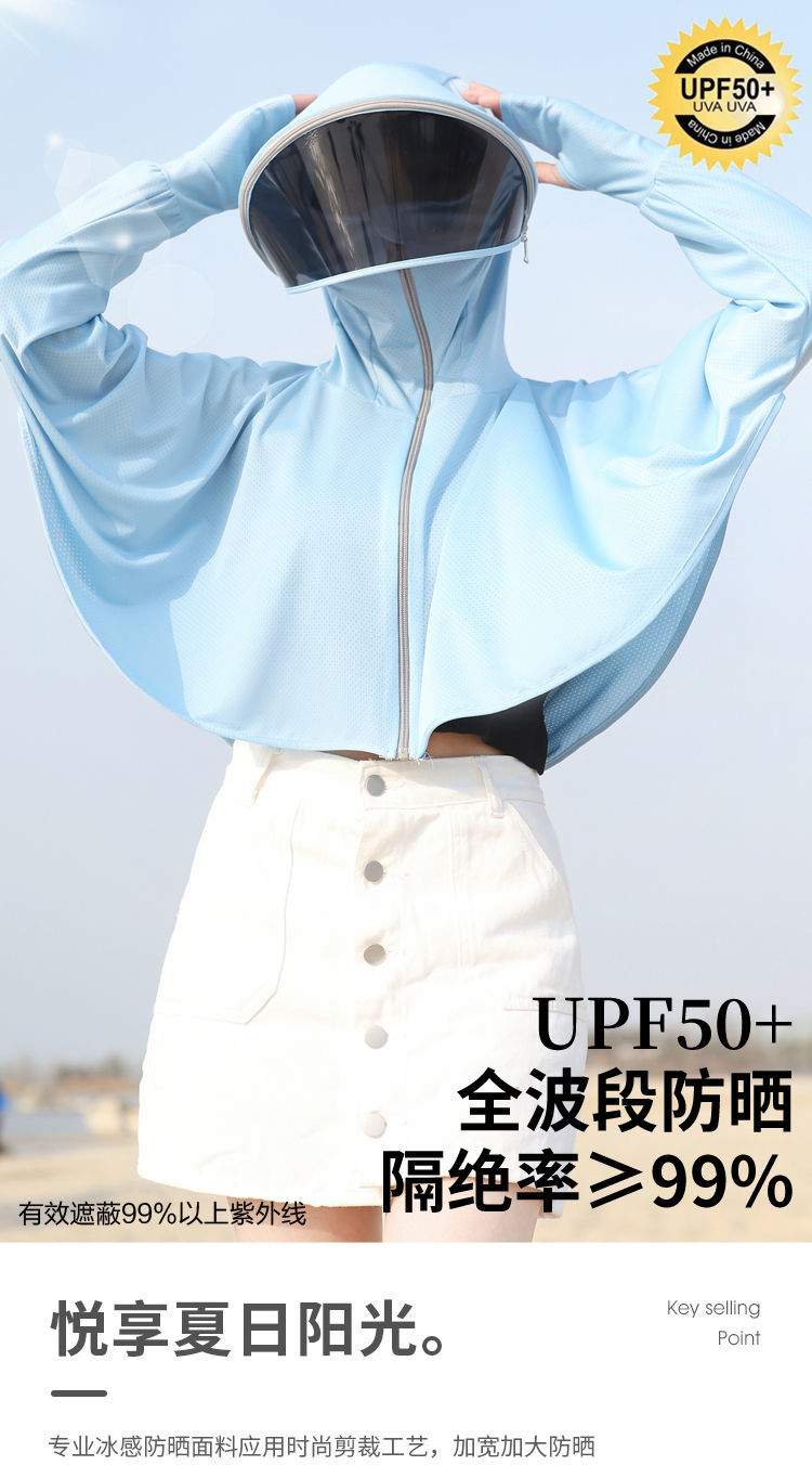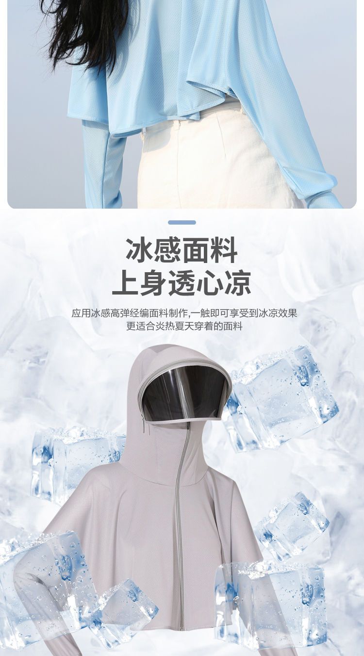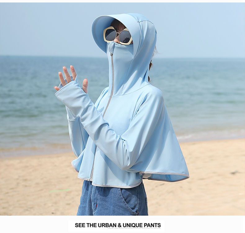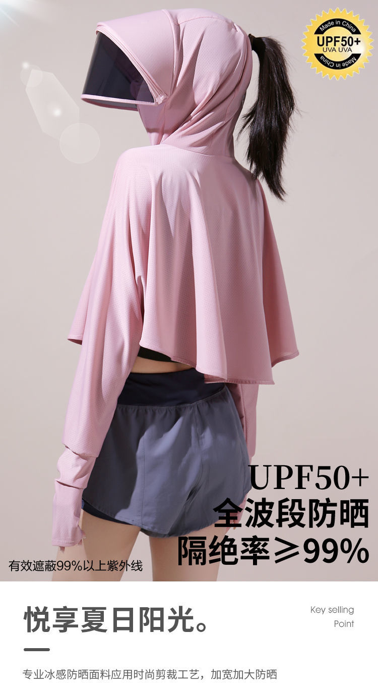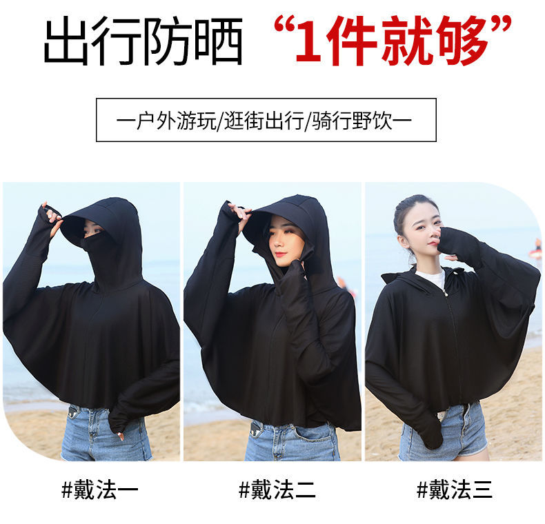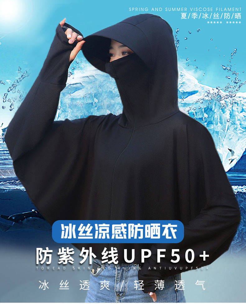 防晒衣女长袖冰丝薄款透气防紫外线防晒面罩可拆卸遮脸护颈骑车短