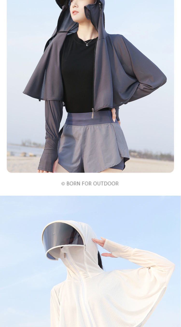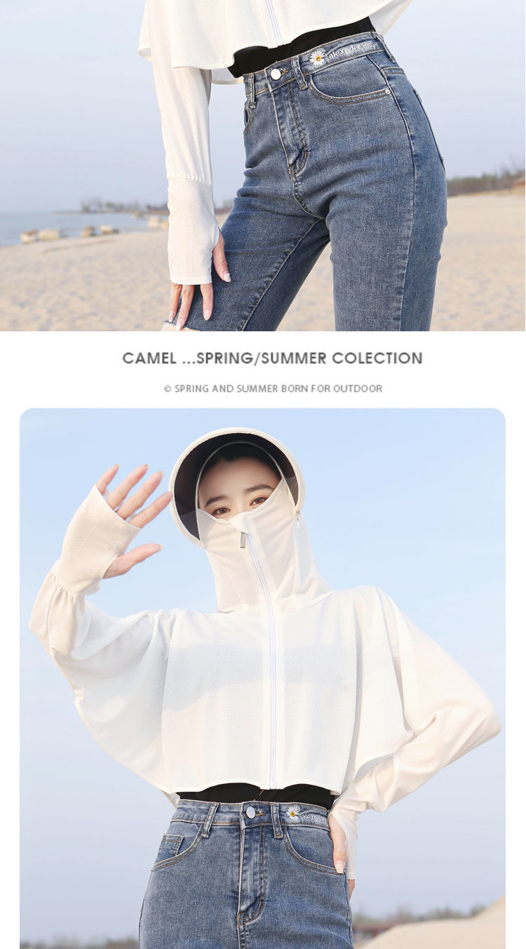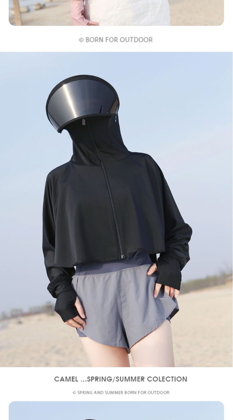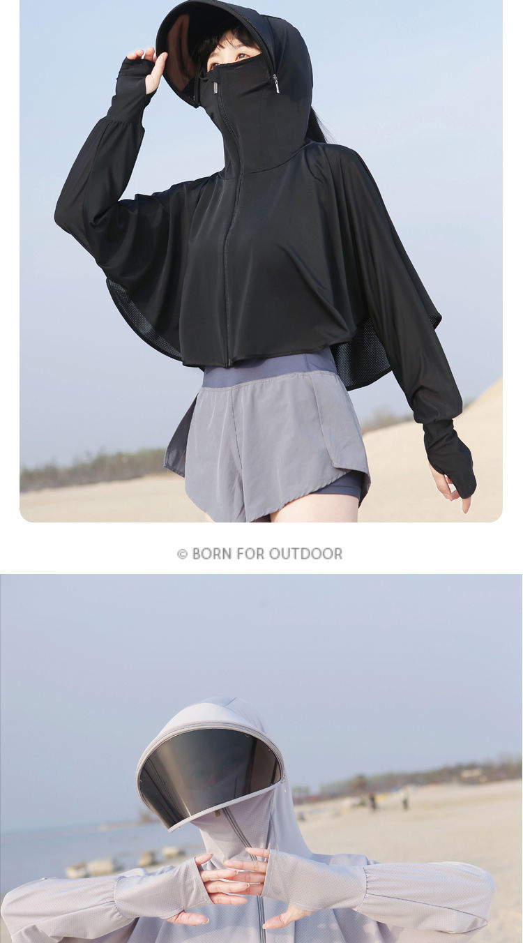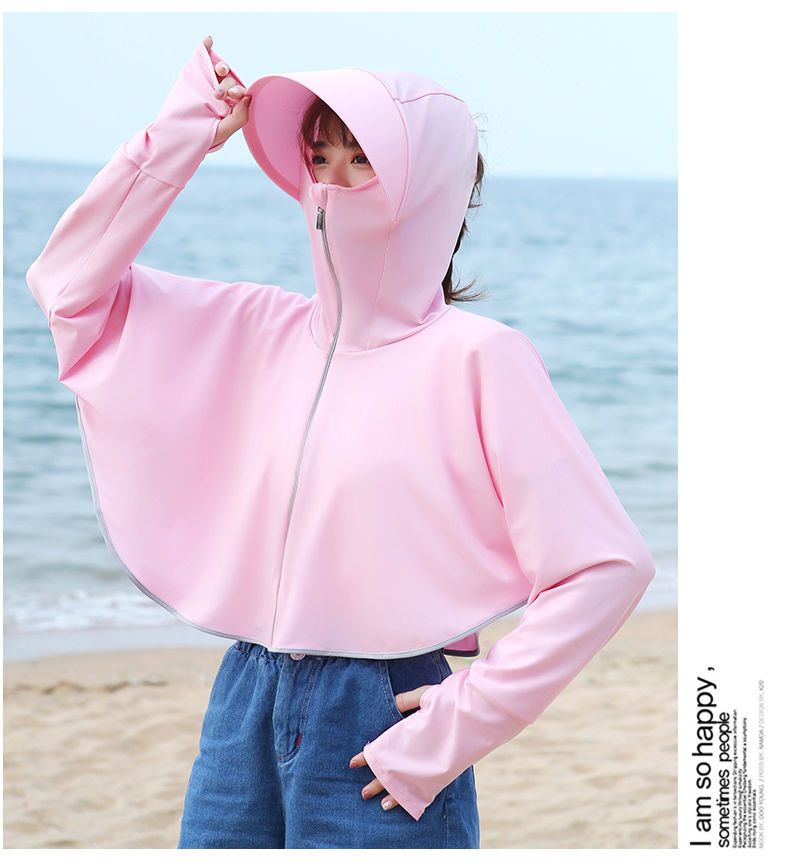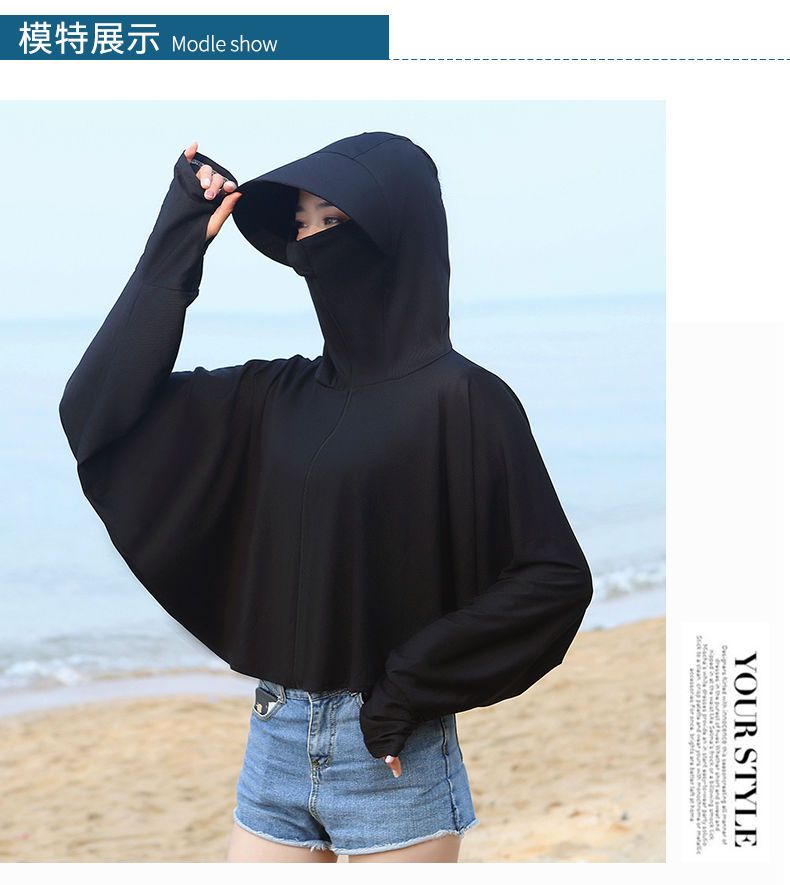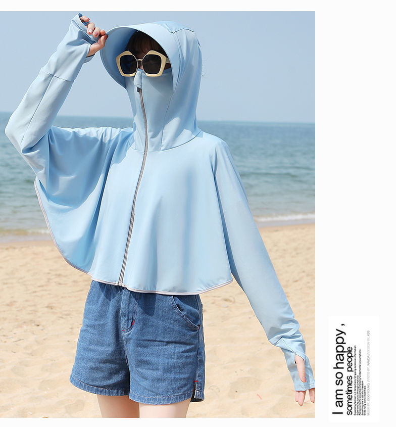 防晒衣女长袖冰丝薄款透气防紫外线防晒面罩可拆卸遮脸护颈骑车短