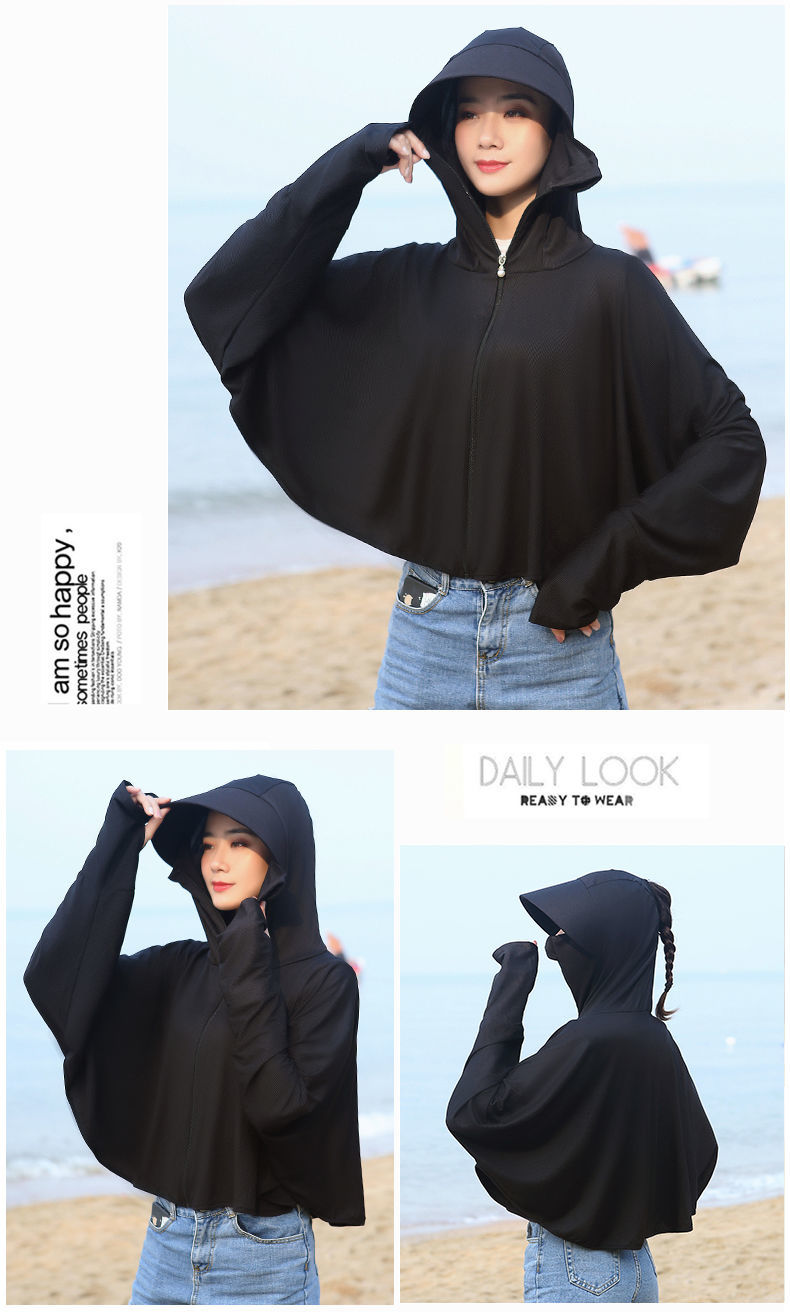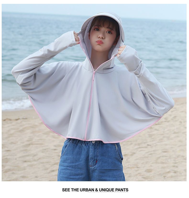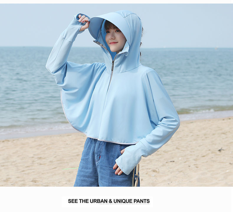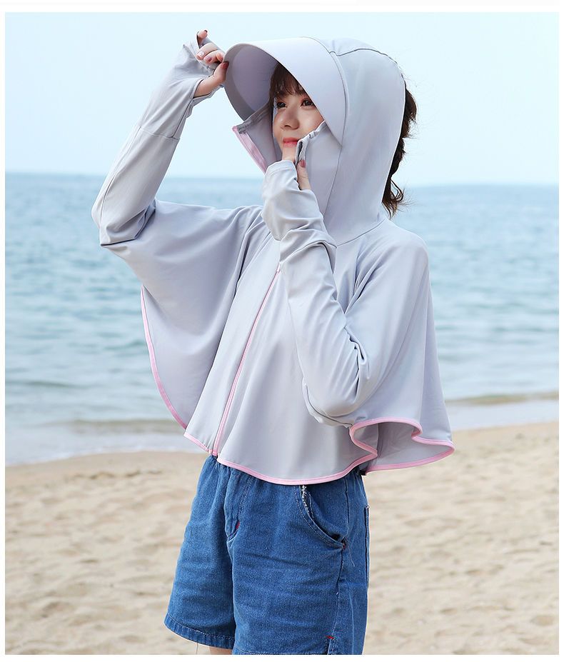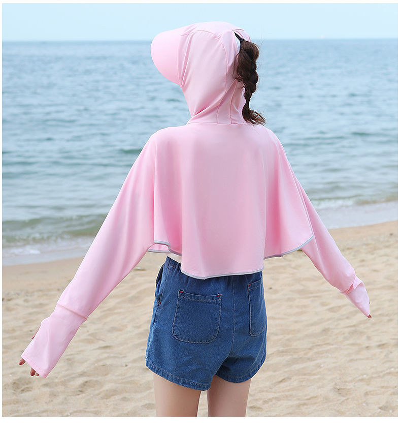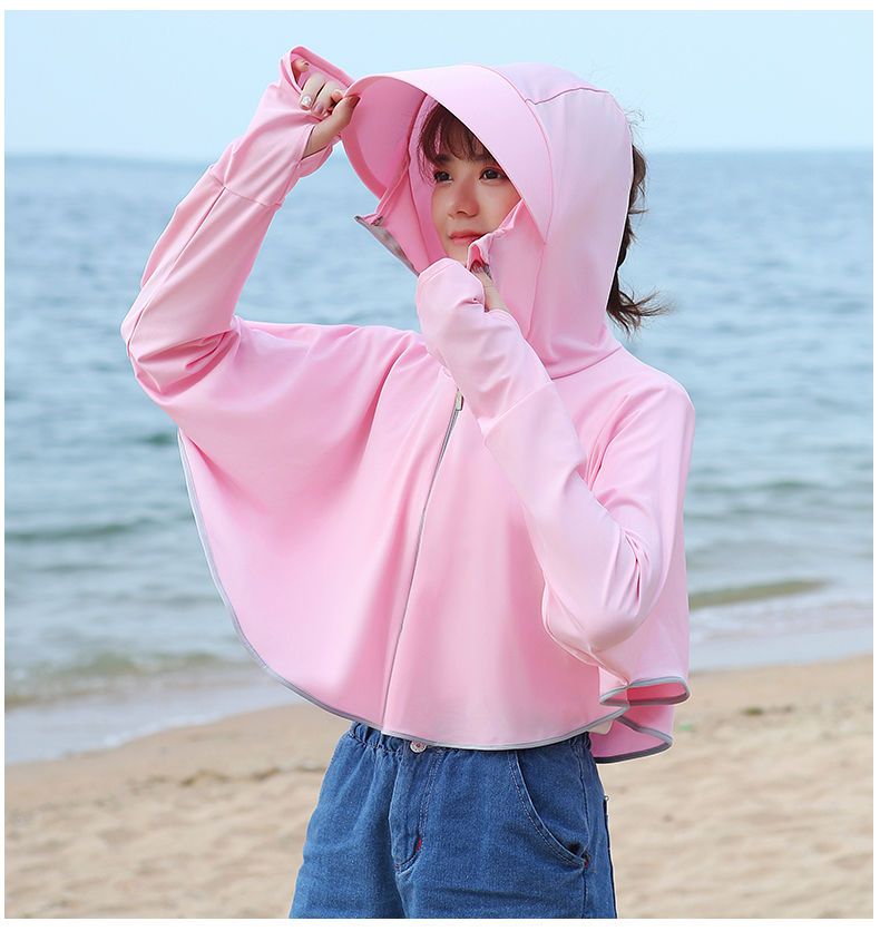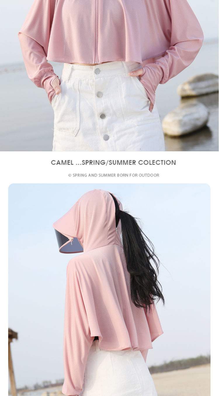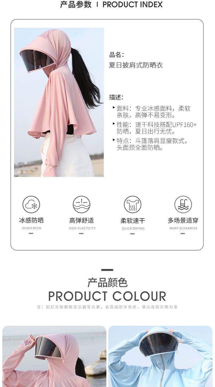 防晒衣女长袖冰丝薄款透气防紫外线防晒面罩可拆卸遮脸护颈骑车短