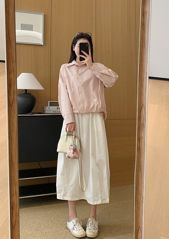 工装风水洗全棉圆弧抽绳下摆长袖衬衫!设计师版超新颖~