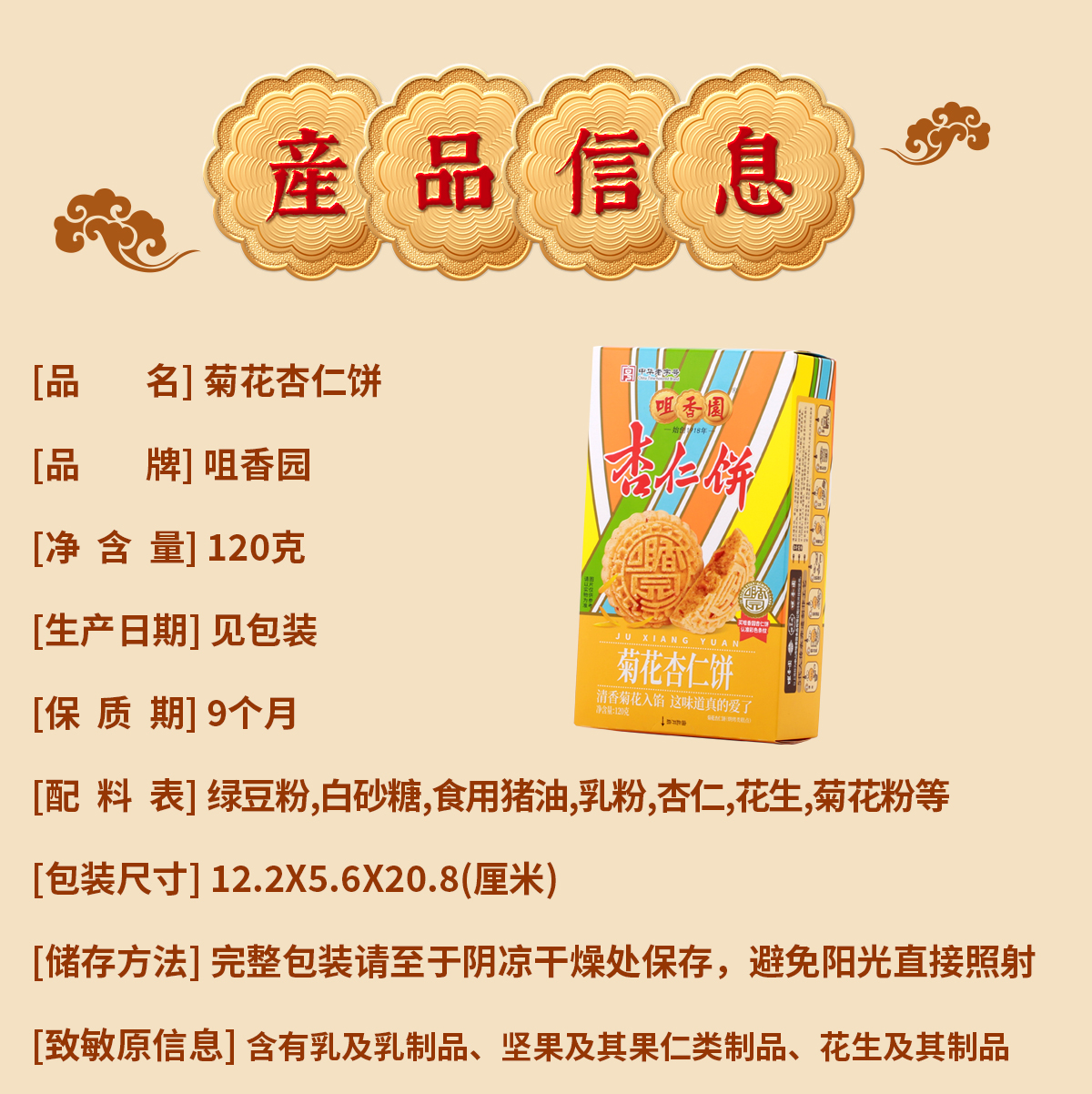 【咀香园菊花夹肉杏仁饼120g】传统糕点全新推出新口味杏仁饼手信礼独立包装