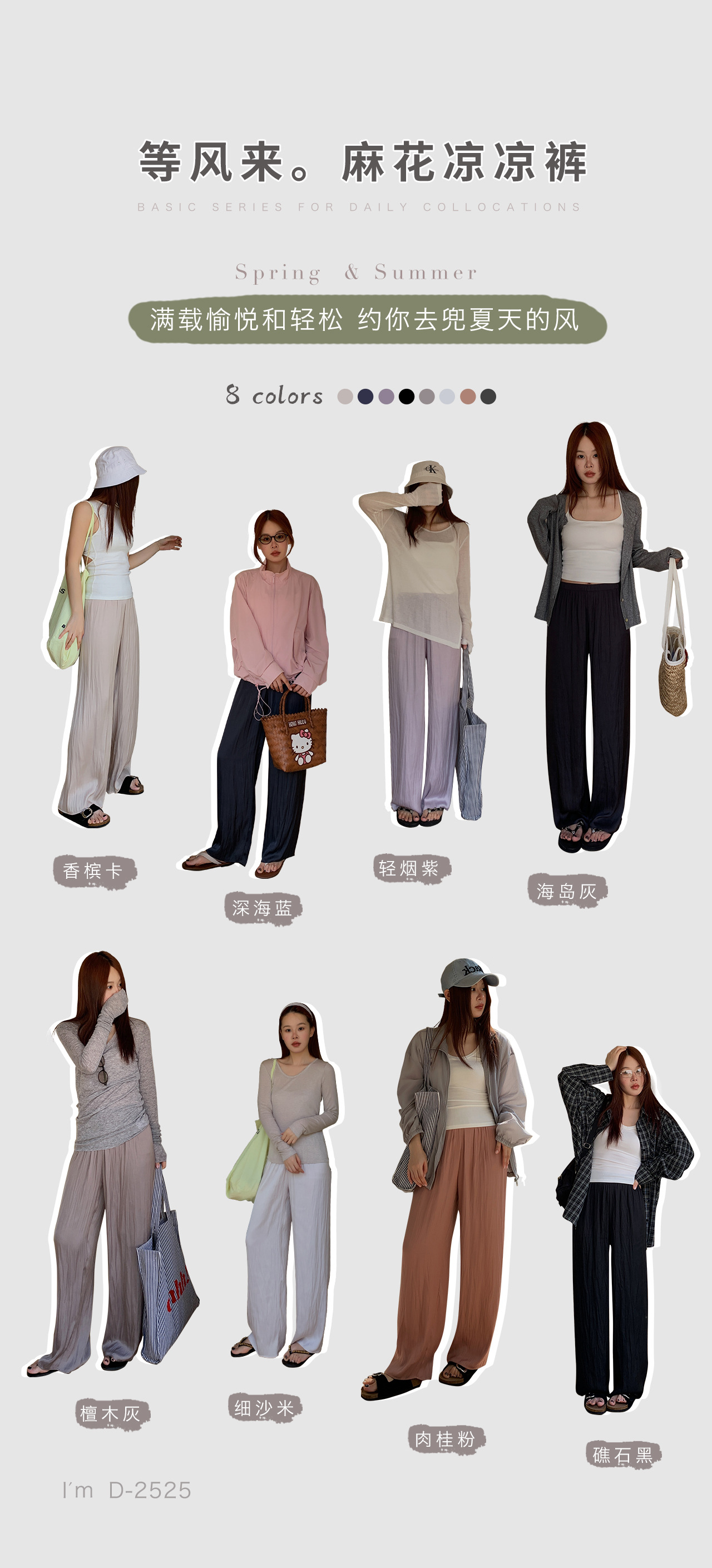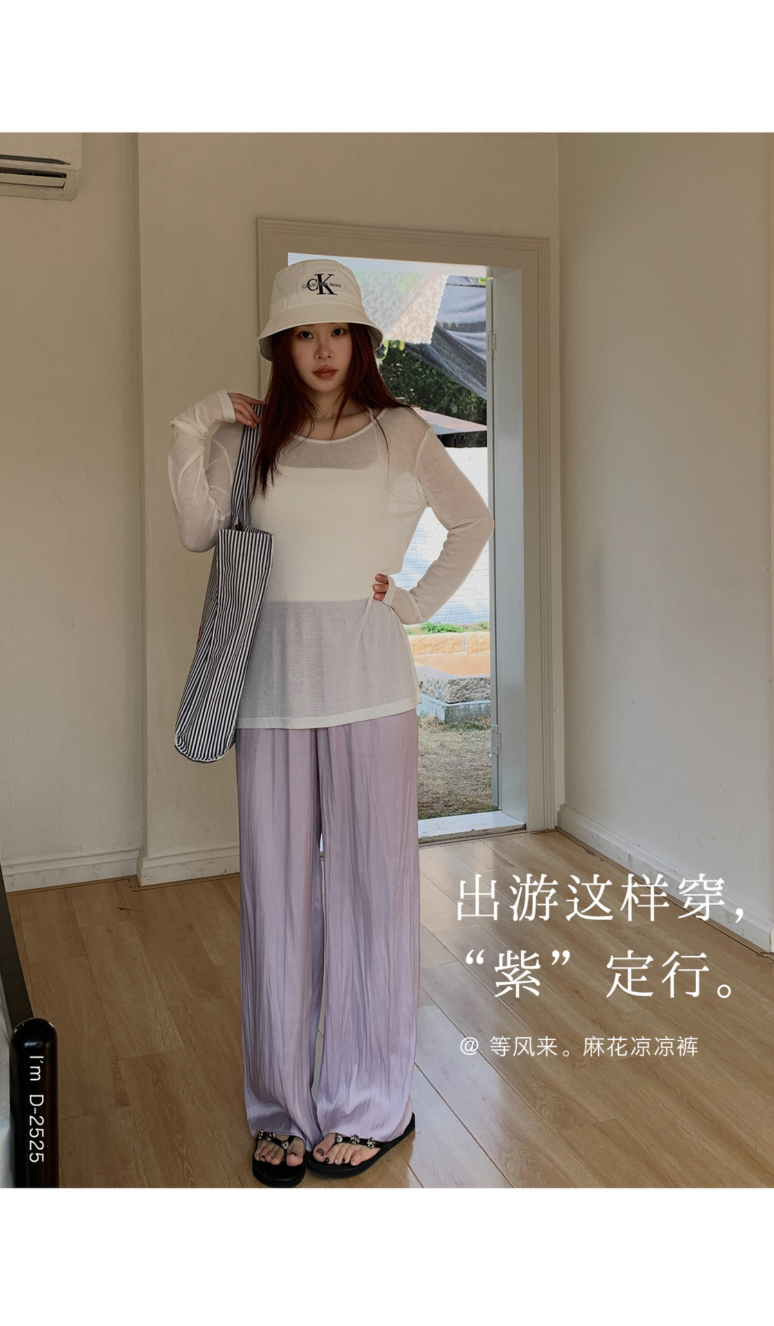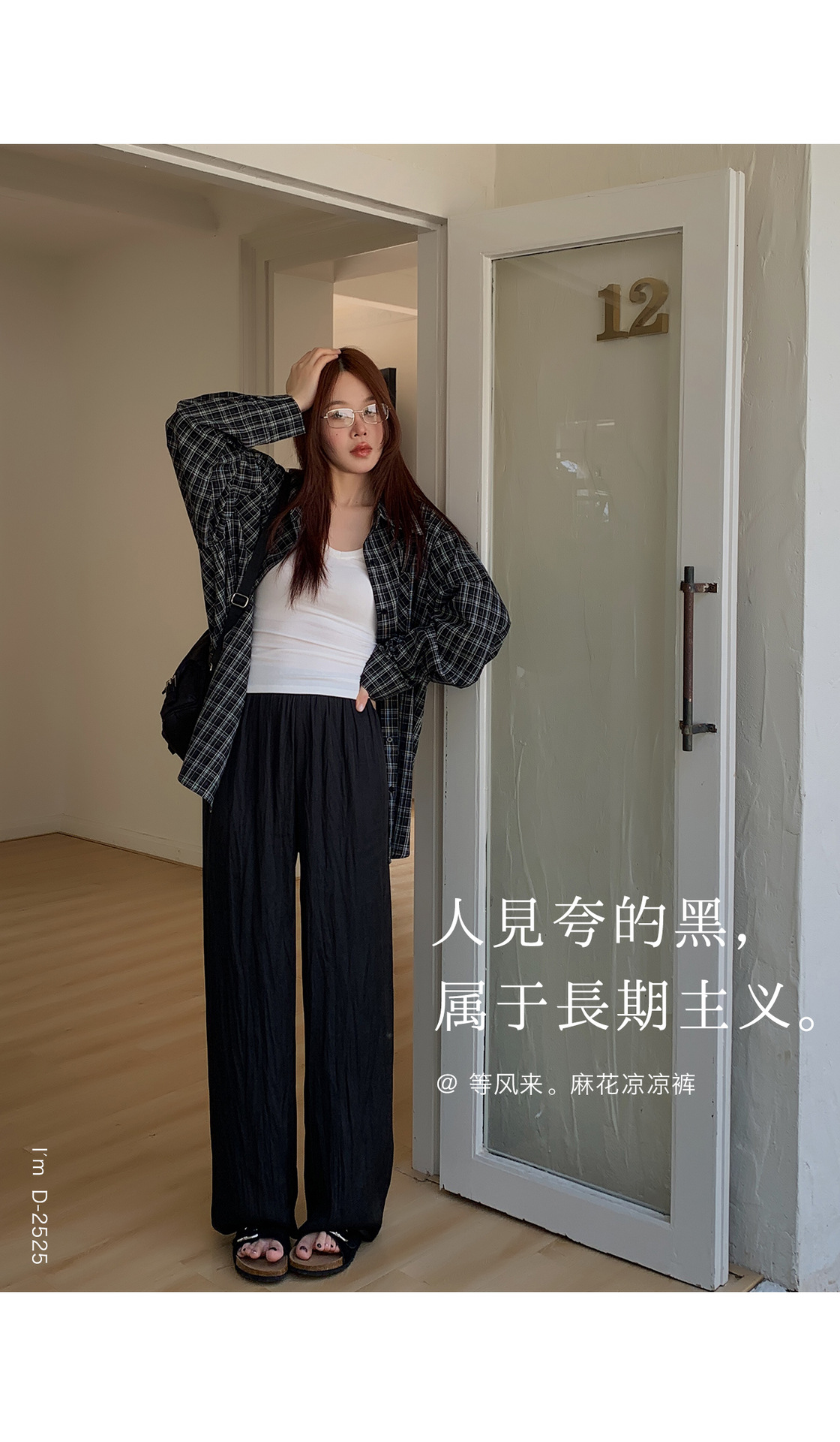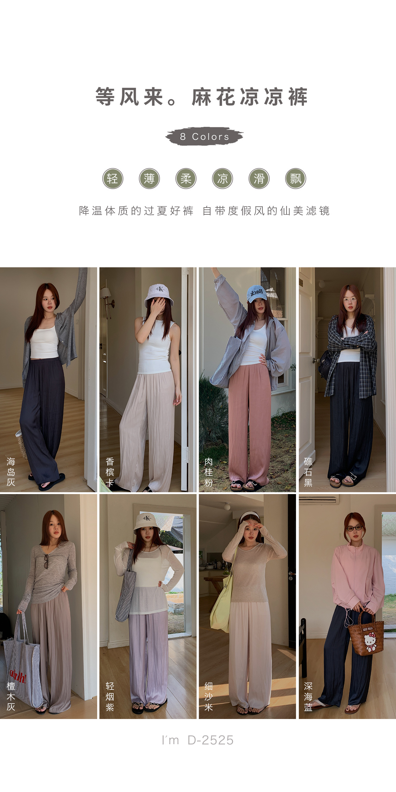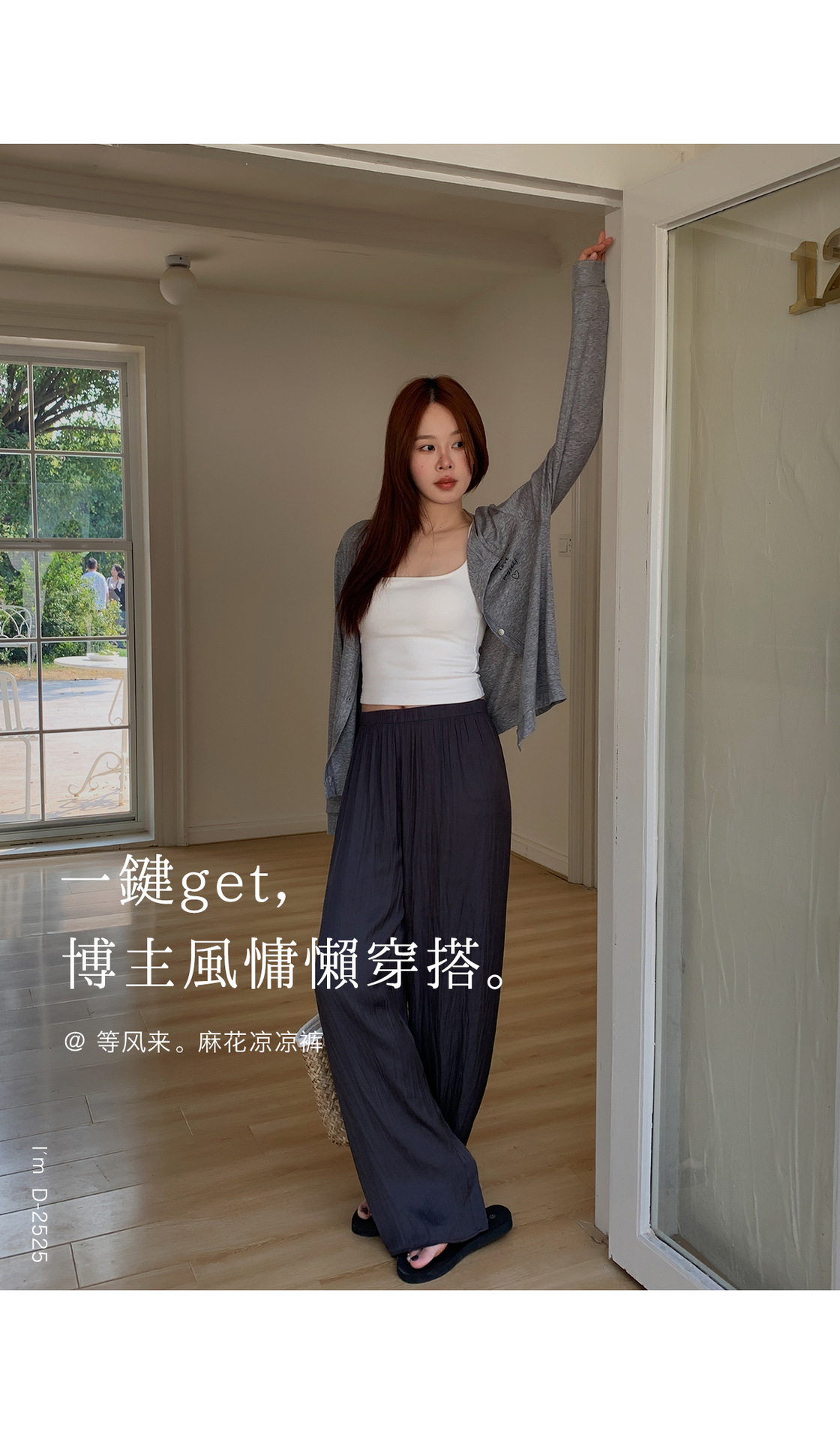 【走路带风】冰爽垂顺~春夏麻花凉凉裤休闲裤 慵懒松紧高腰弹力舒适懒人遛弯可家居可外穿阔腿裤