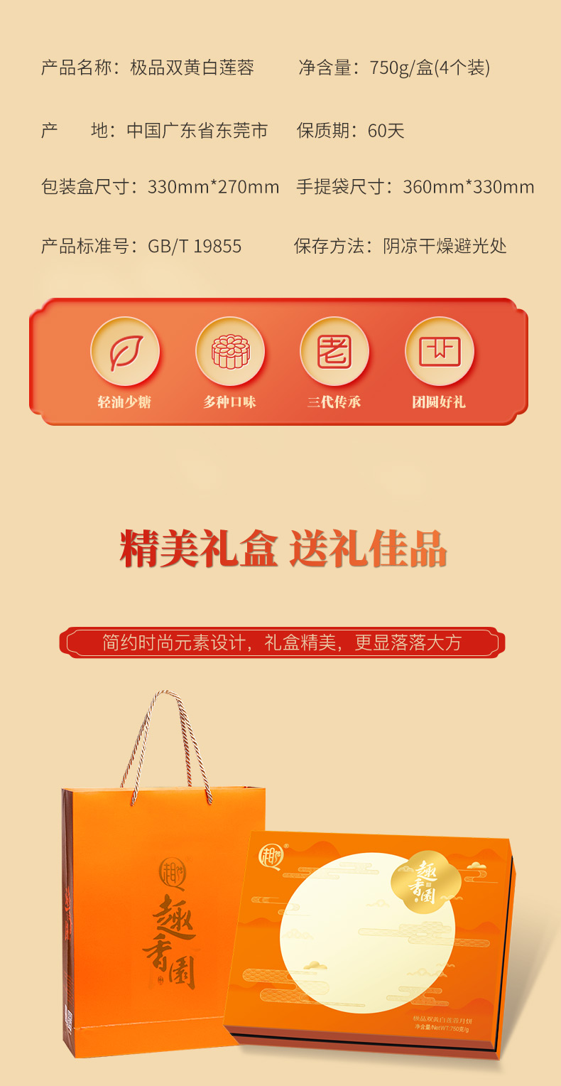 趣香园【盈月双喜】月饼中秋员工团购送礼 心系团圆