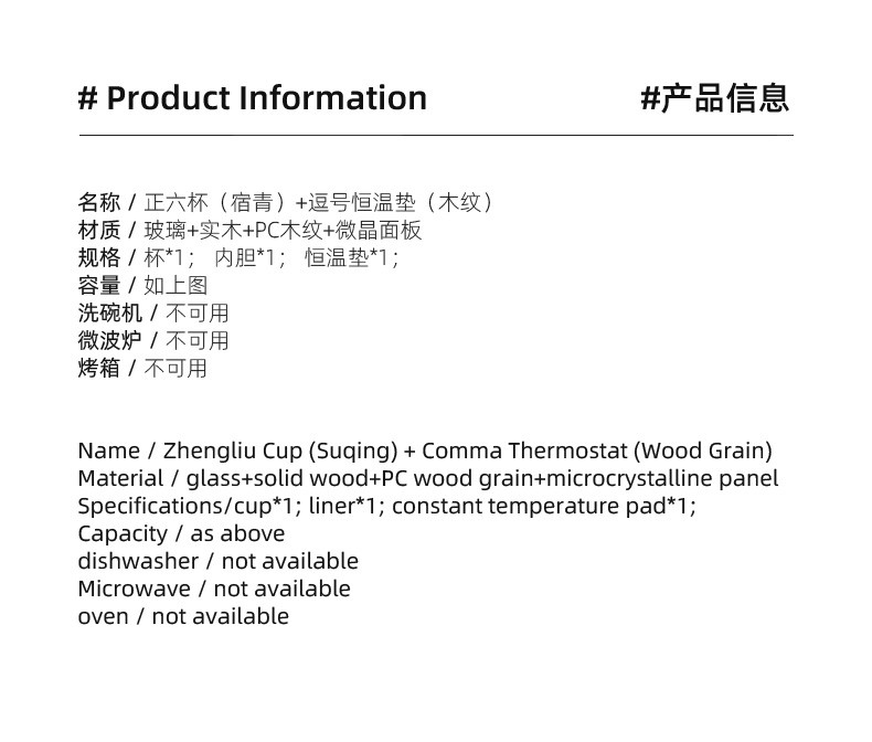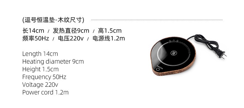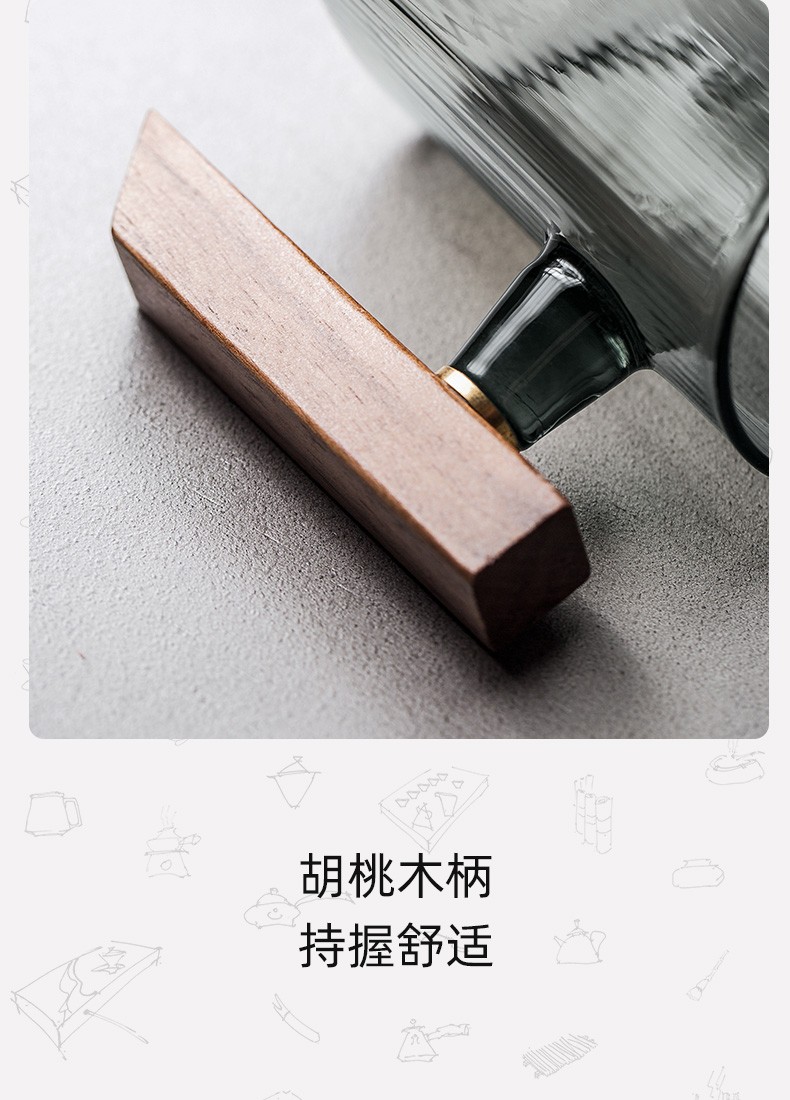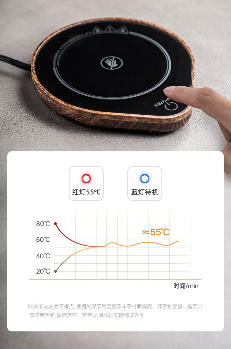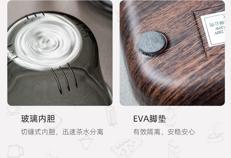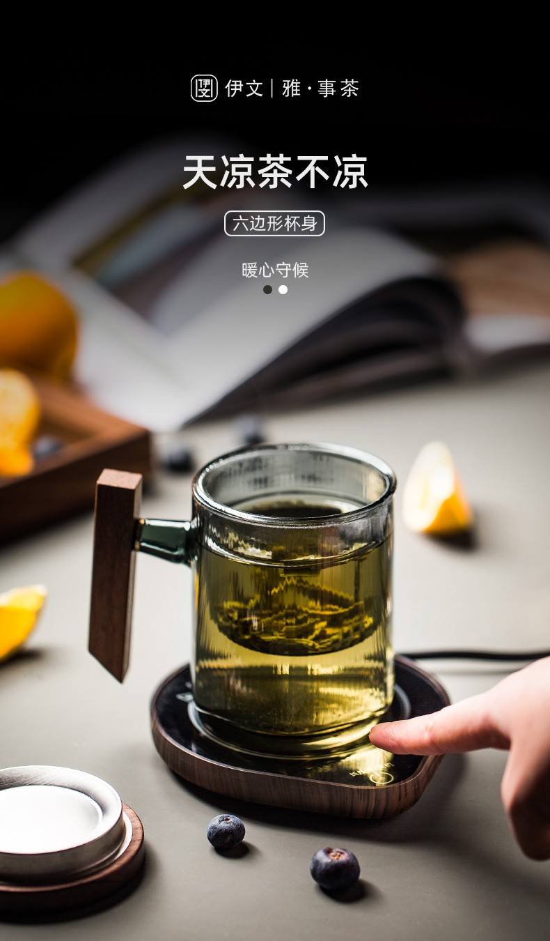 办公室玻璃茶杯带盖恒温垫组合智能加热日式茶水分离杯 伊-正六杯(宿青)-方把胡桃木+逗号恒温垫(木纹)