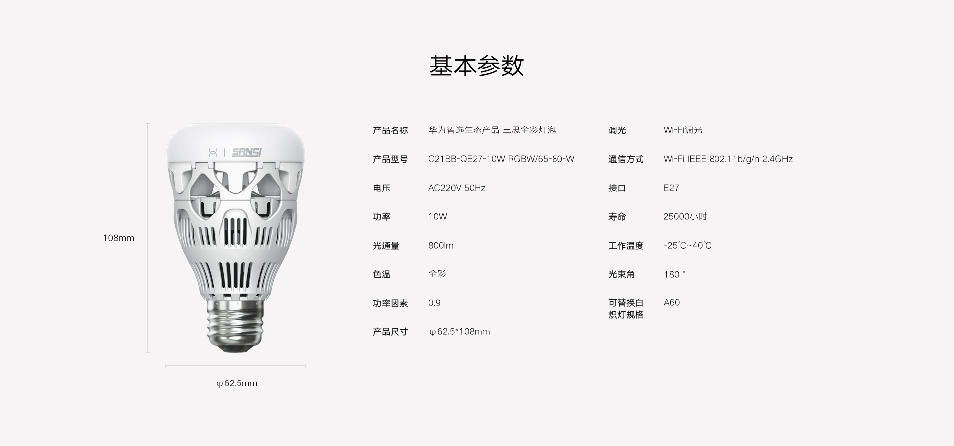 华为智选 三思全彩灯泡 白色(支持HUAWEI HiLink)