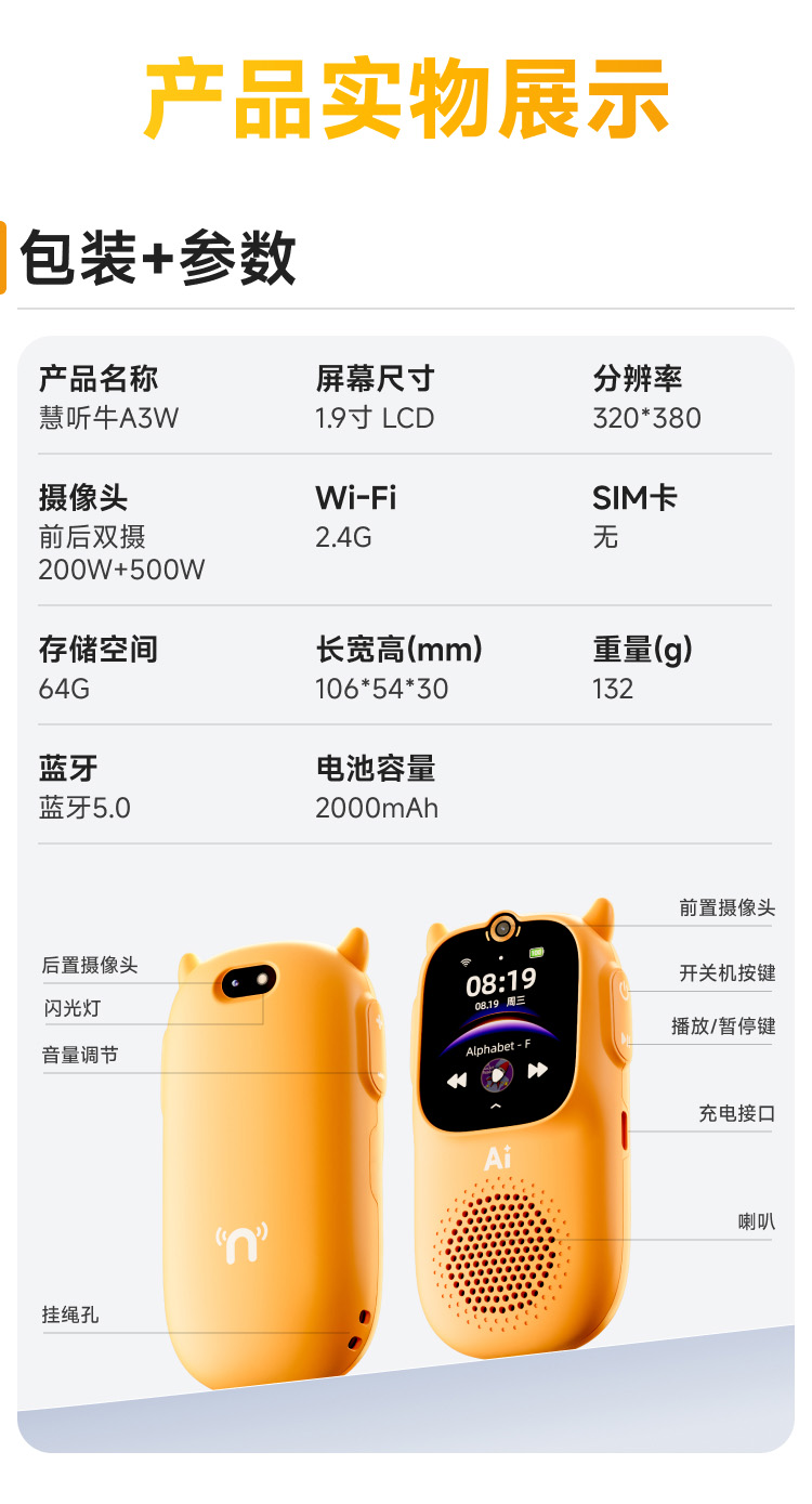 【纯牛币兑换】慧听牛A3 WiFi版 积分兑换商品不支持退货退款