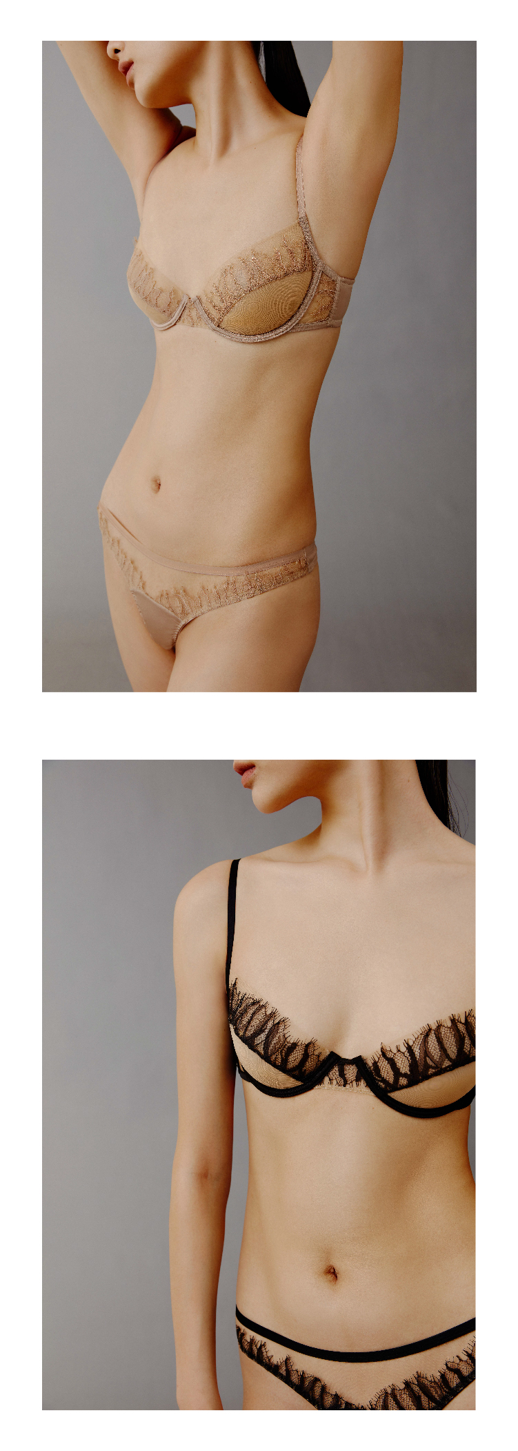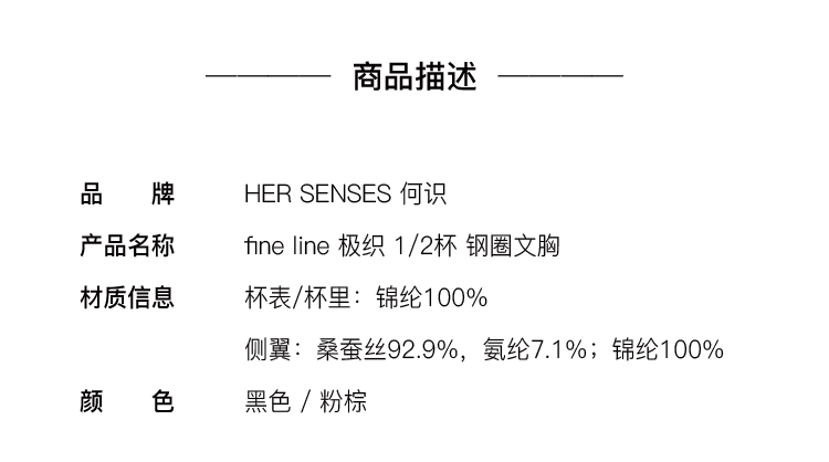 Her Senses|极织 03-B023-YN 1/2杯 钢圈文胸 [ 黑 / 粉棕 ]