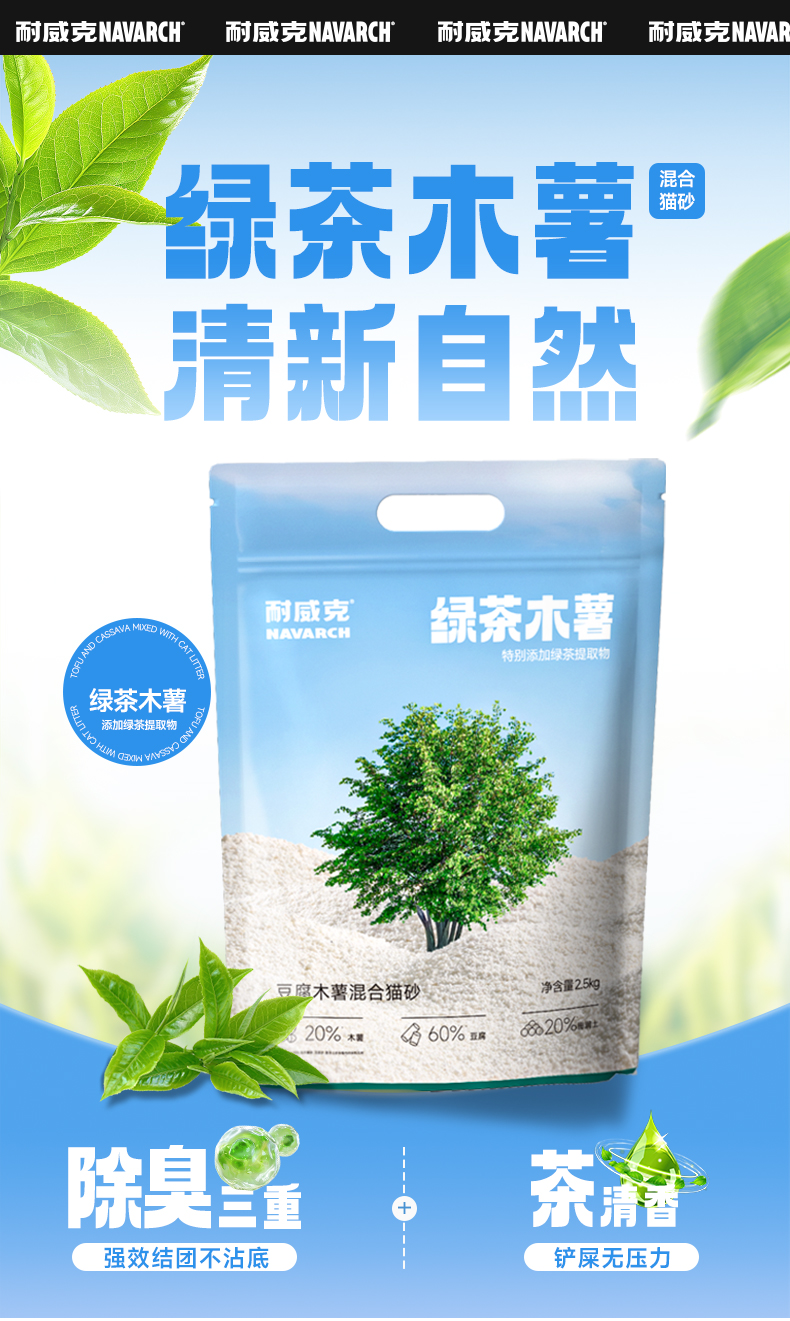 耐威克|绿茶木薯味|豆腐混合猫砂|强效结团不沾底|结团提升3倍|抛光级洁净