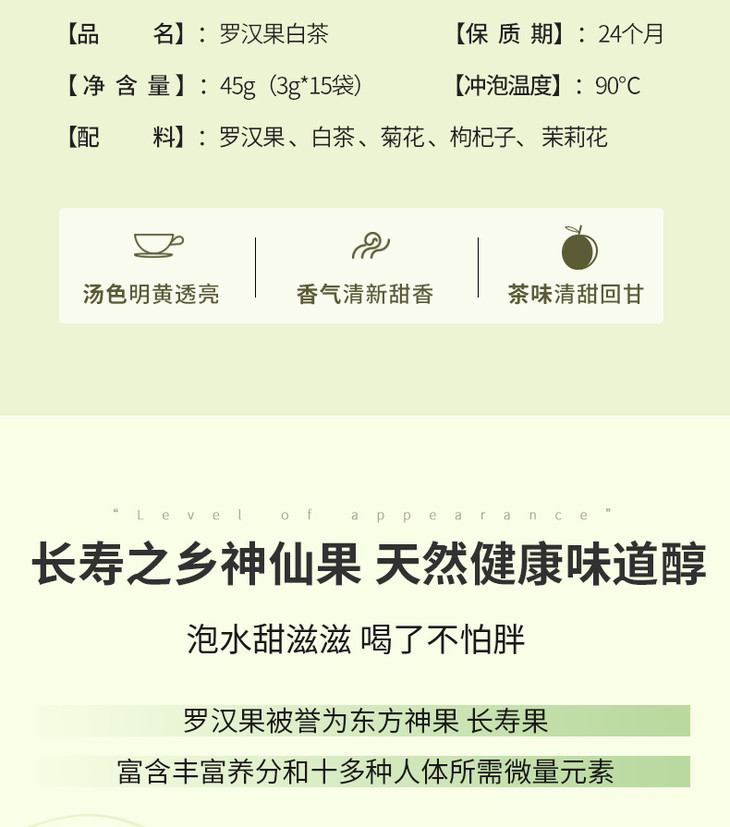 【2件82折】CHALI茶里罗汉果白茶 袋泡茶45g(15包/盒)