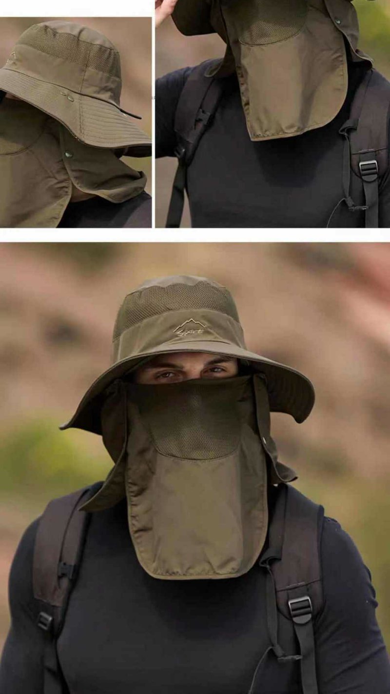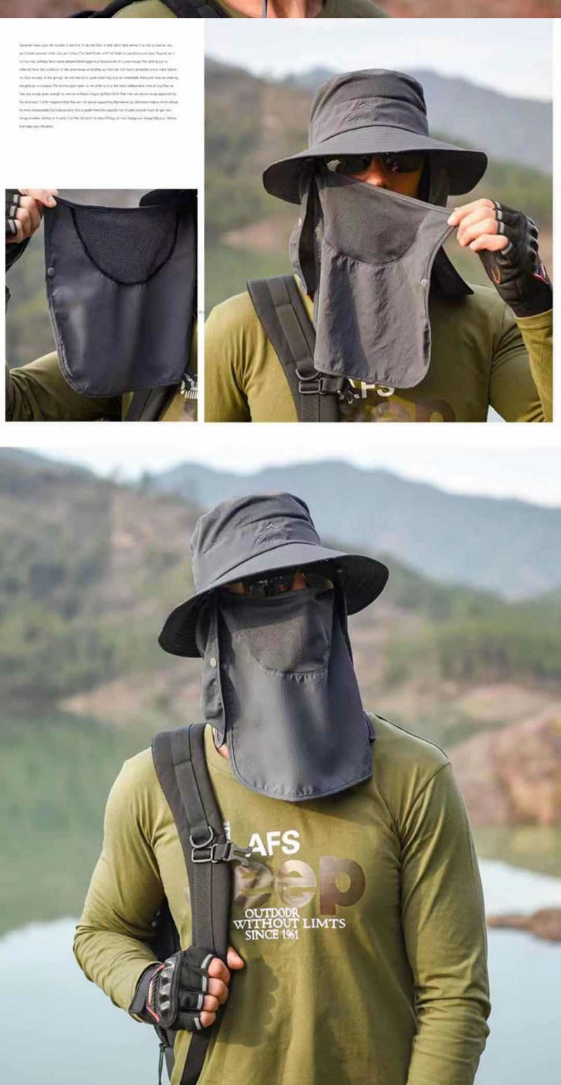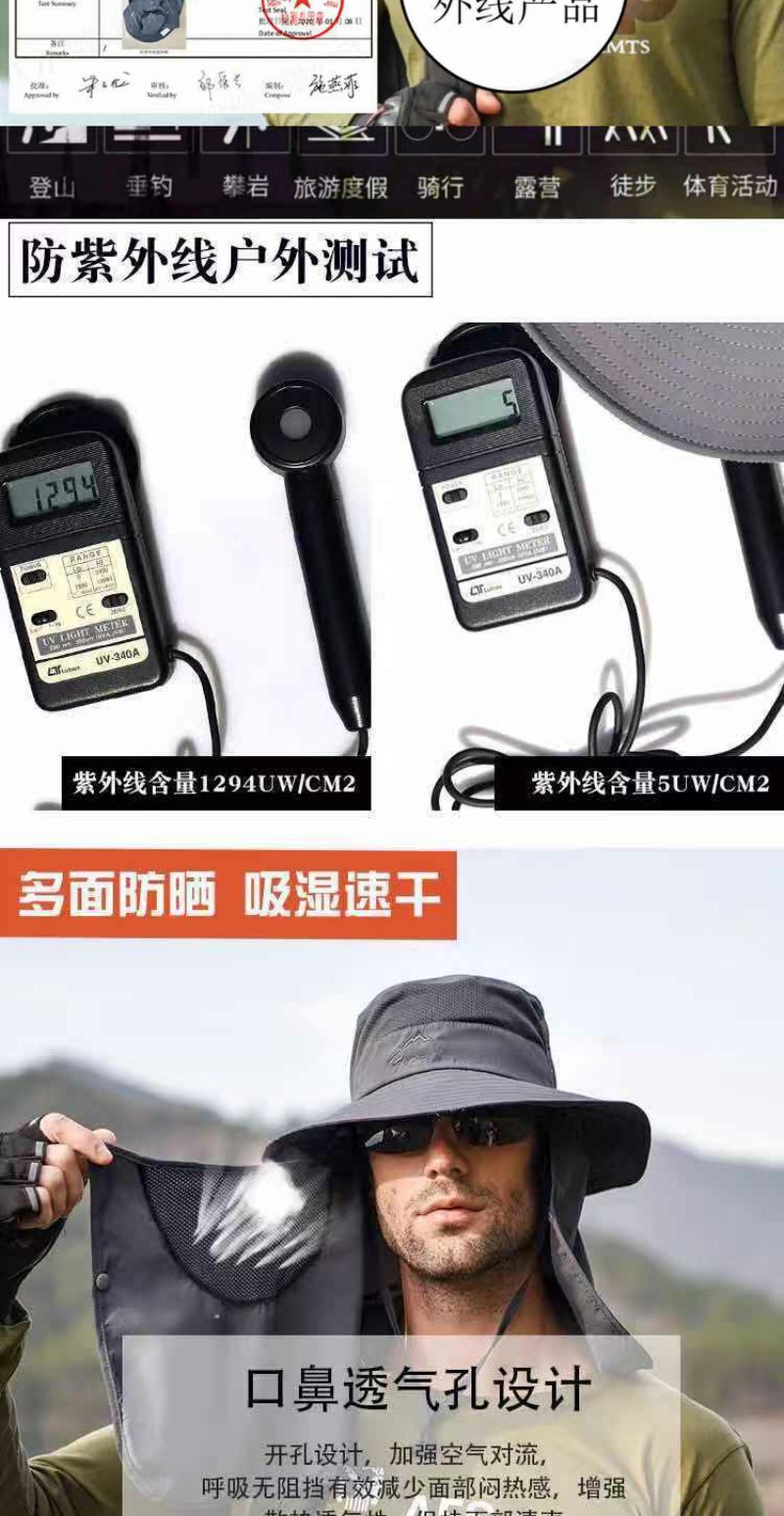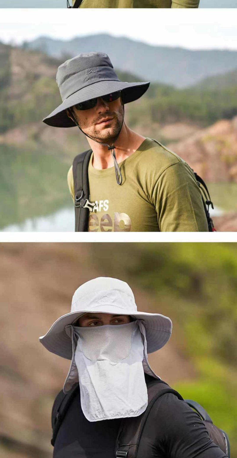 防晒帽子男士钓鱼帽夏季渔夫帽户外登山太阳帽遮脸防紫外线遮阳帽