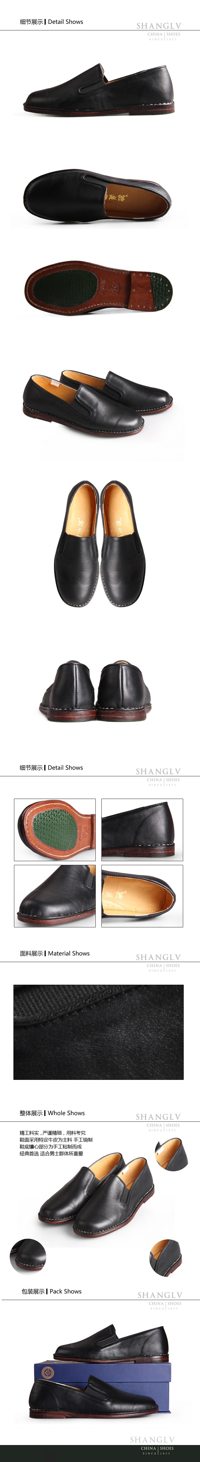 内联升男鞋手工单鞋牛皮镶芯巾舌边皮便鞋7118A