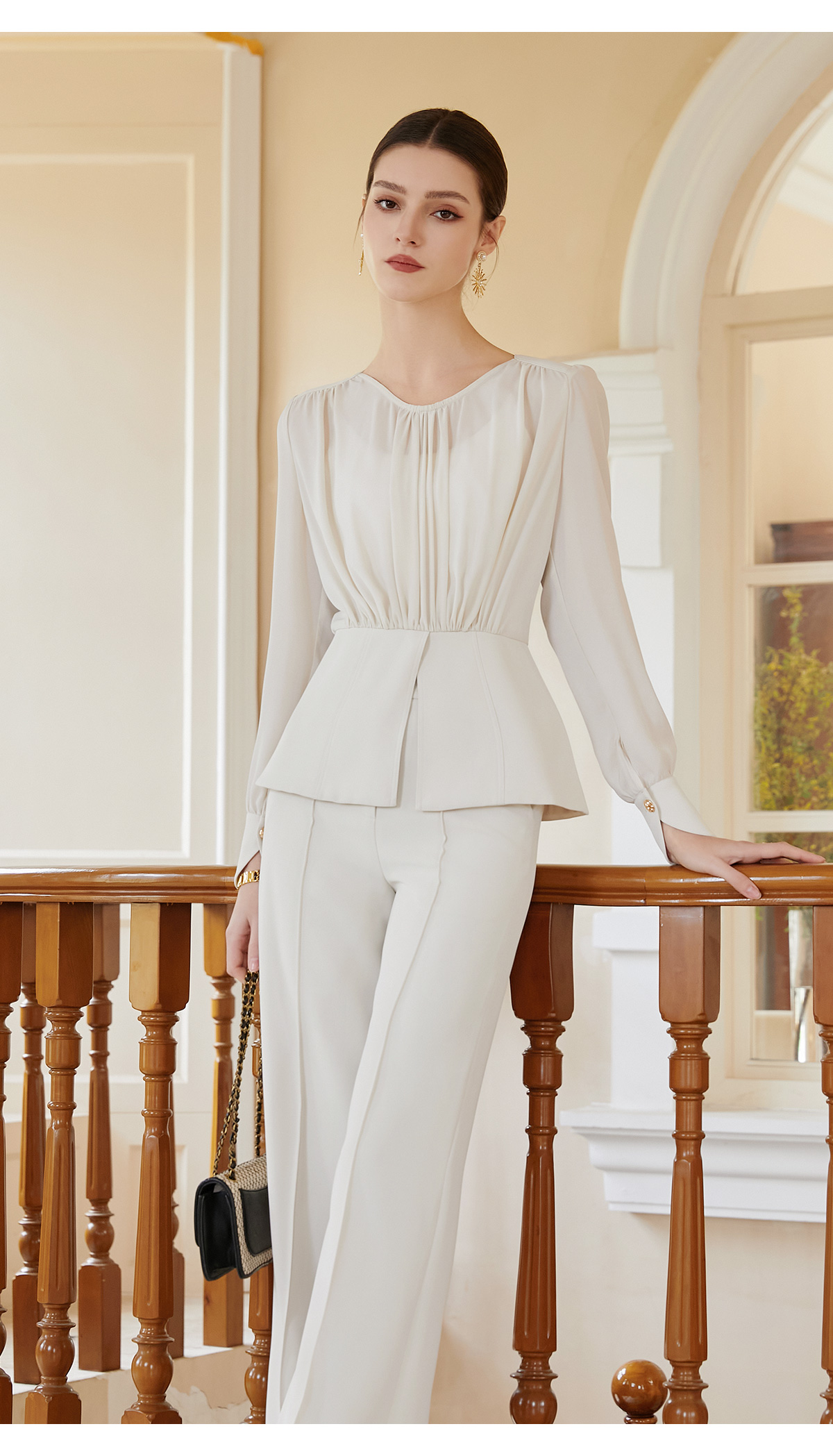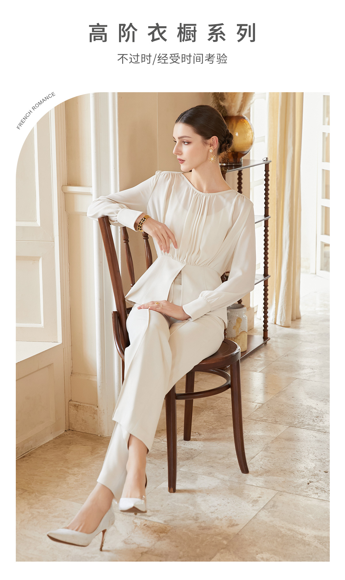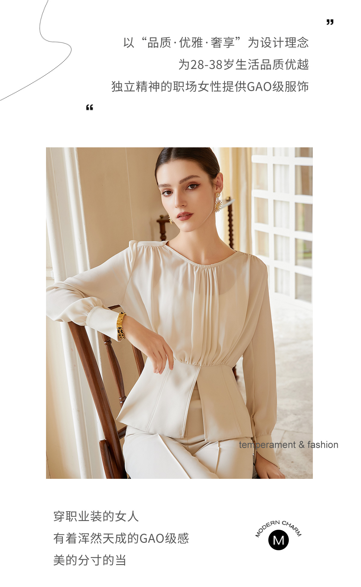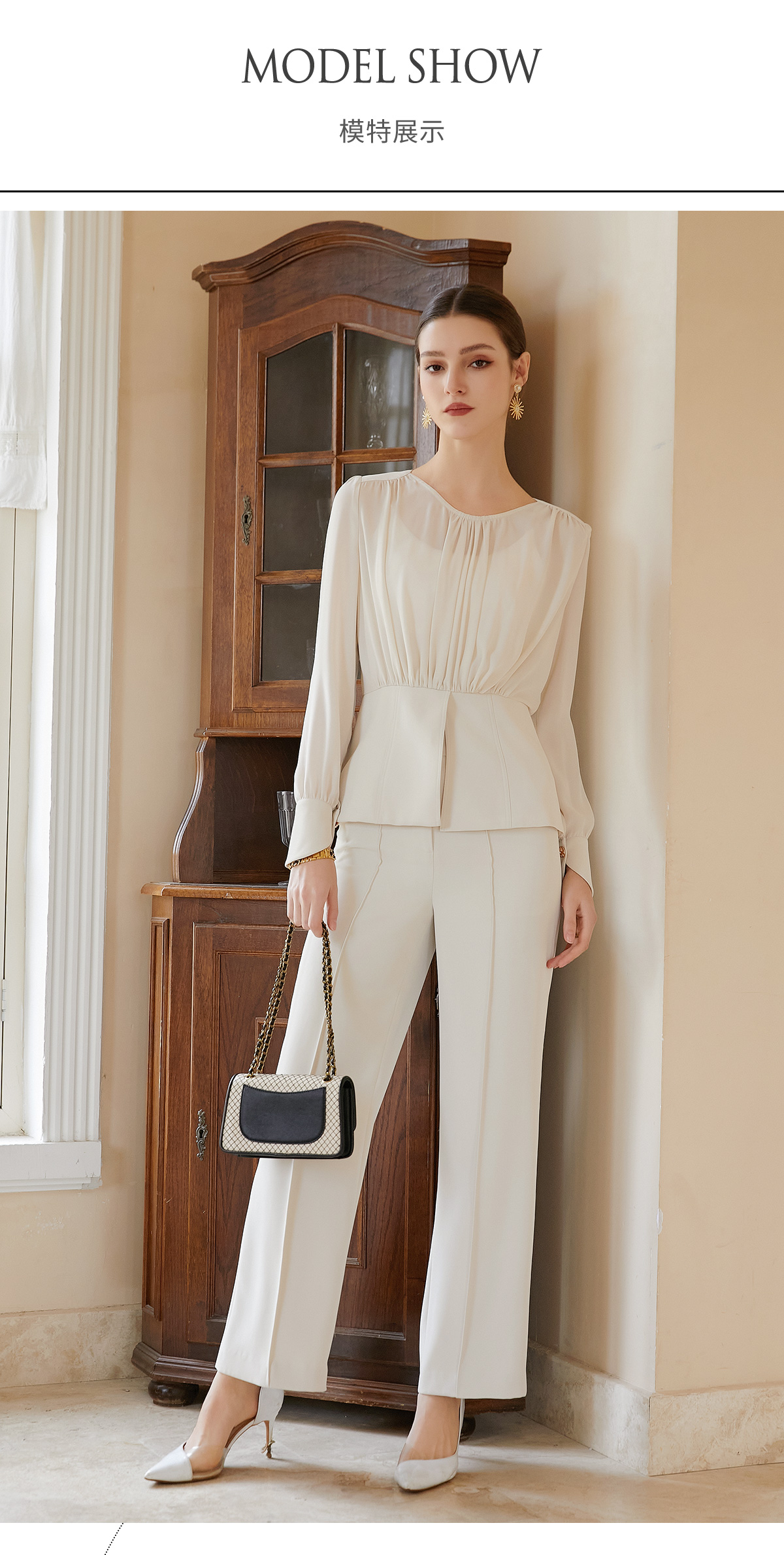 AD御姐范职场两件套衬衫女春夏新款米杏色微透视上衣阔腿西装裤子