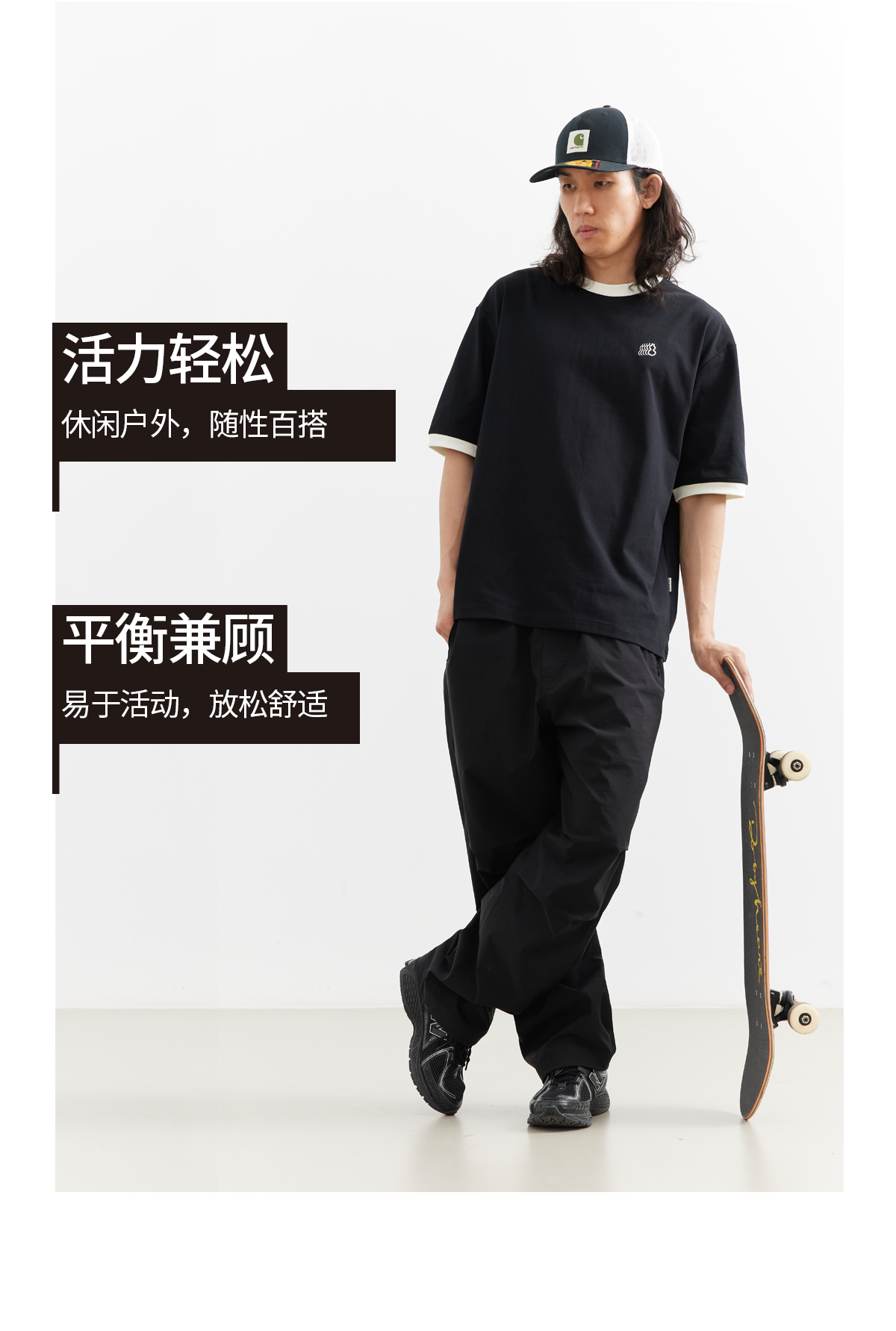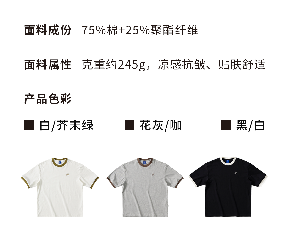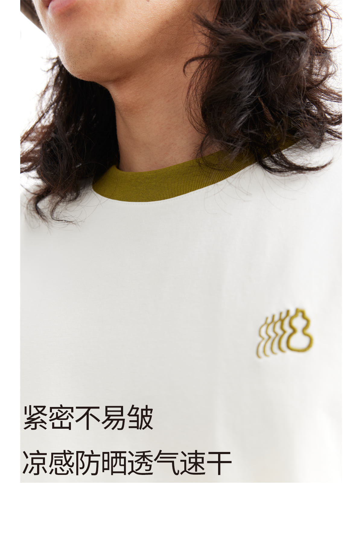 吃茶去chichaqu25凉感防晒速干撞色罗纹短袖T户外运动宽松百搭