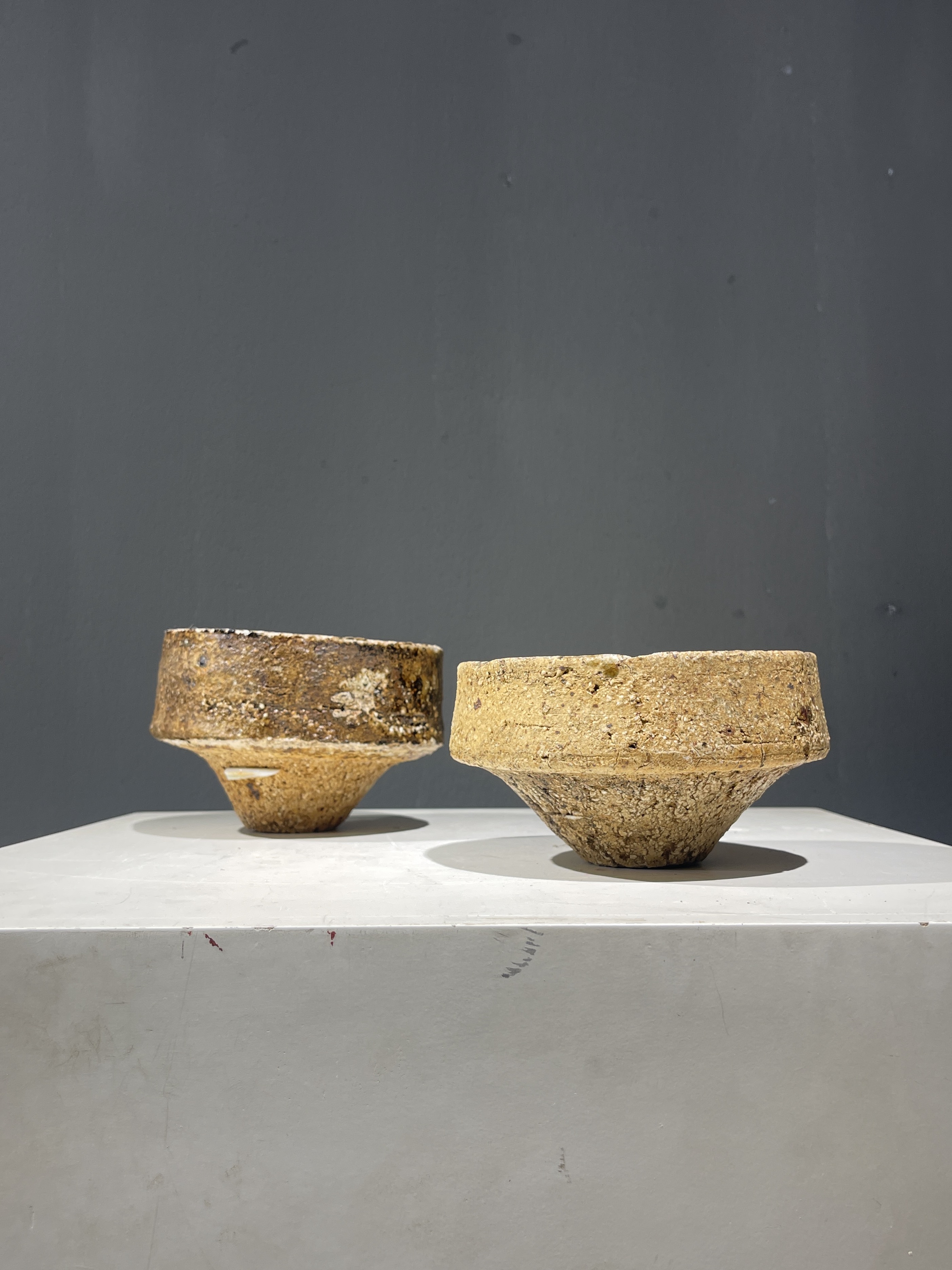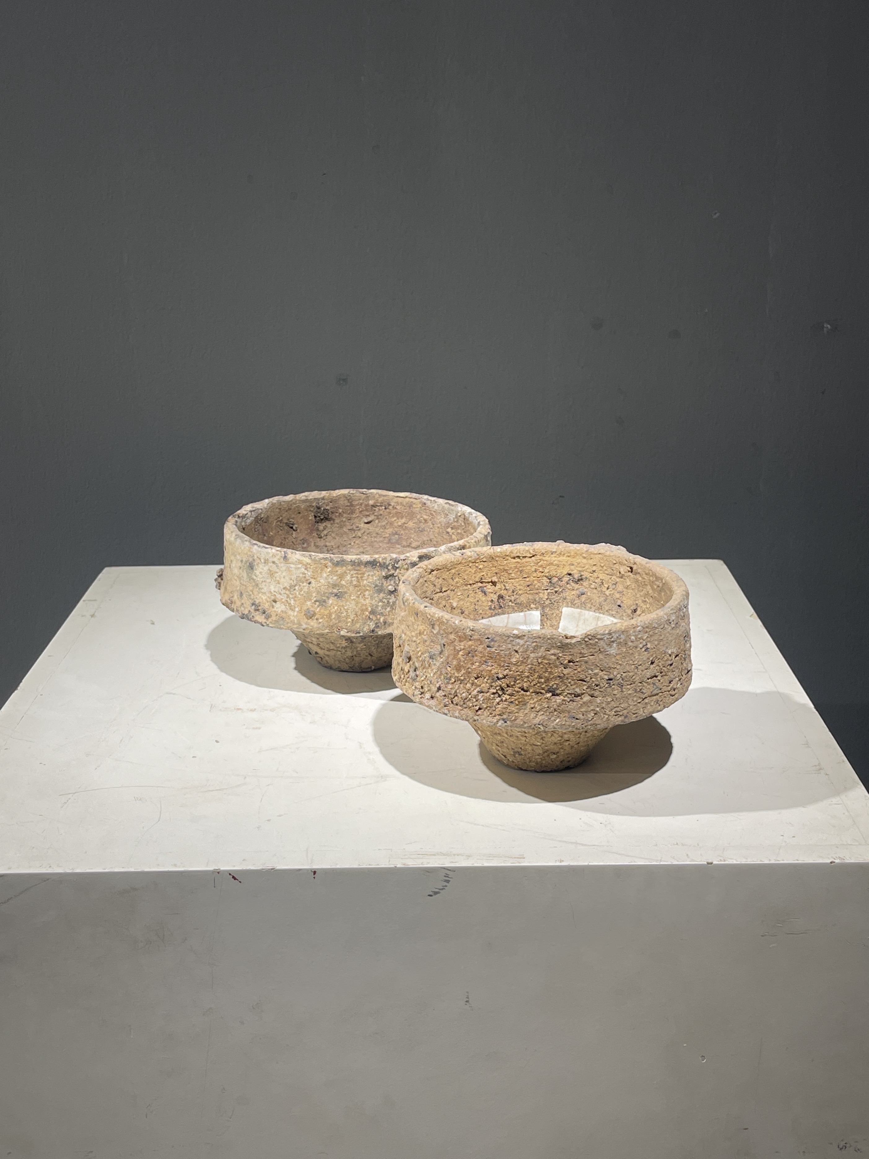 这些匣钵表面能许多孔洞,能附着微尘与土壤,如果放置在庭院,时间一久就成为最好的盆景容器,如果用来插花,甚至作为餐桌上的食器,都给予我们许多的想像力。