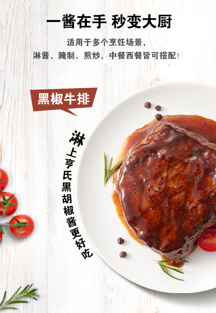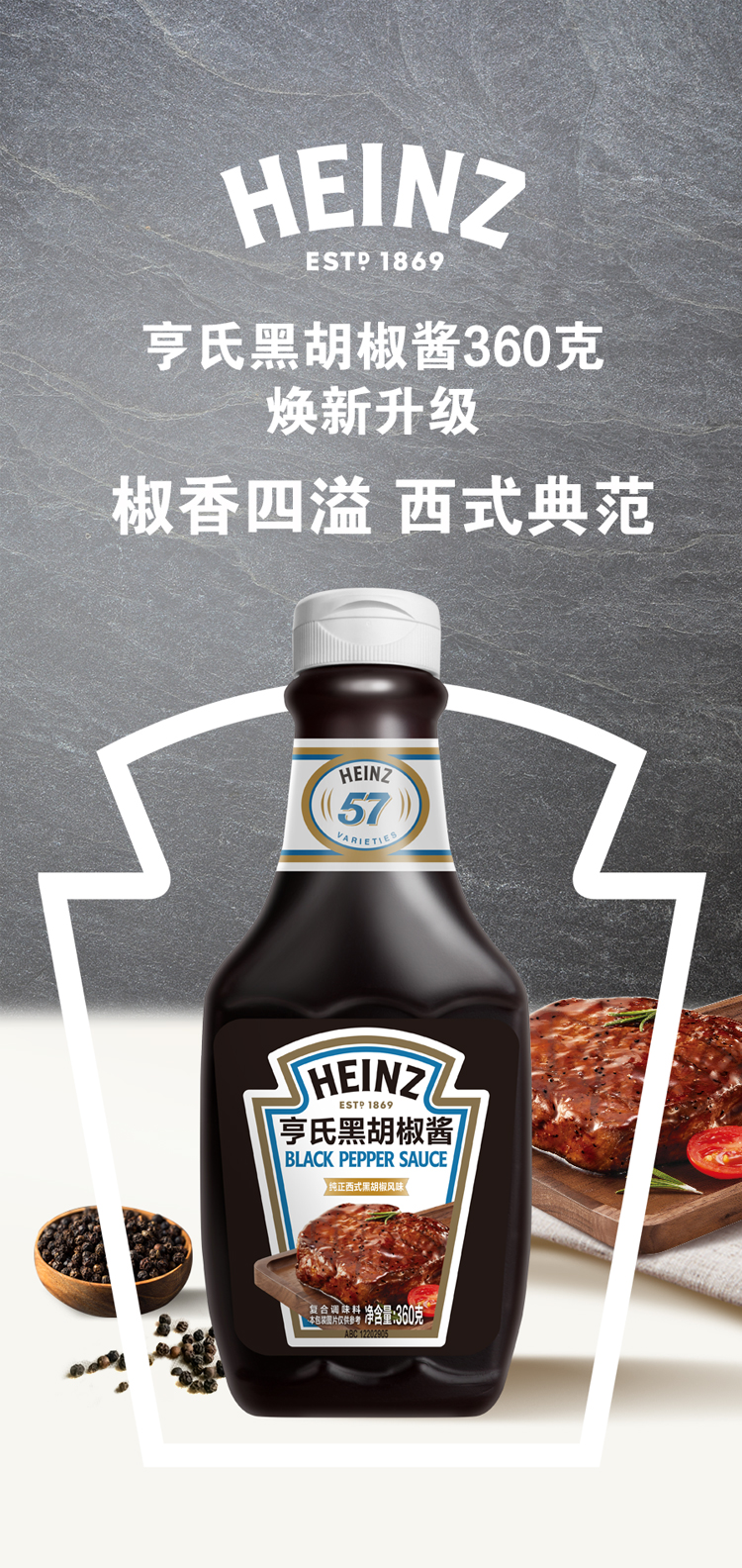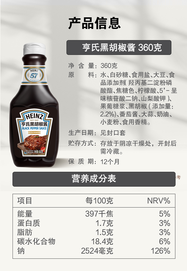 亨氏黑胡椒酱360g牛排烧烤酱料黑椒汁拌面酱低脂脂肪家用调味料