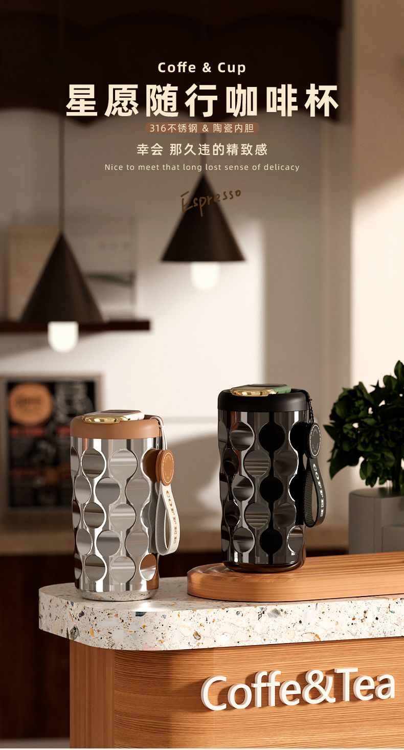 陶瓷咖啡杯高颜值智能保温杯不锈钢便携高档水杯