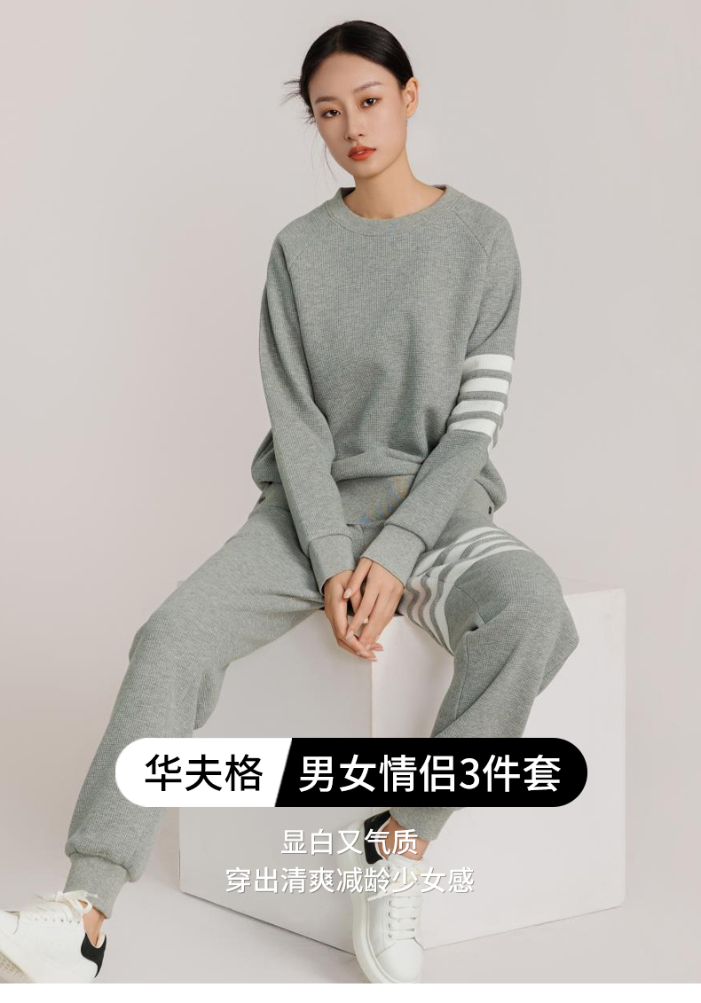 weyo男女同款华夫格四条杠轻奢套头卫衣外套休闲运动裤881097+881098+991099