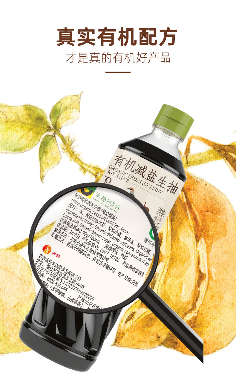 【炒菜减盐组合】禾然淡盐有机酱油500ml+米香料酒500ml组合