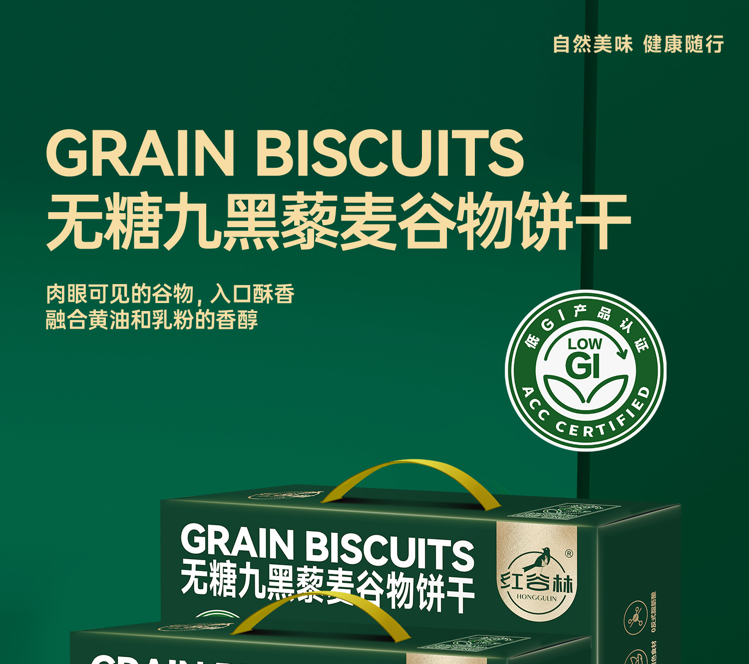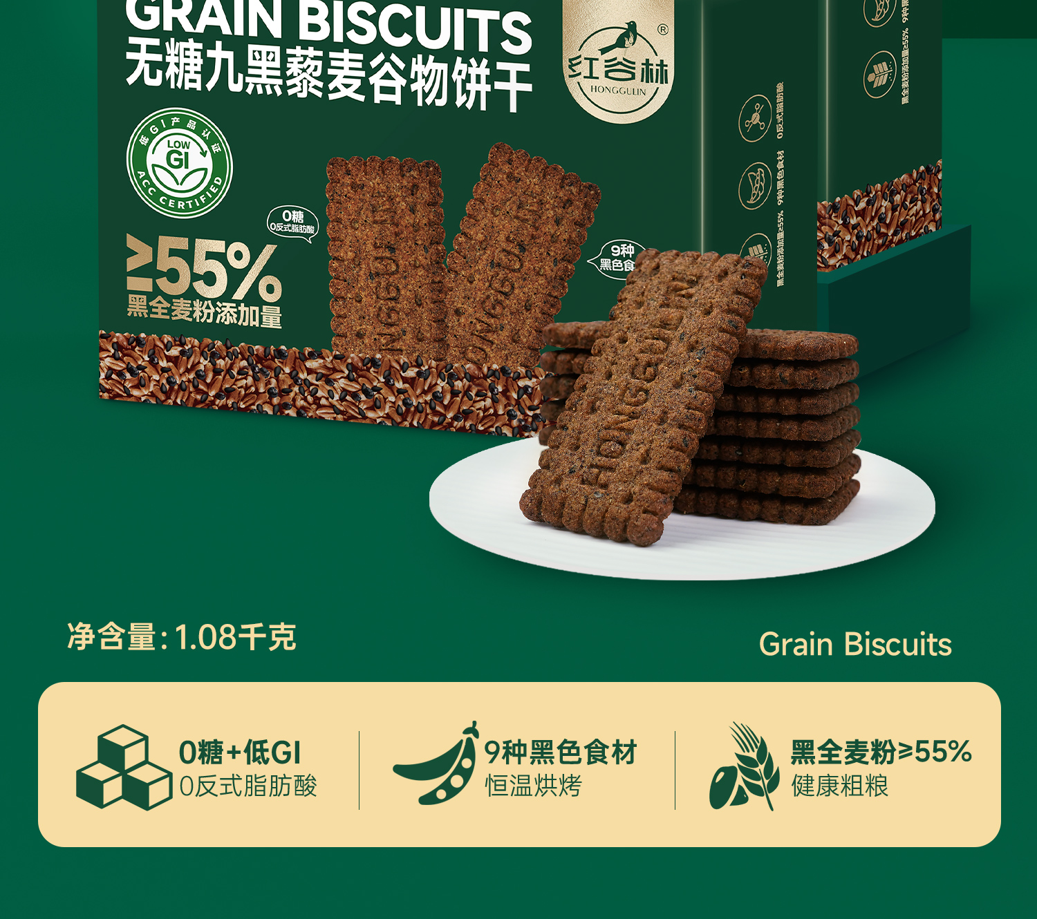 红谷林低GI无糖9黑藜麦谷物饼干礼盒1088g中秋礼盒粗粮代餐健康送礼