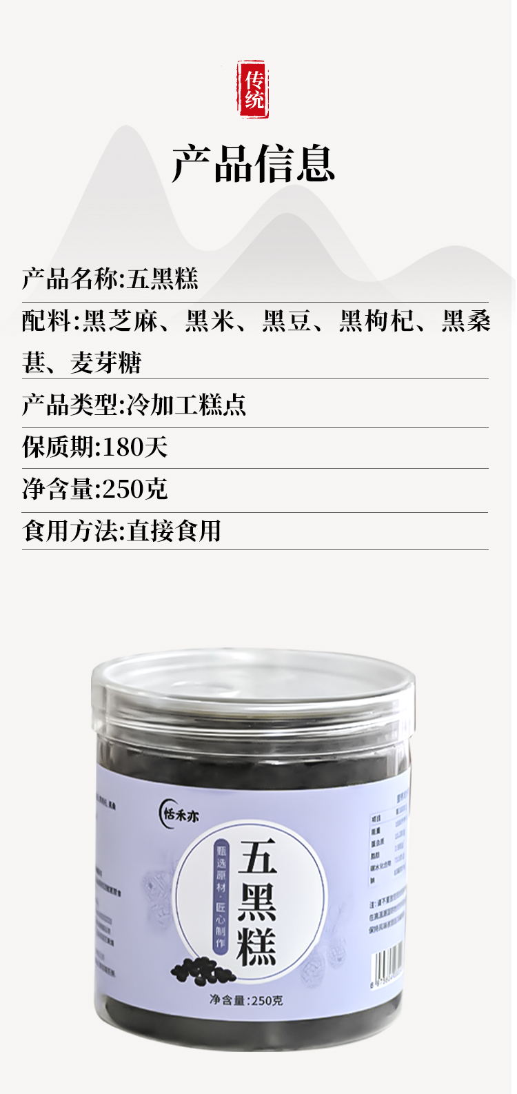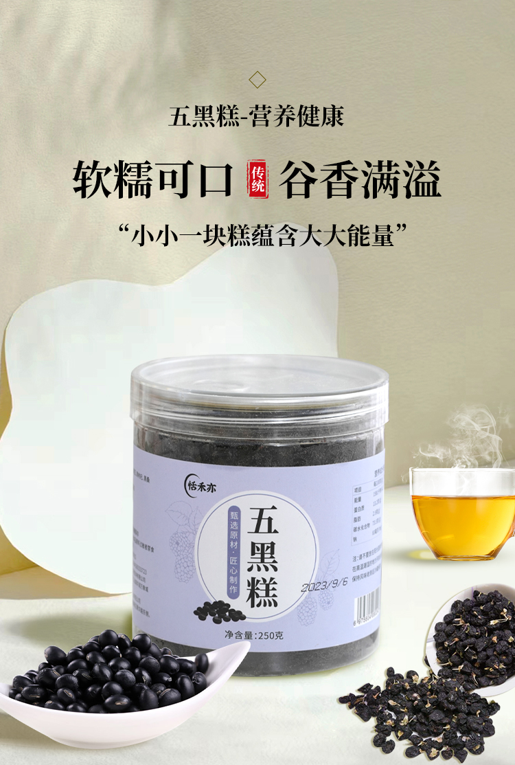 【买2赠1、买3赠2】五黑糕 养生零食黑芝麻糕 250g/罐