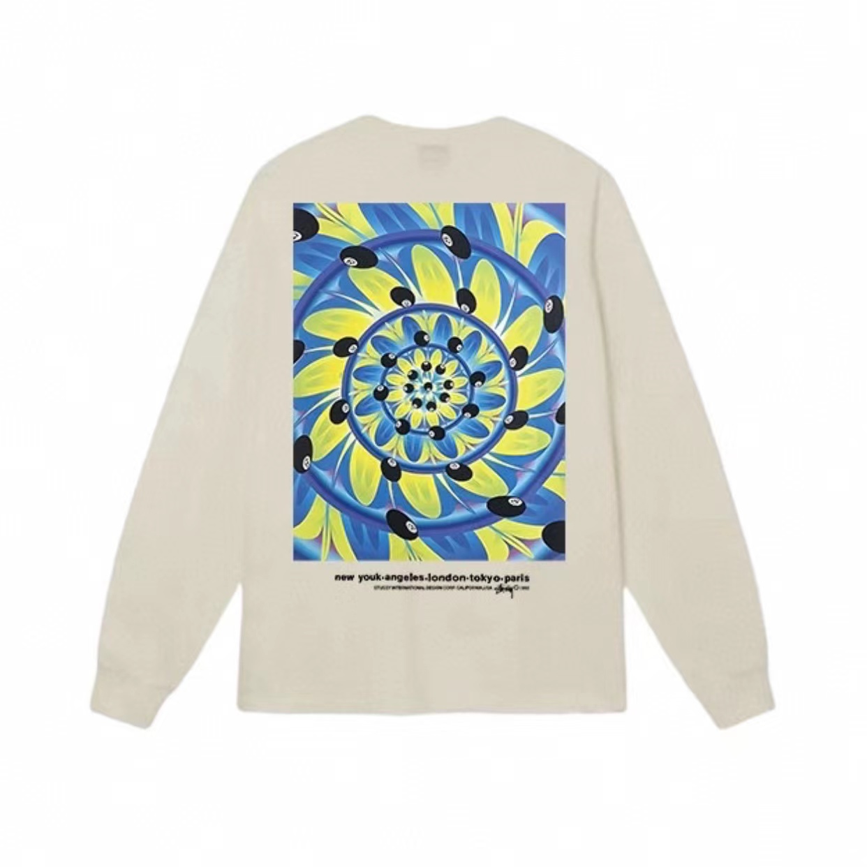 礼花筒印花情侣圆领长袖T恤 定制纯棉圆筒布面料 单件克重高达 260g 手感柔软舒适