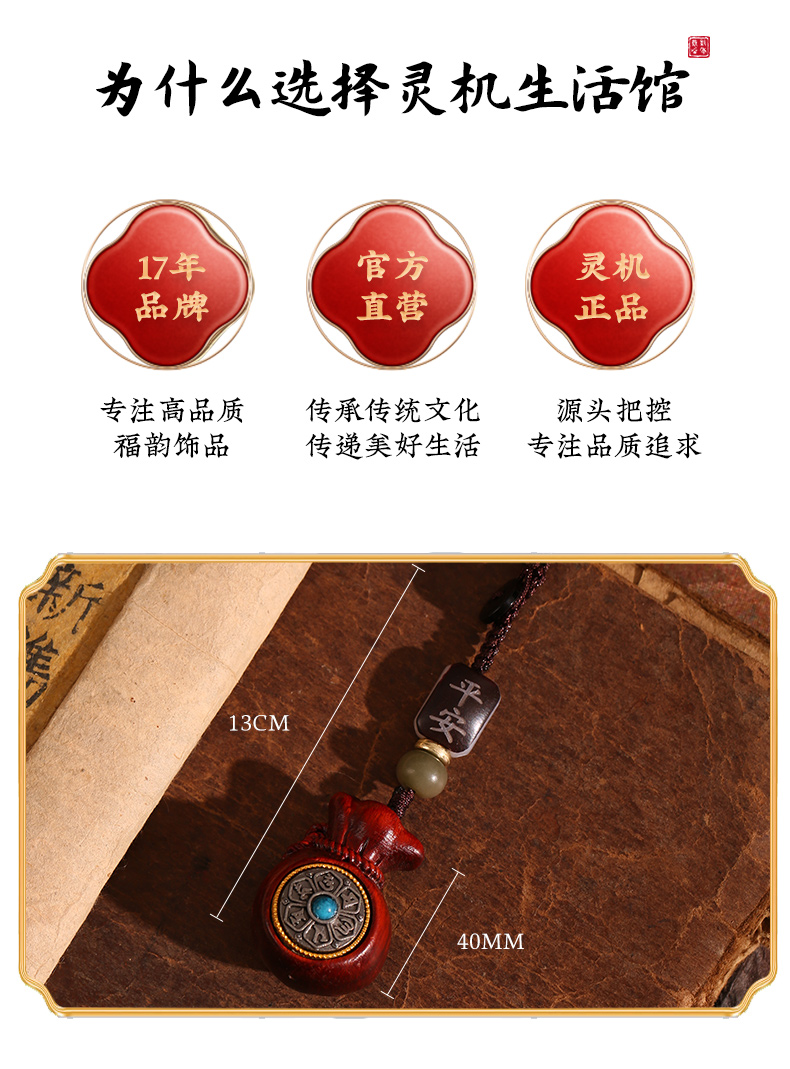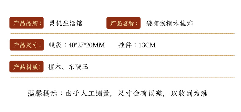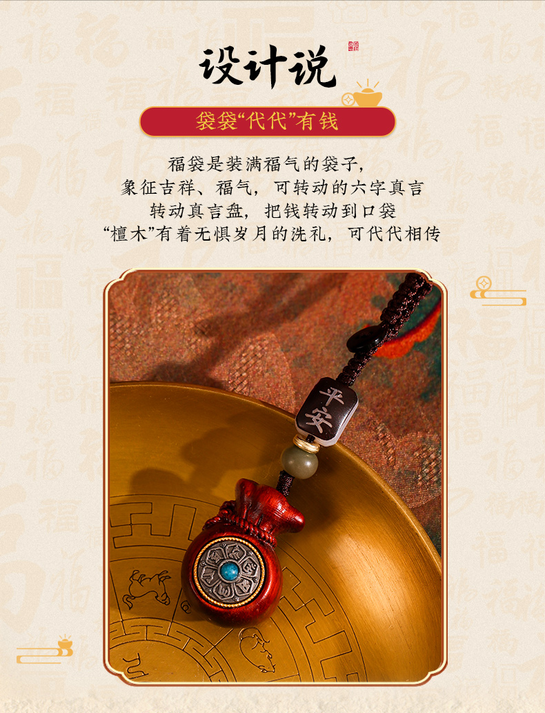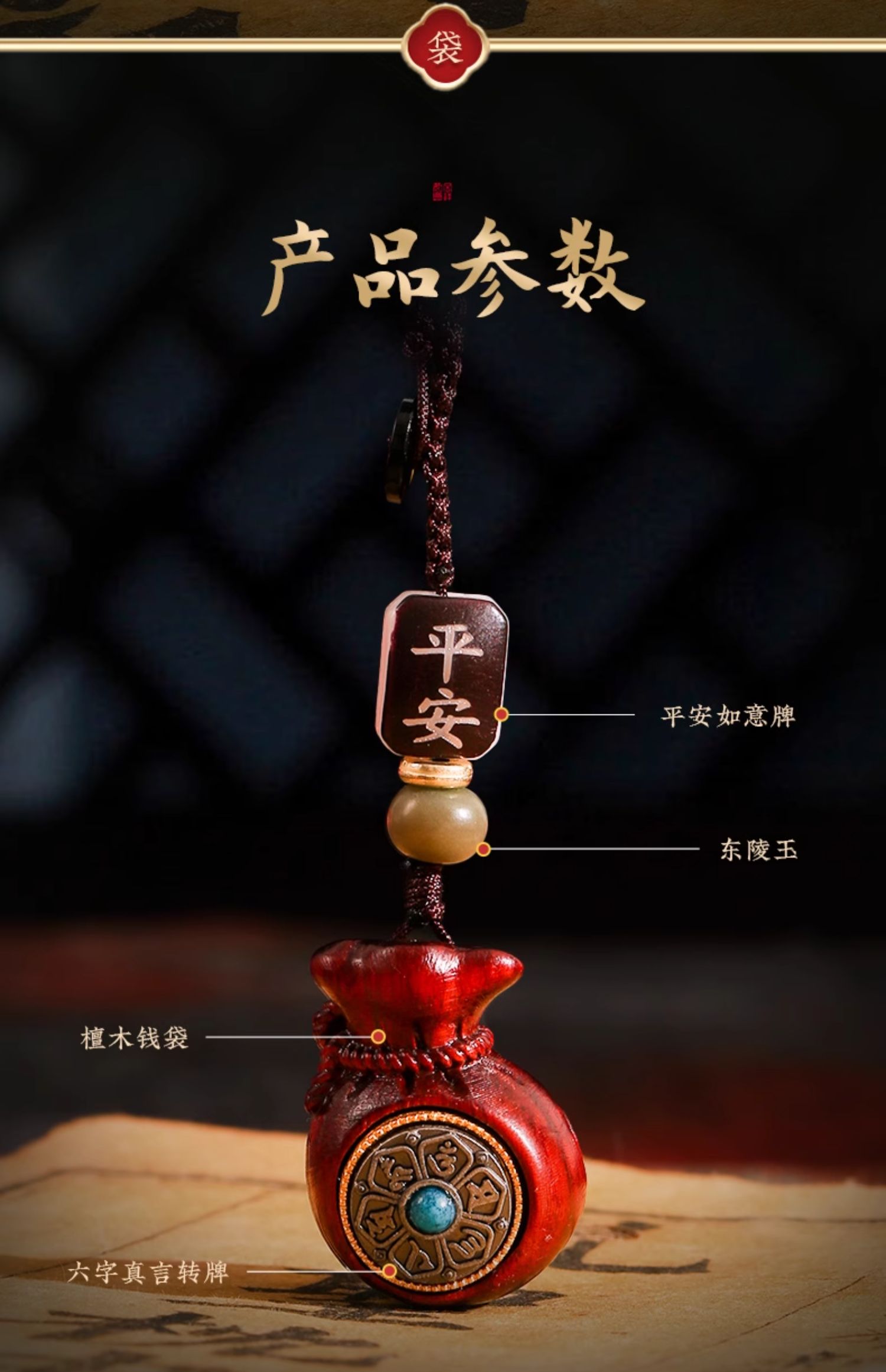 【祈愿吉品】袋有钱檀木挂饰钥匙扣