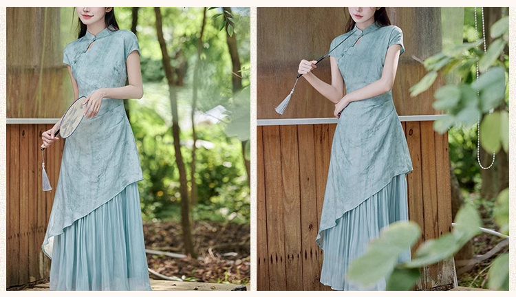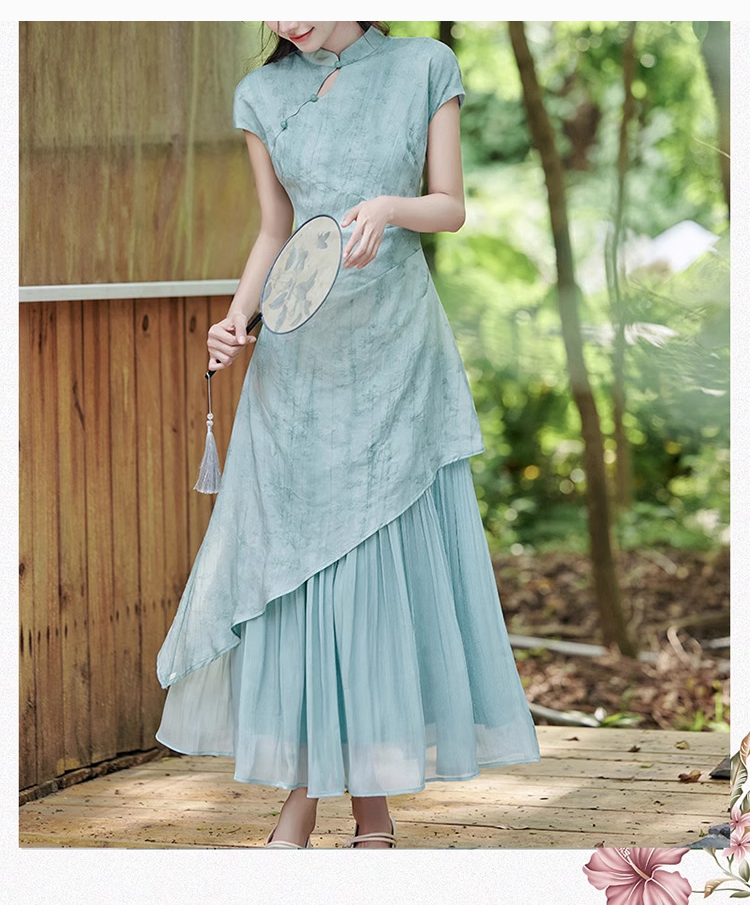 裁缝学苑AS308茶服裙子新中式假两件连衣裙纸样女装禅意旗袍样板