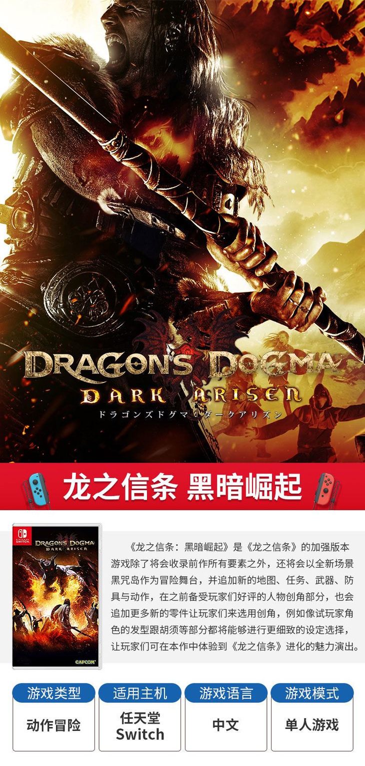 【畅玩卡可租】二手Switch游戏 龙之信条 黑暗再临 中文版