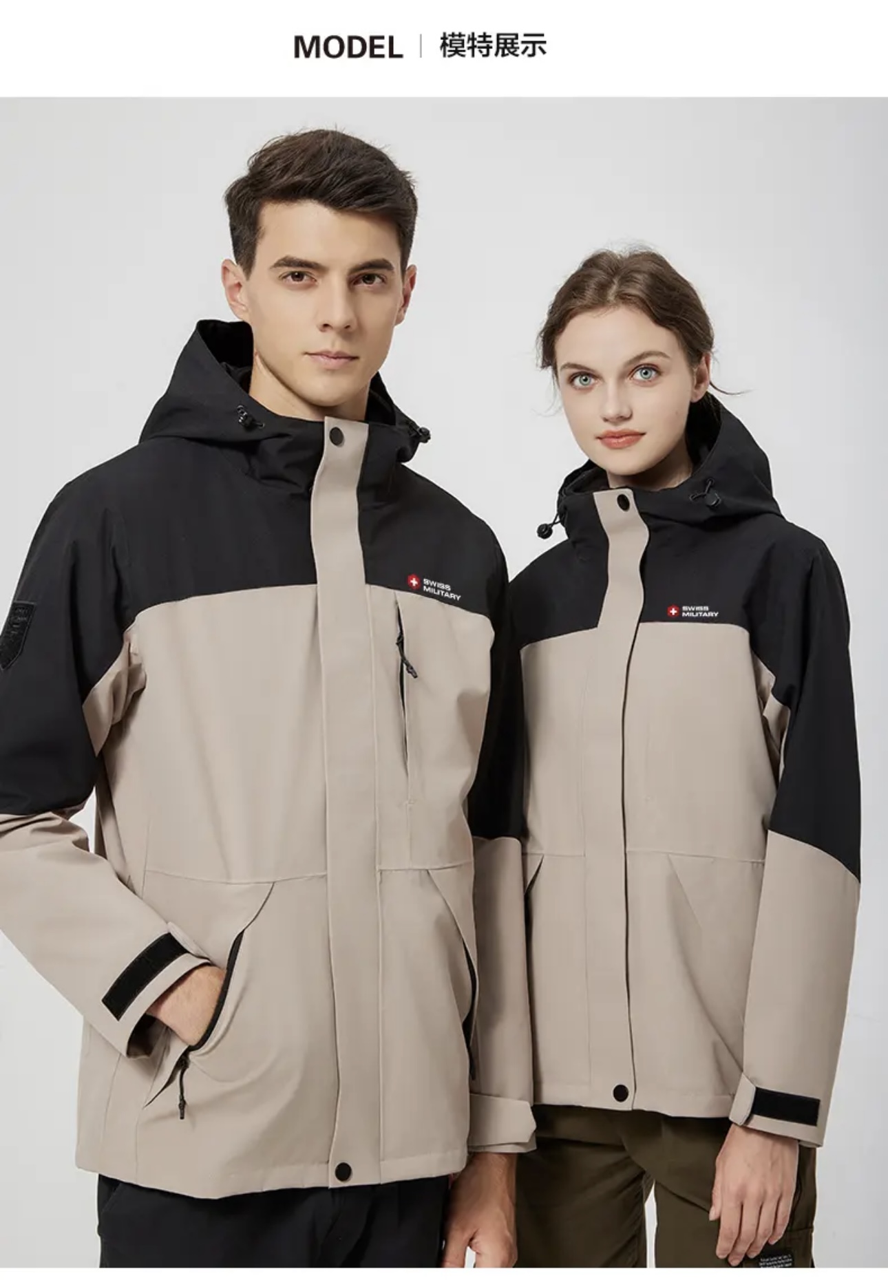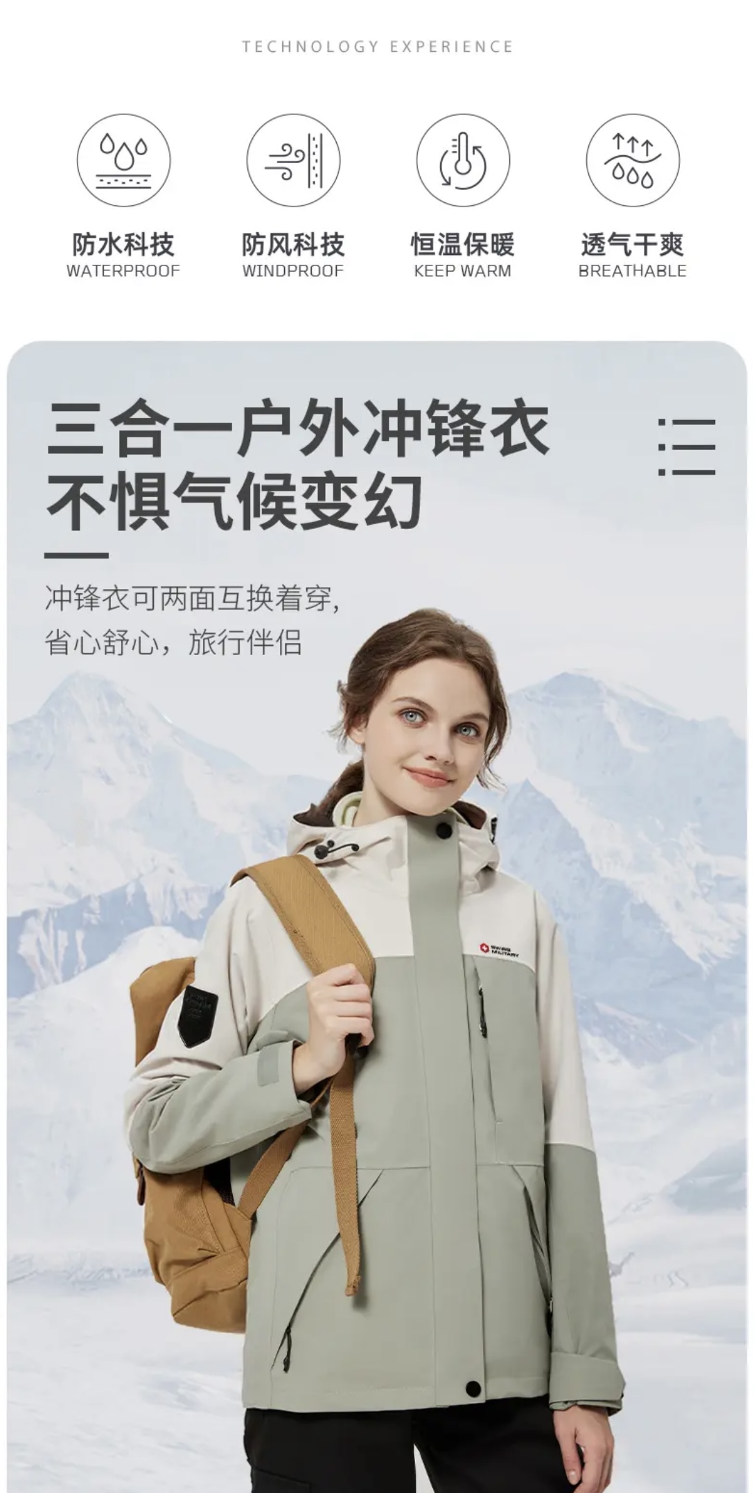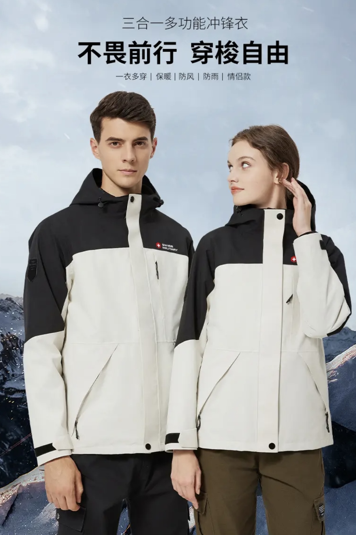 拍一发三 专柜有售【瑞士百年户外专业品牌】SWISS MILITARY瑞士军工/二级冲锋衣 全热封压胶冲锋衣/ 送背包 +银狐绒内胆